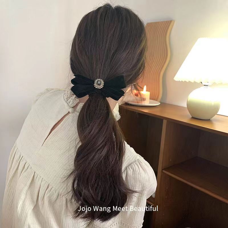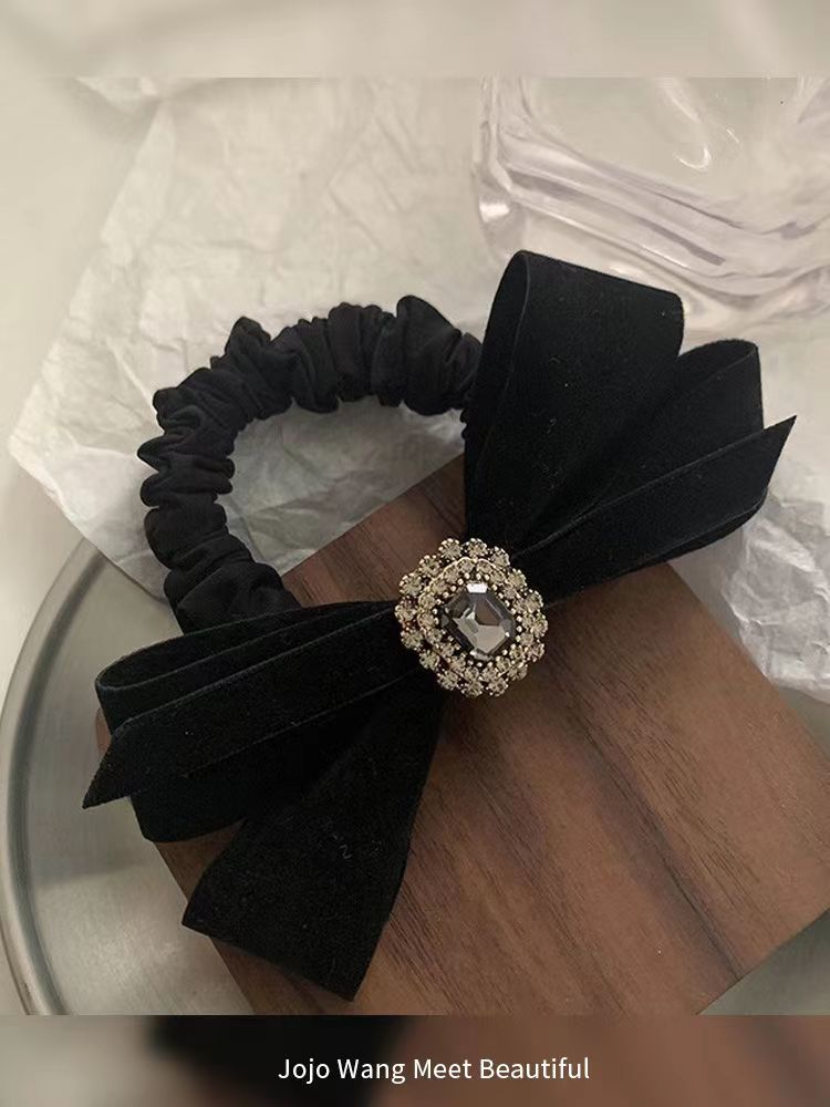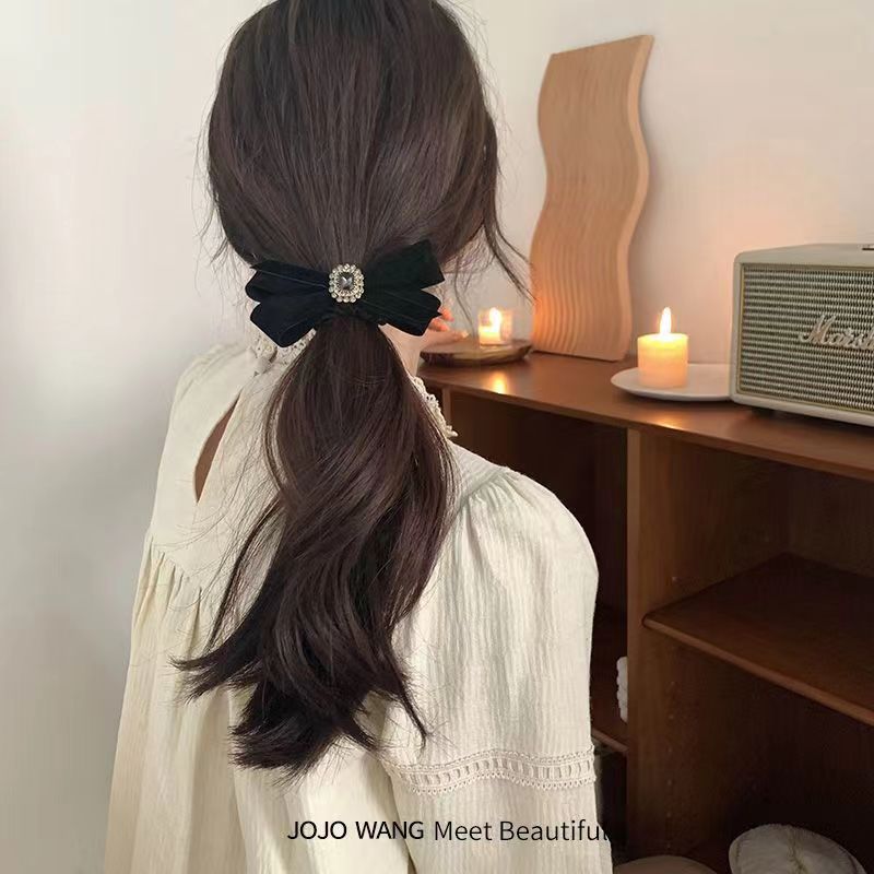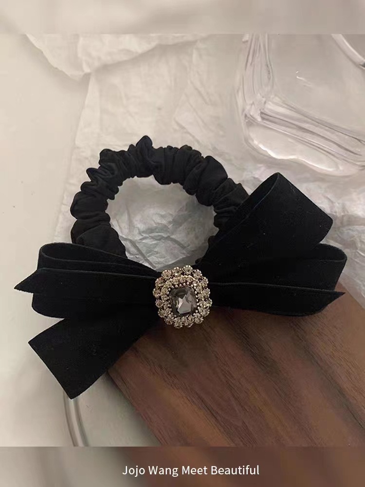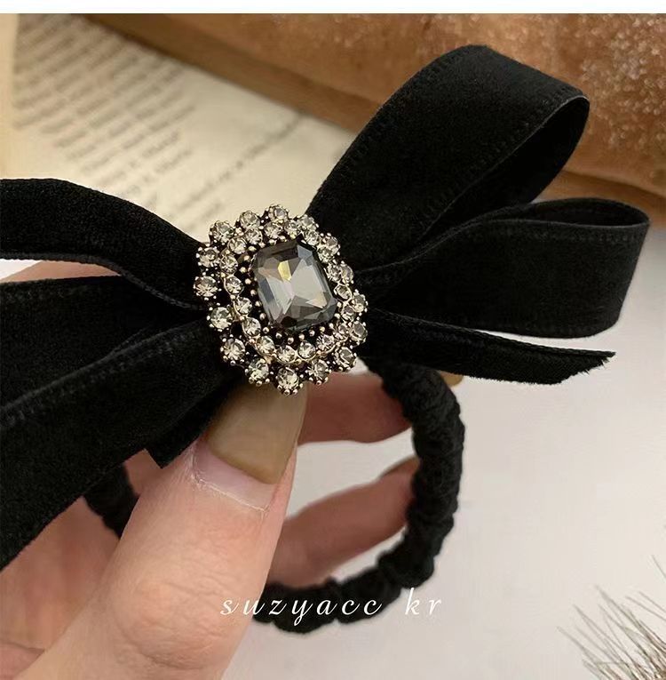 Pita rambut hitam gaya Korea, aksesori rambut hiasan kepala retro fashion berlian imitasi tali rambut usus besar Prancis tali kepala gadis