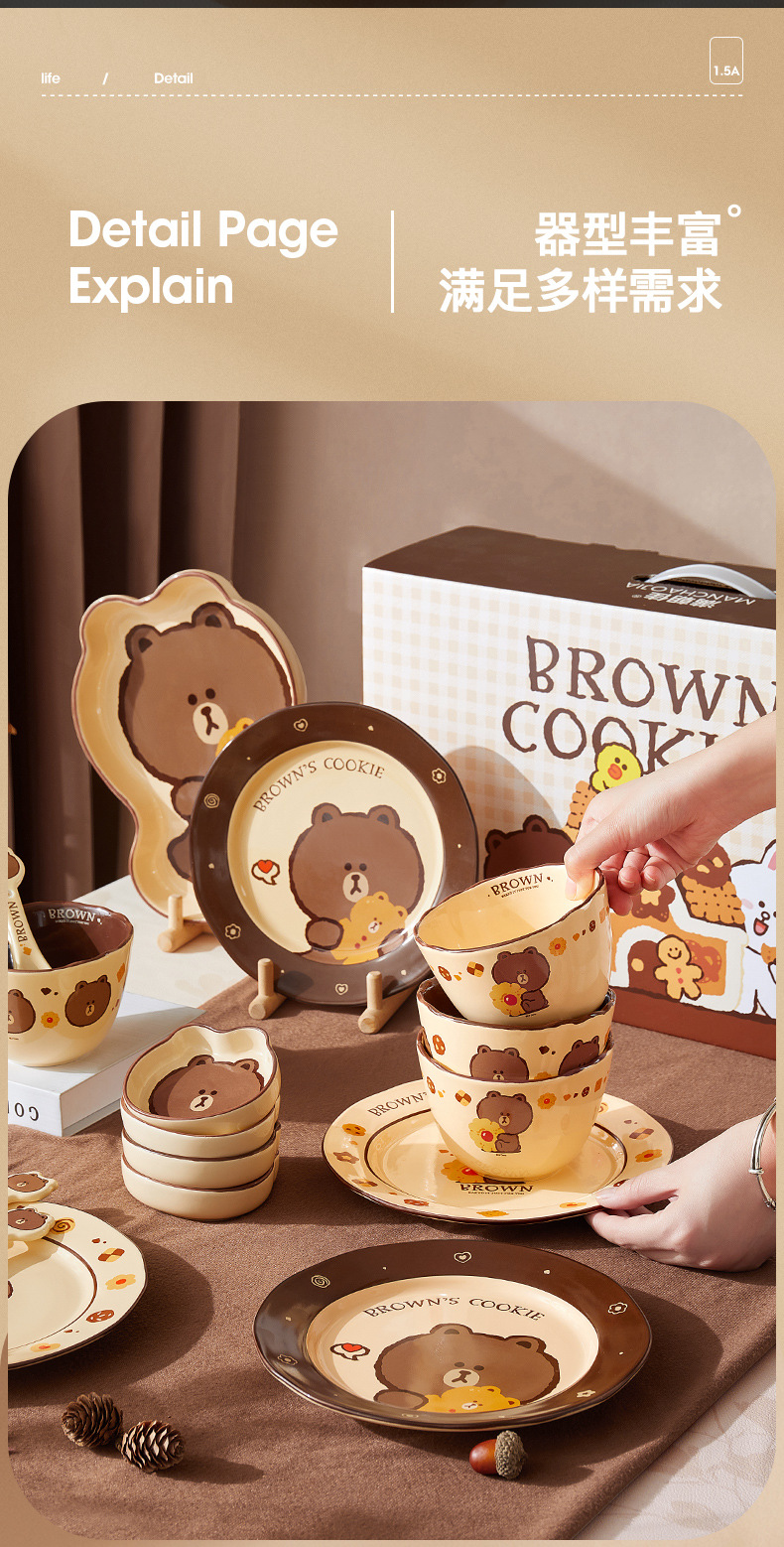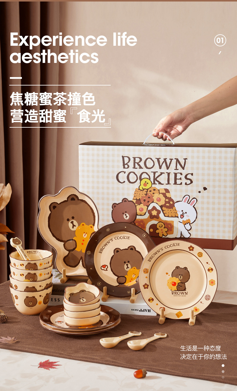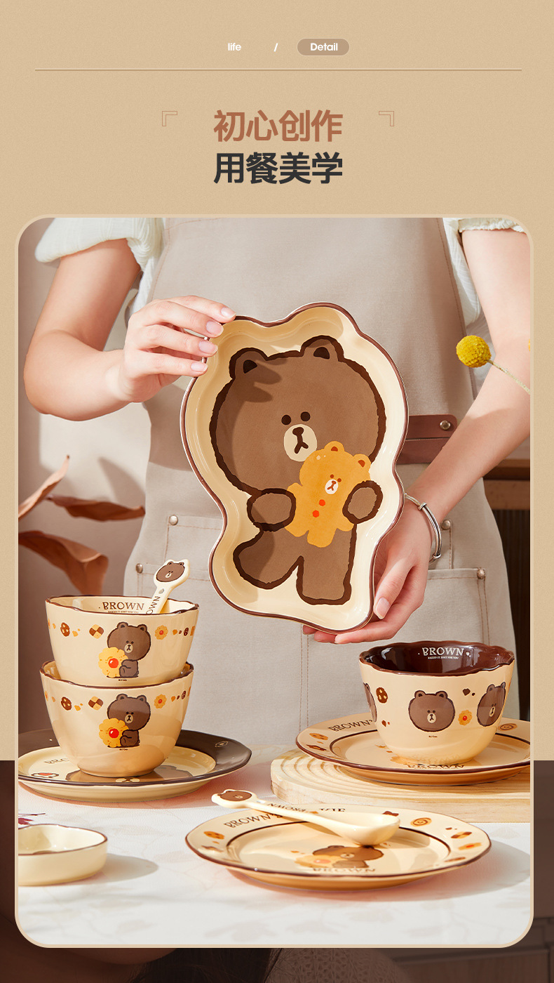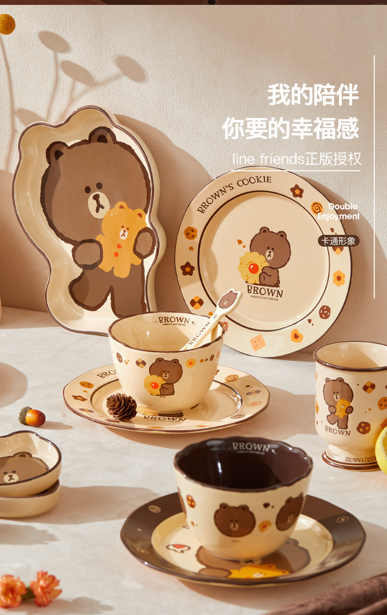 Buang Beruang Set Piring Mangkuk Keramik Rumah Tangga Cangkir Mangkuk Mangkuk Mangkuk Mangkuk Mangkuk Mangkuk Rasa Premium Peralatan Makan