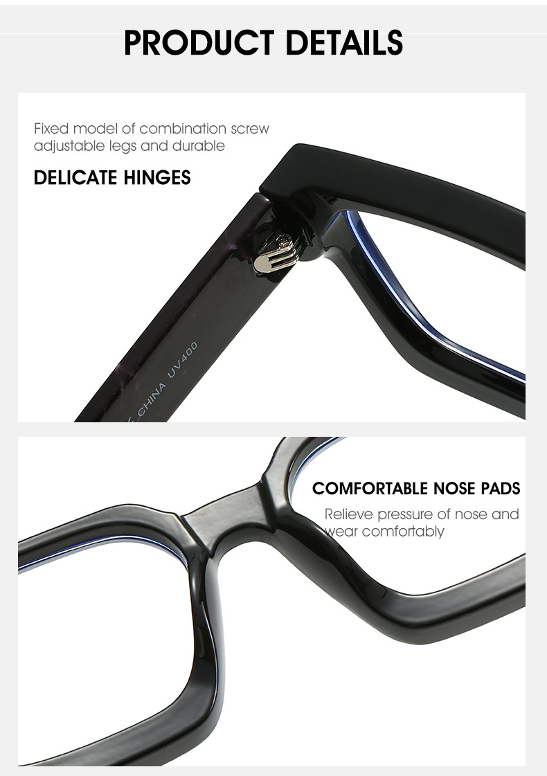 Kacamata Anti cahaya biru pria dan wanita, lensa mata kotak trendi bingkai miopia sederhana serbaguna 22902
