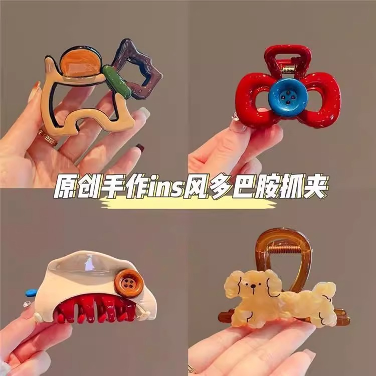 Dua Sisi Desain Asli Kancing Kartun Ukuran Sedang Jepit Jepit Puppy Berongga Warna Kontras Wanita Aksesori Rambut Wanita Mudah Dipadu Padan Lucu