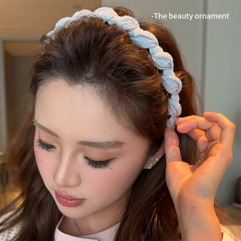 韩系布艺麻花波浪发箍女款洗脸带齿防滑压发卡蓬松高颅顶头箍发饰