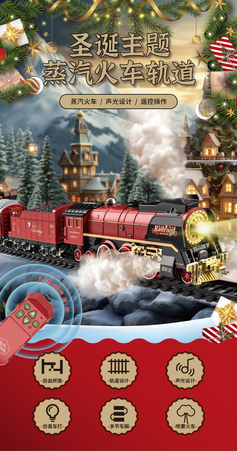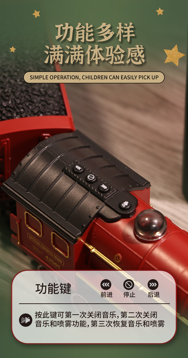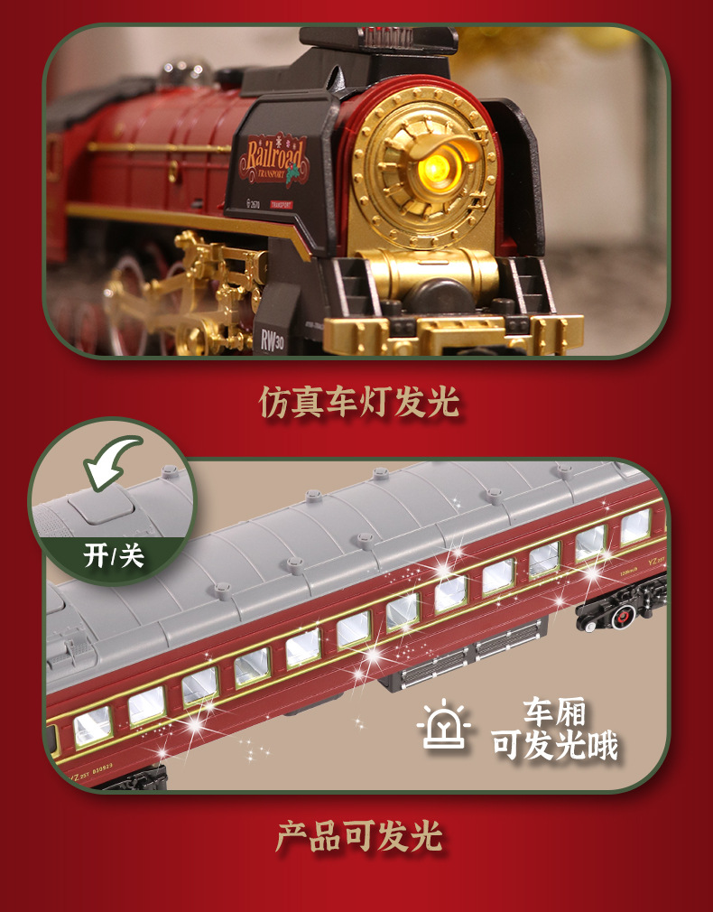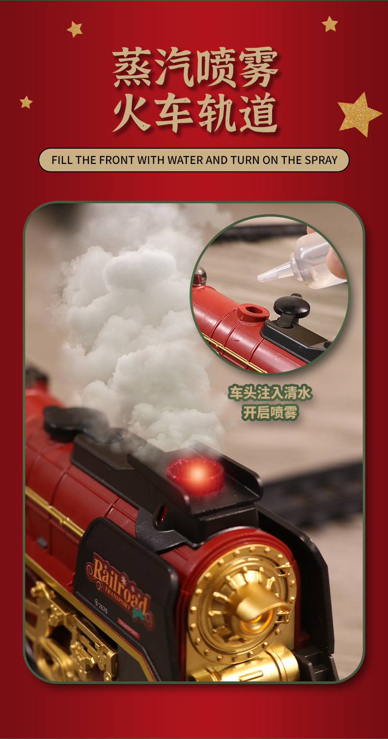 跨境复古小火车玩具古典蒸汽轨道遥控模型灯光加水冒烟圣诞礼物