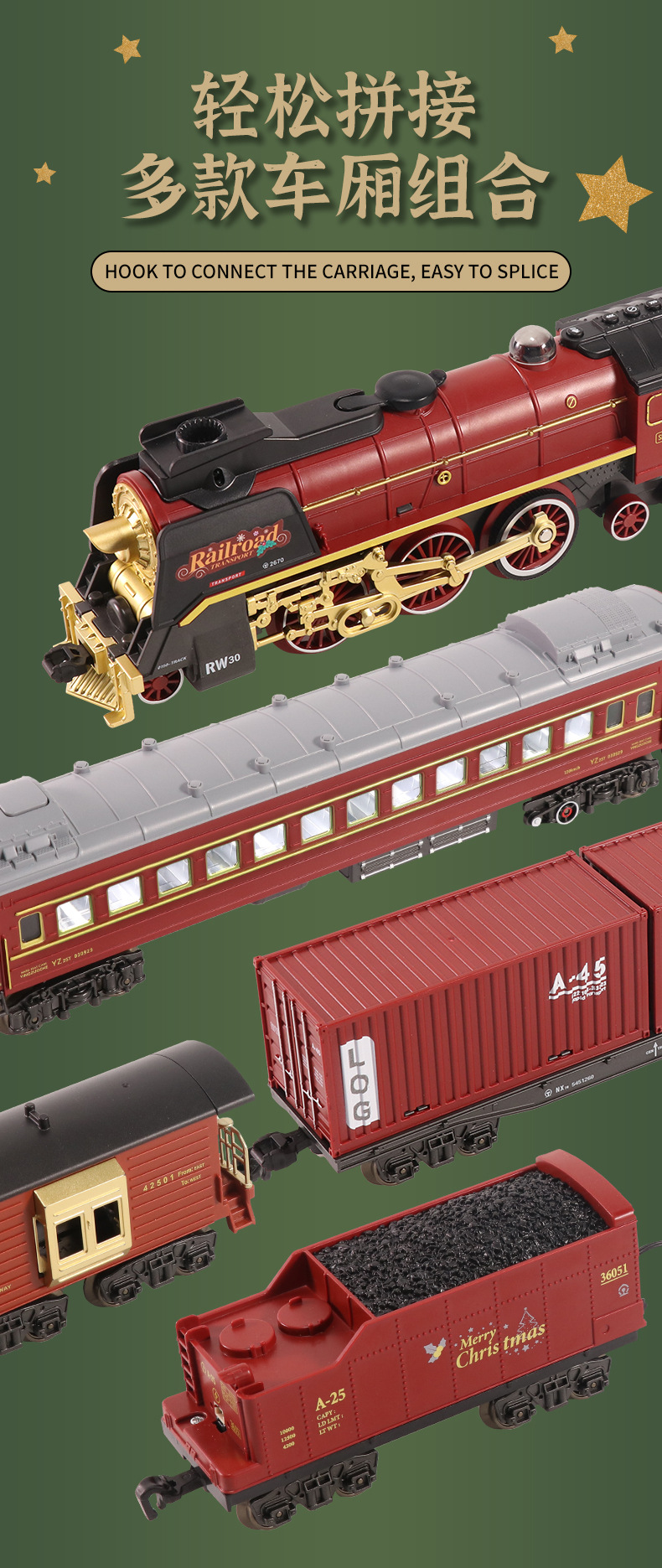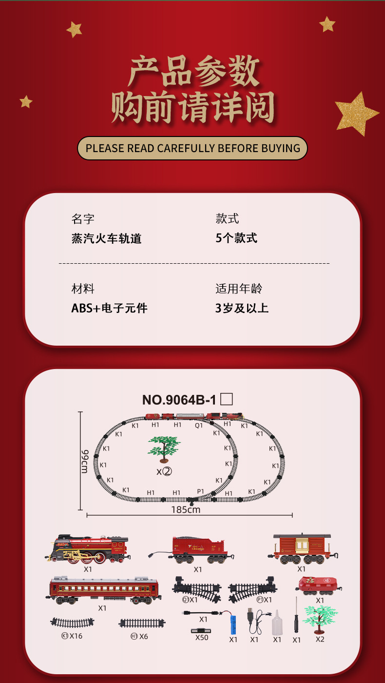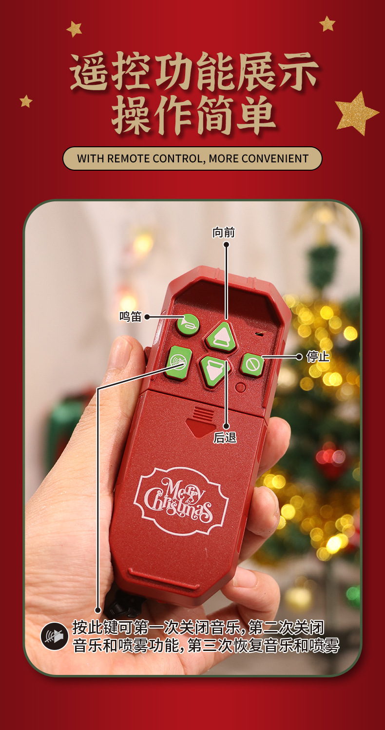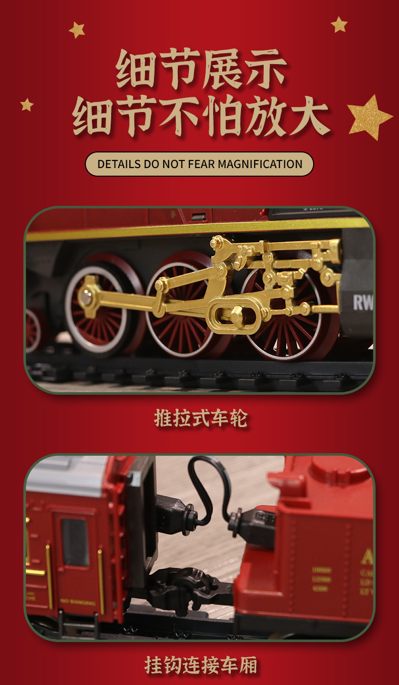 跨境复古小火车玩具古典蒸汽轨道遥控模型灯光加水冒烟圣诞礼物