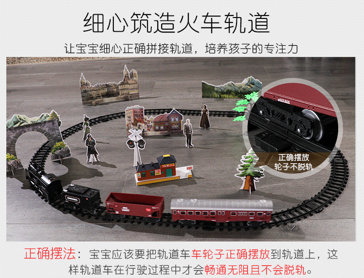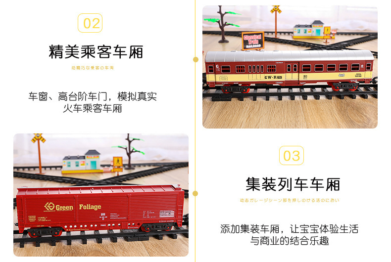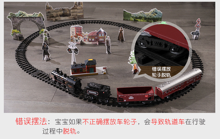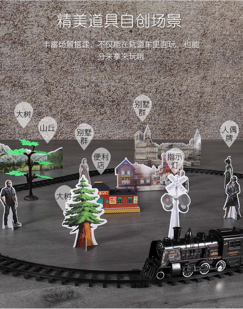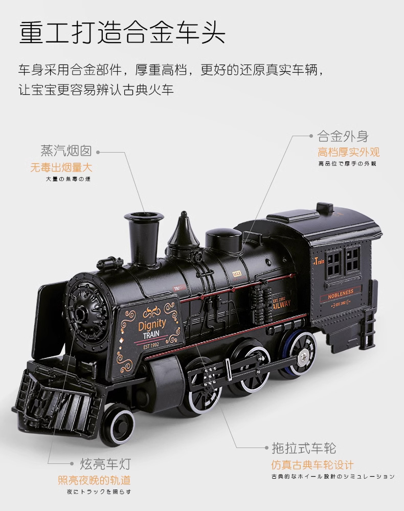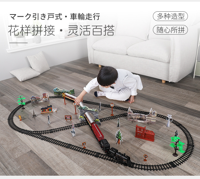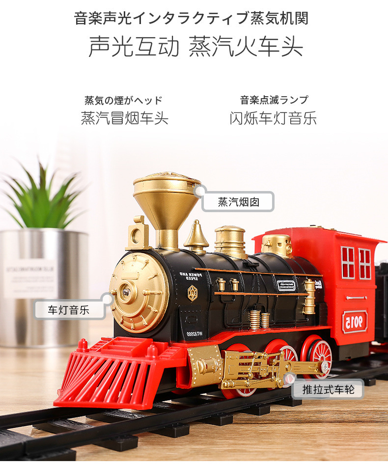 圣诞玩具车跨境热卖儿童电动轨道古典小火车冒烟仿真灯光音乐模型