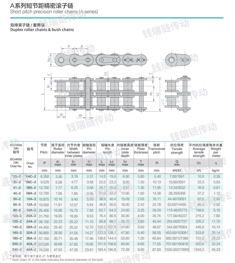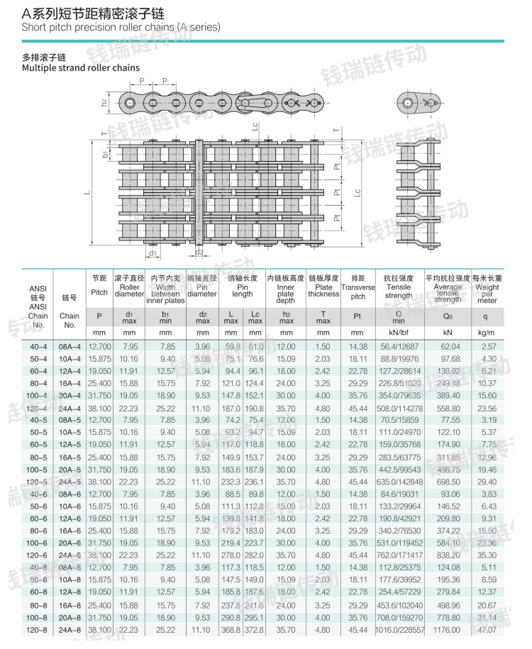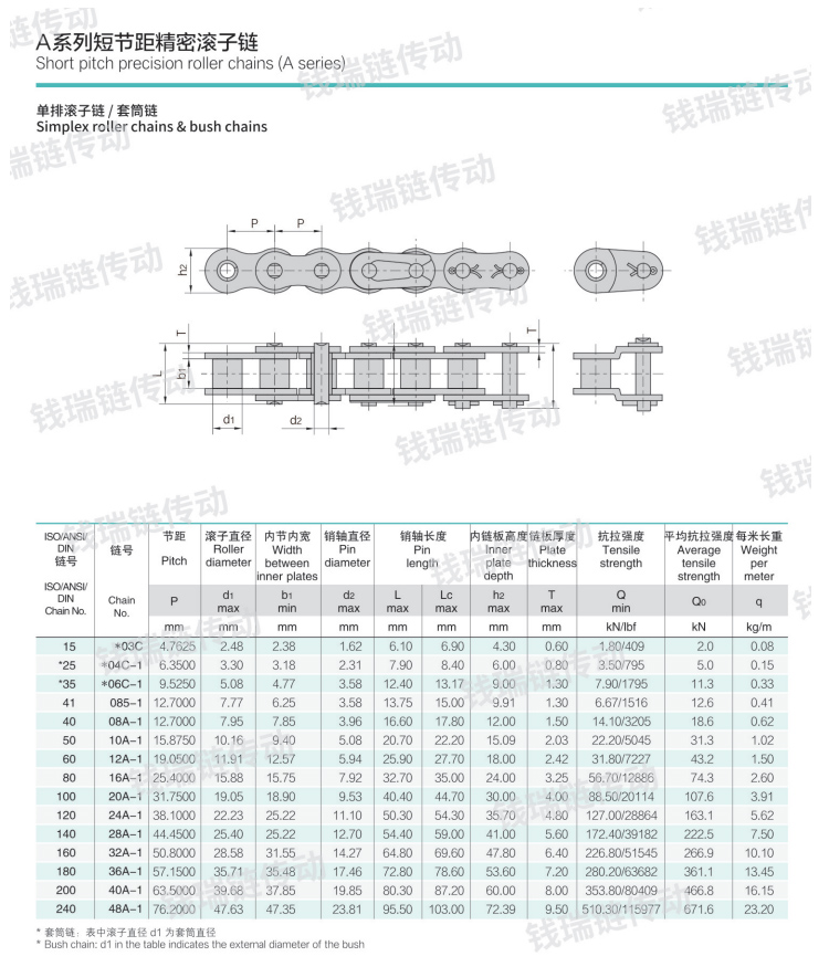 桂盟工业链条35-1R 40-1R 50-1R 60-1R高精度传动链条滚子链条❇
