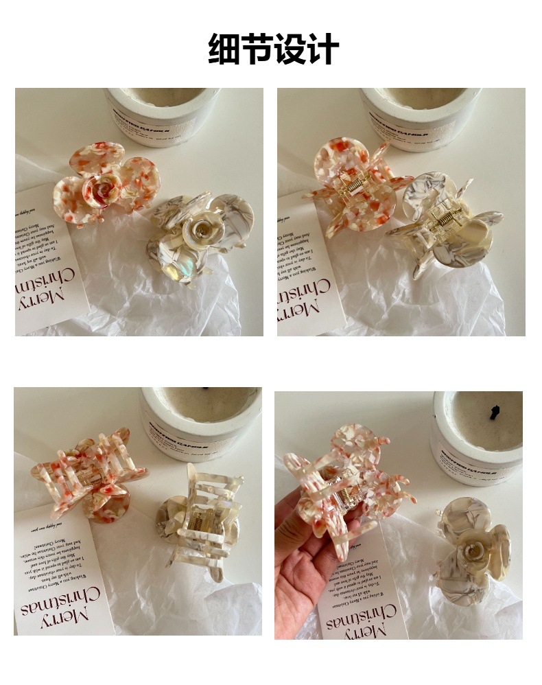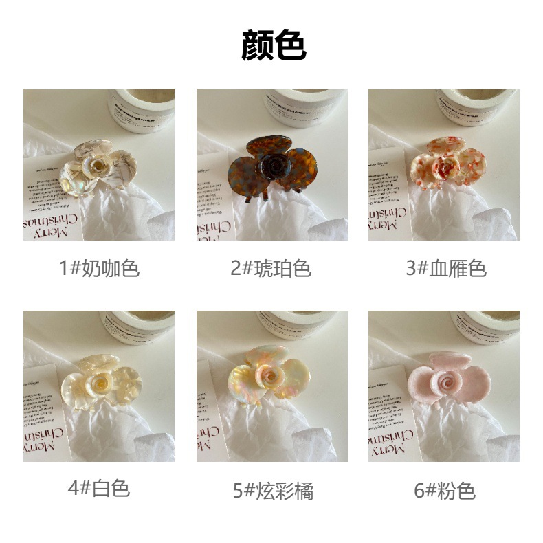 Jepit Rambut Bunga Camellia Asetat Model Baru Gaya Perancis Jepit Rambut Model Sedang Elegan Elegan Warna Kombinasi Kelas Tinggi Hiu Mewah Ringan
