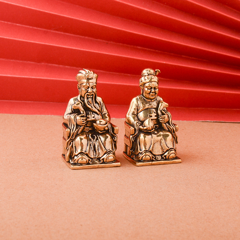 黄铜土地公土地婆佛像摆件黄铜工艺品金属佛像人物家居办公室摆件