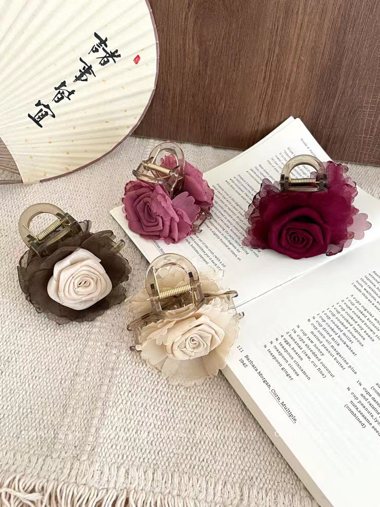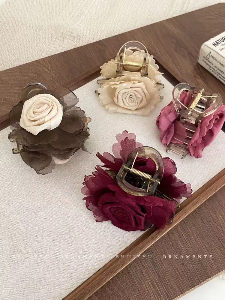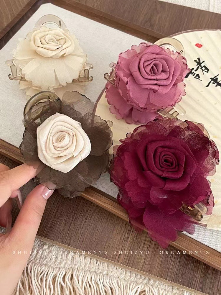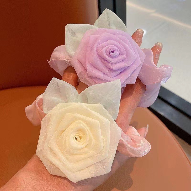 手工编织布艺玫瑰花女式后脑勺大肠发圈气质花朵高弹力发绳头饰