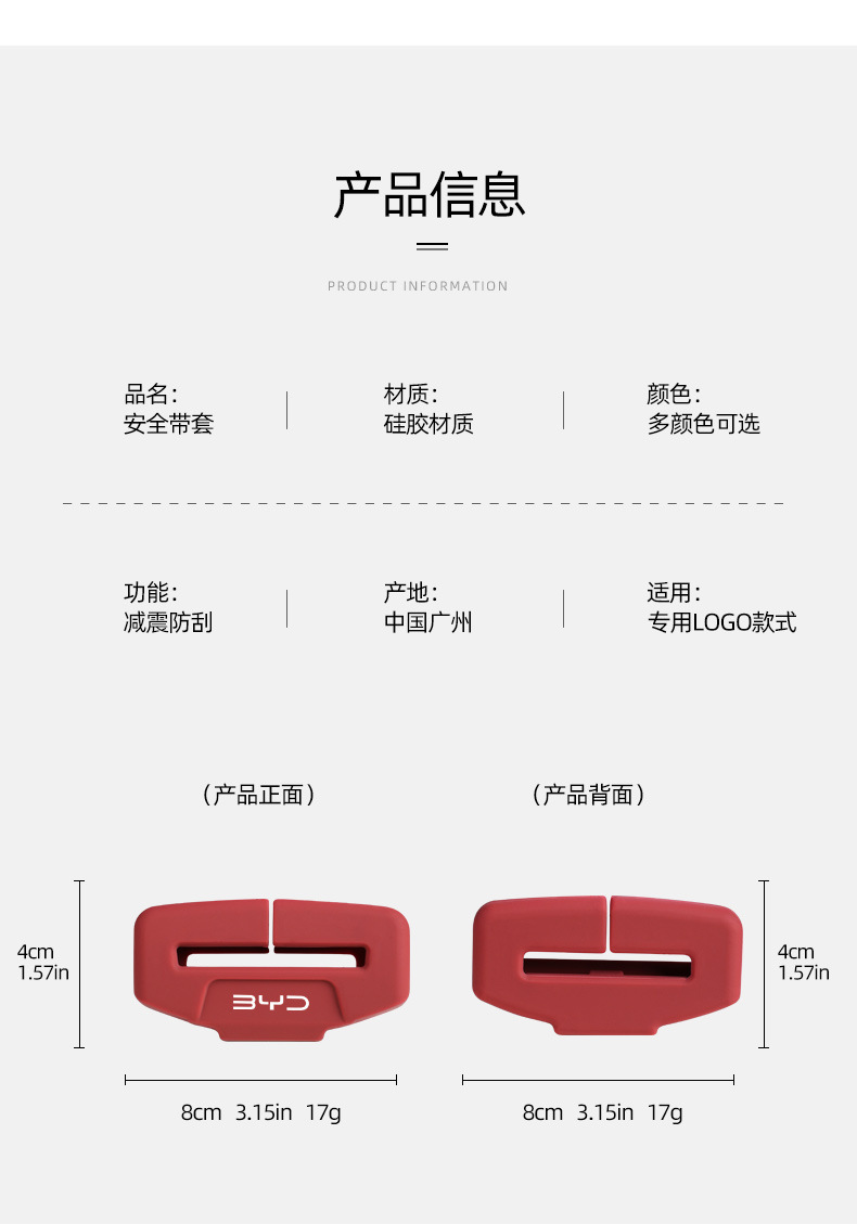 适用比亚迪海鸥宋PLUS宋Pro秦PLUS安全带卡扣硅胶防撞耐磨保护套