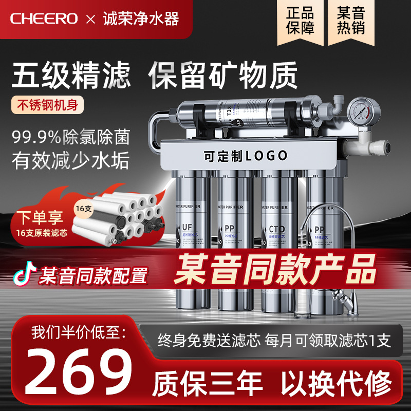 不锈钢净水器自来水超滤净水机不插电家用厨房过滤器 五级净水器