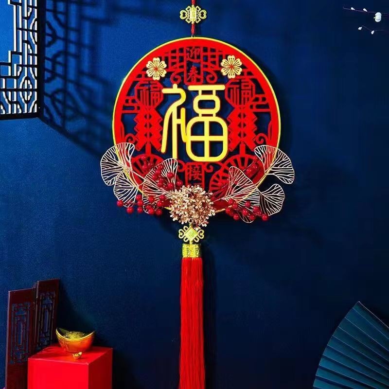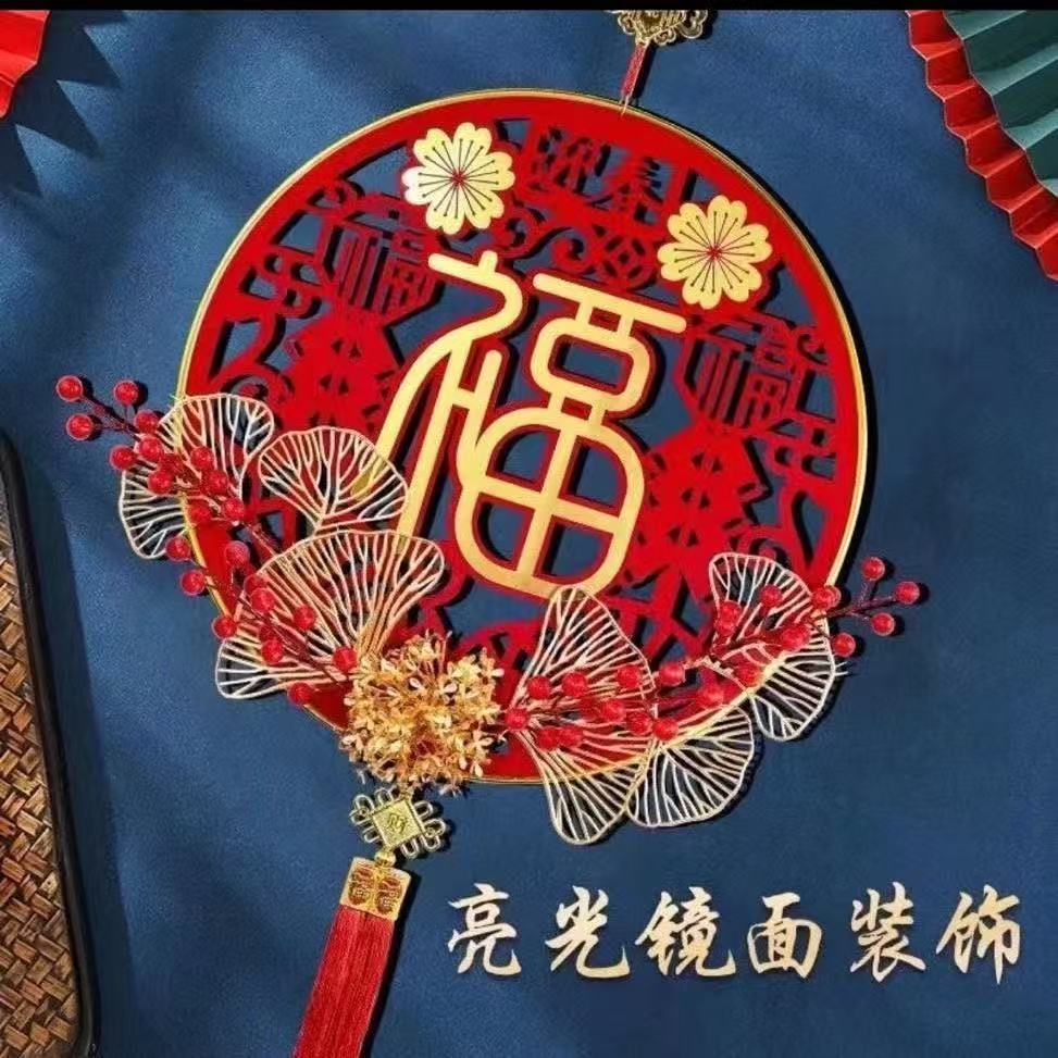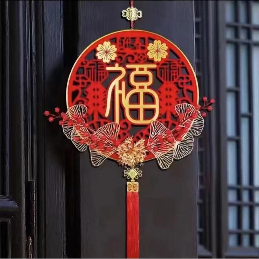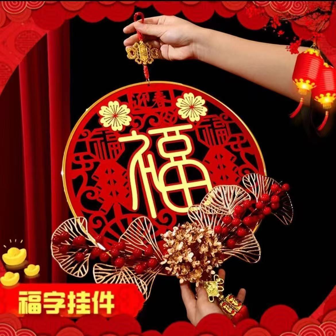 新年高端福字挂件2025年蛇年春节立体红果仿真花中国结福盘挂件