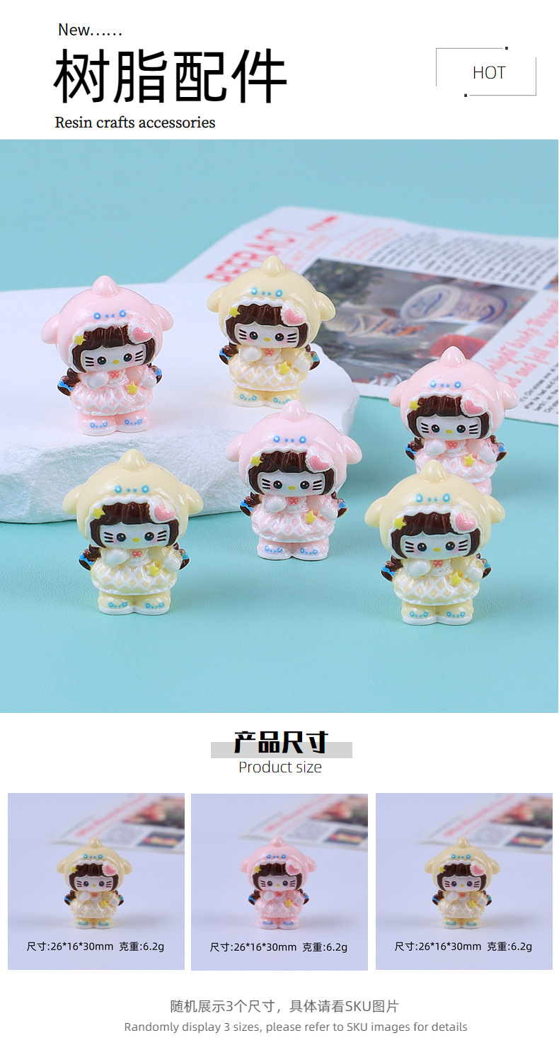 立体鲨鱼喵喵卡通手工diy饰品配件发夹奶油胶树脂小配件材料批发