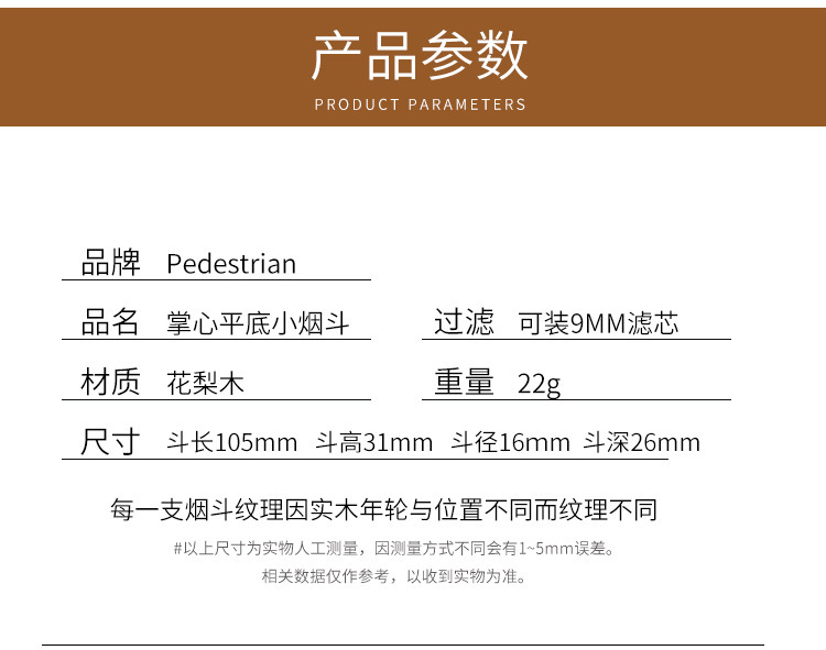 每支烟斗纹理因实木年轮与位置不同而纹理不同