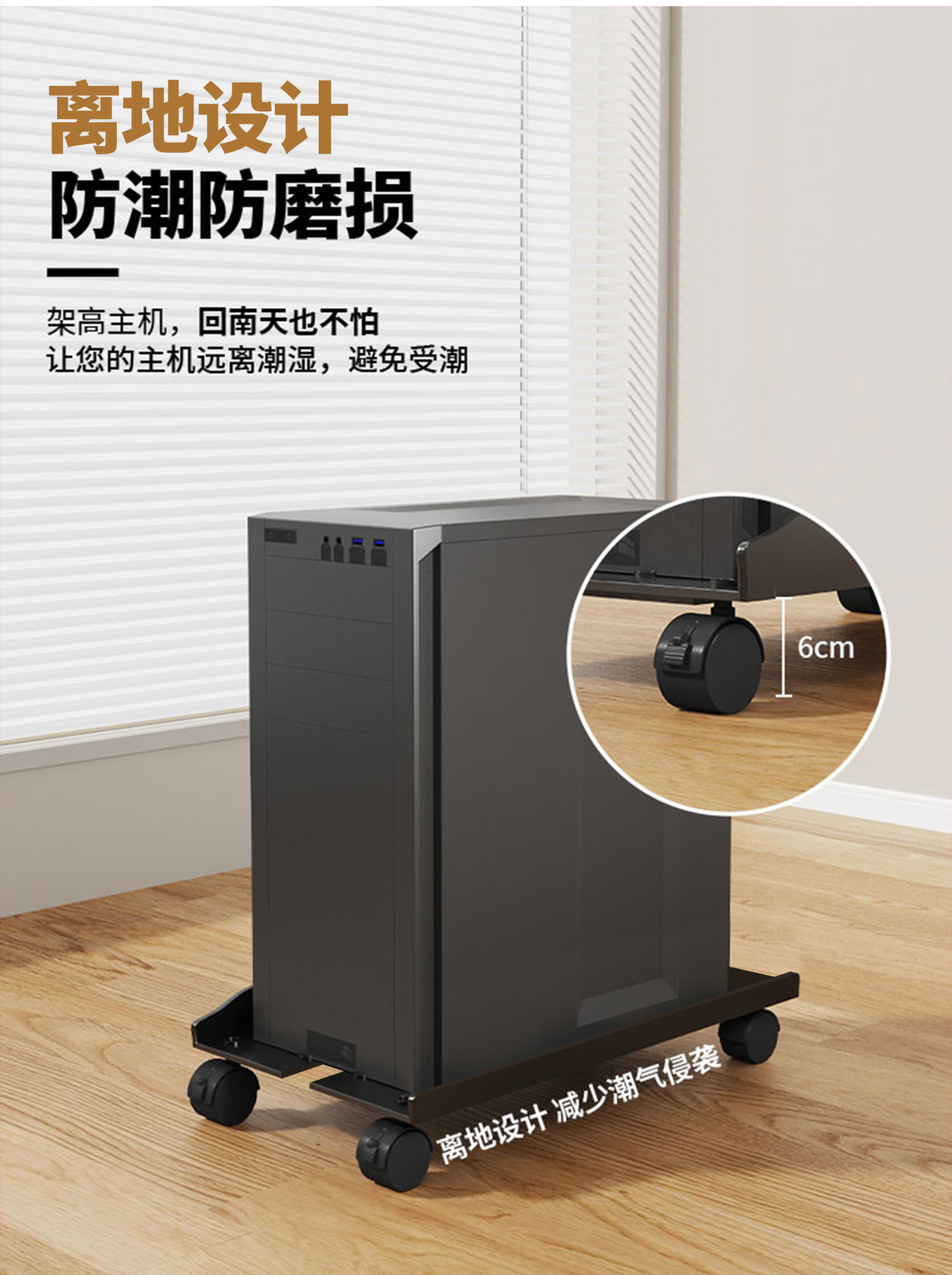 电脑主机托架家用机箱移动带轮底座办公室通用伸缩支架收纳置物架