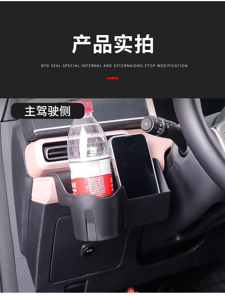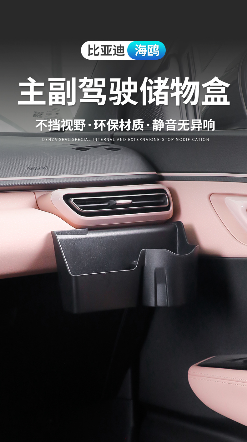 适用比亚迪海鸥主副驾驶水杯支架储物盒内饰ABS储物盒眼镜收纳盒