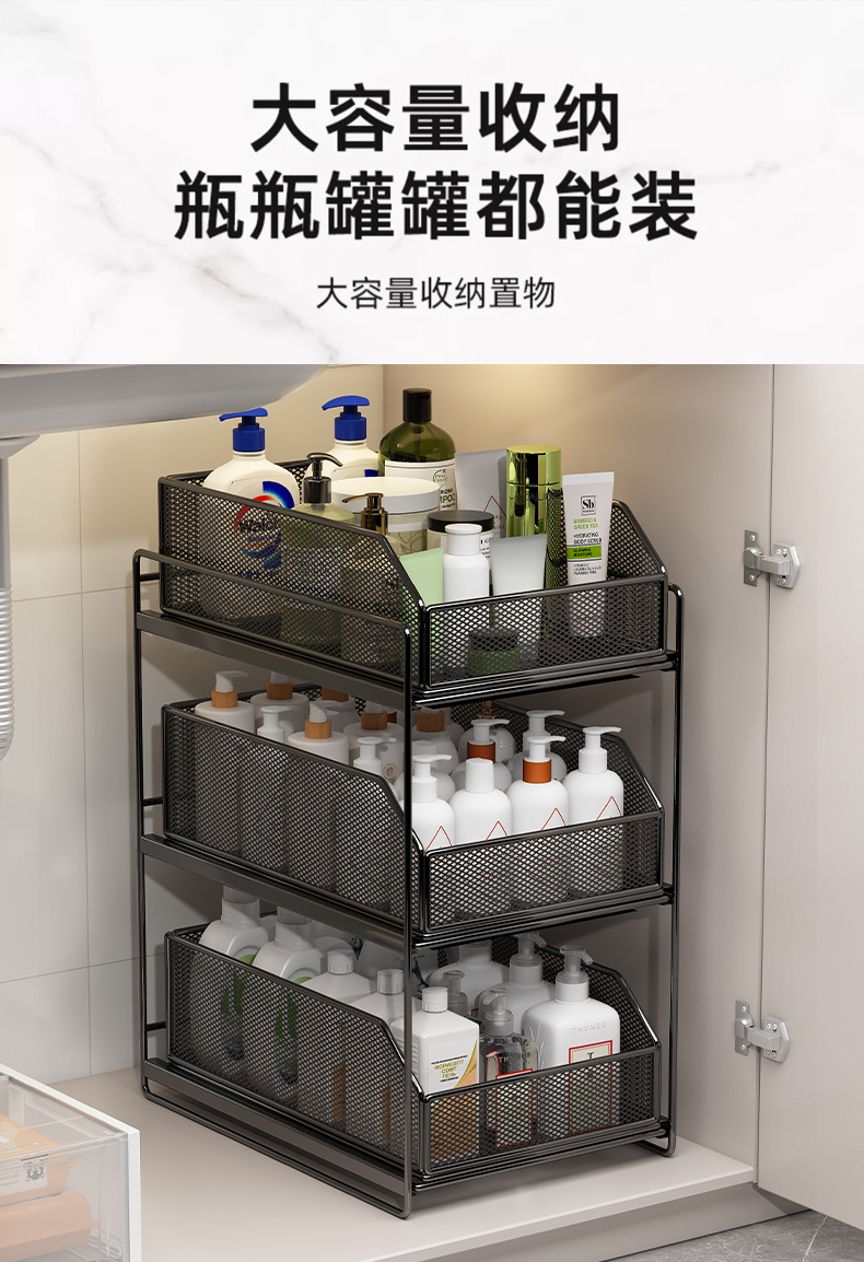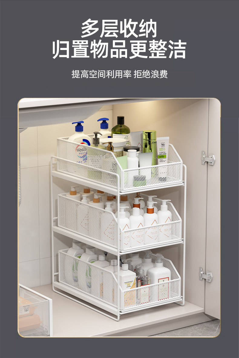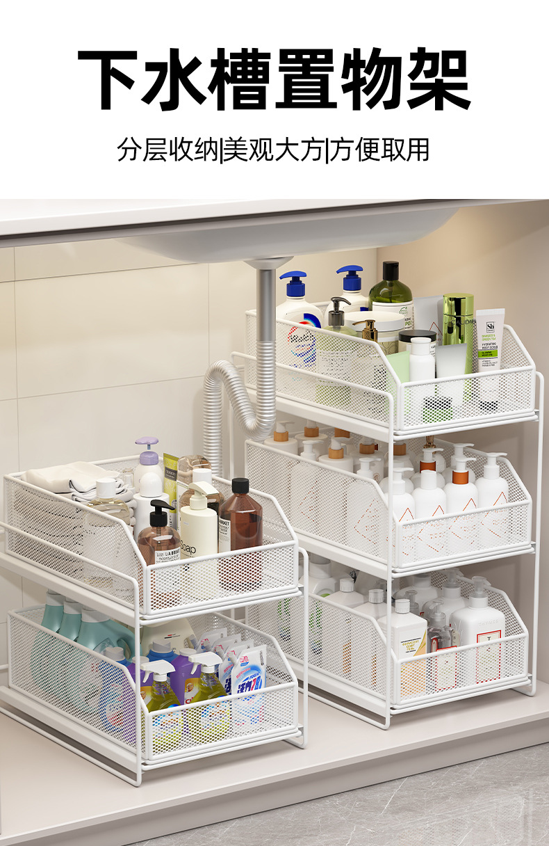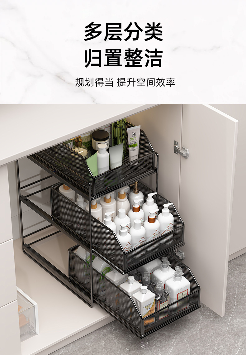 下水槽置物架收纳分层架柜子浴室柜下洗手台下橱柜拉篮抽拉式多层