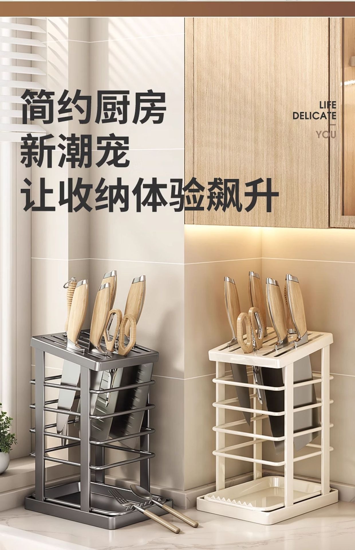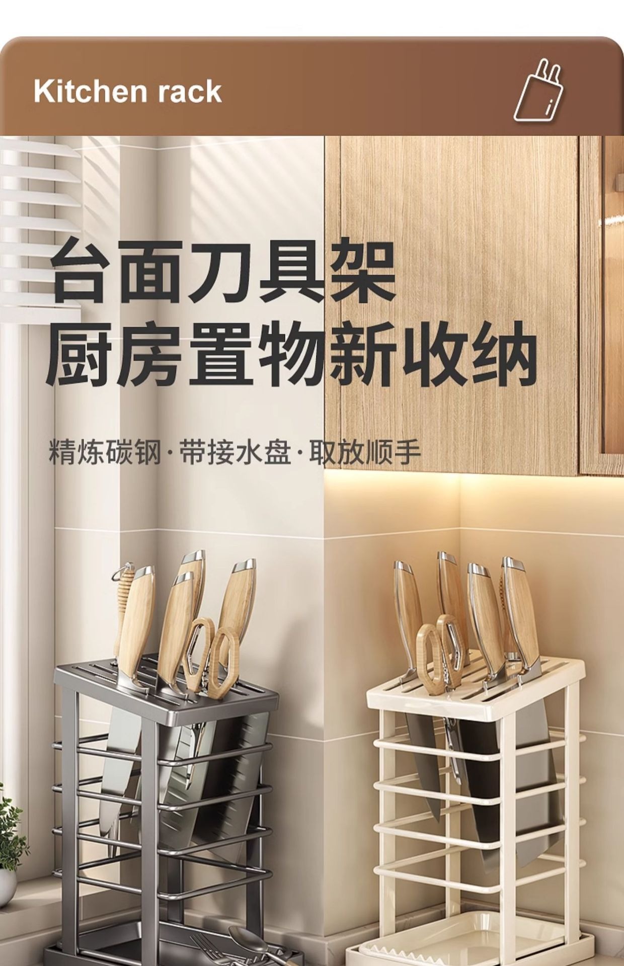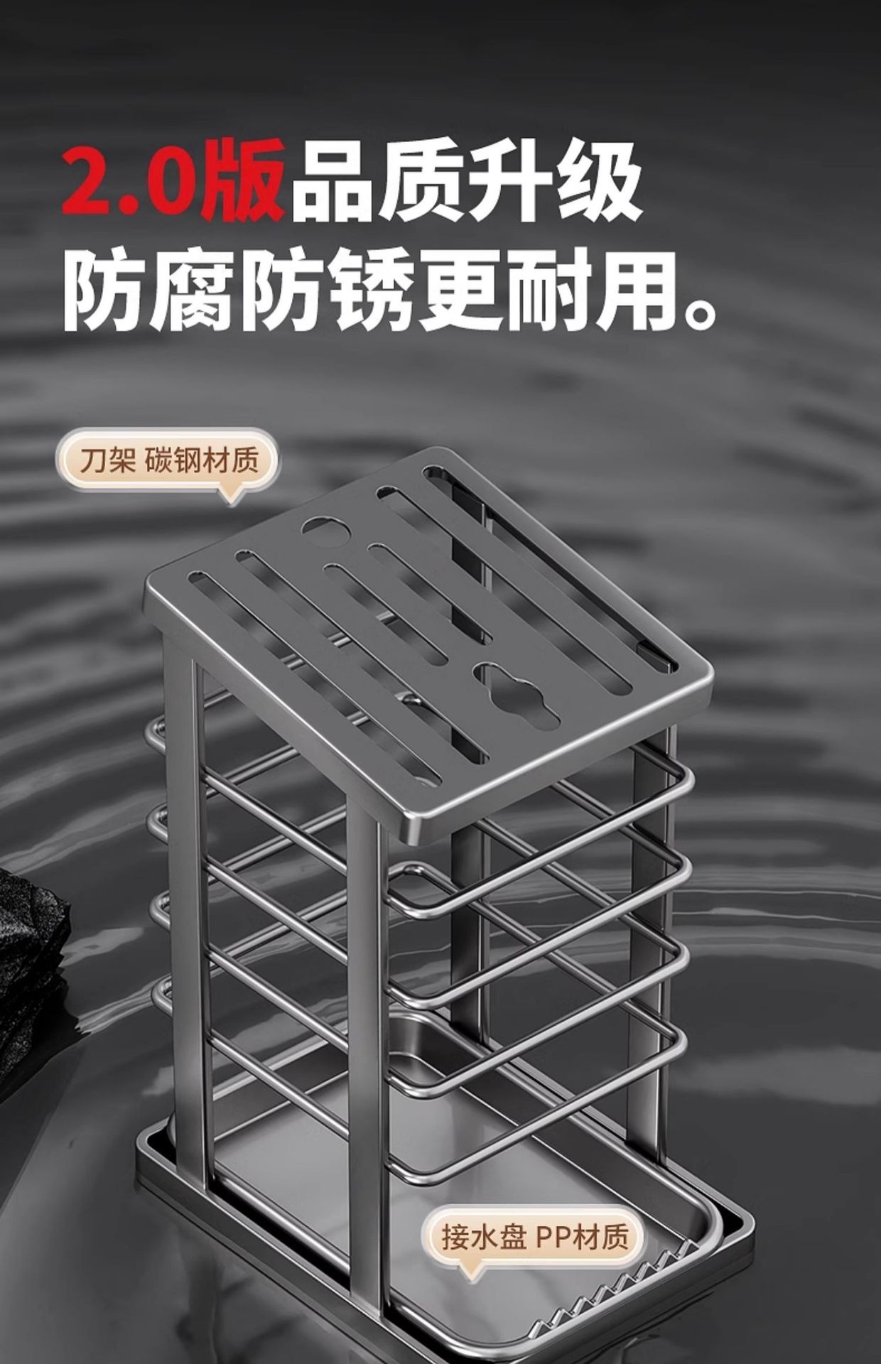 厨房刀架台面放菜刀刀具收纳置物架带沥水盘多功能刀座收纳架代发