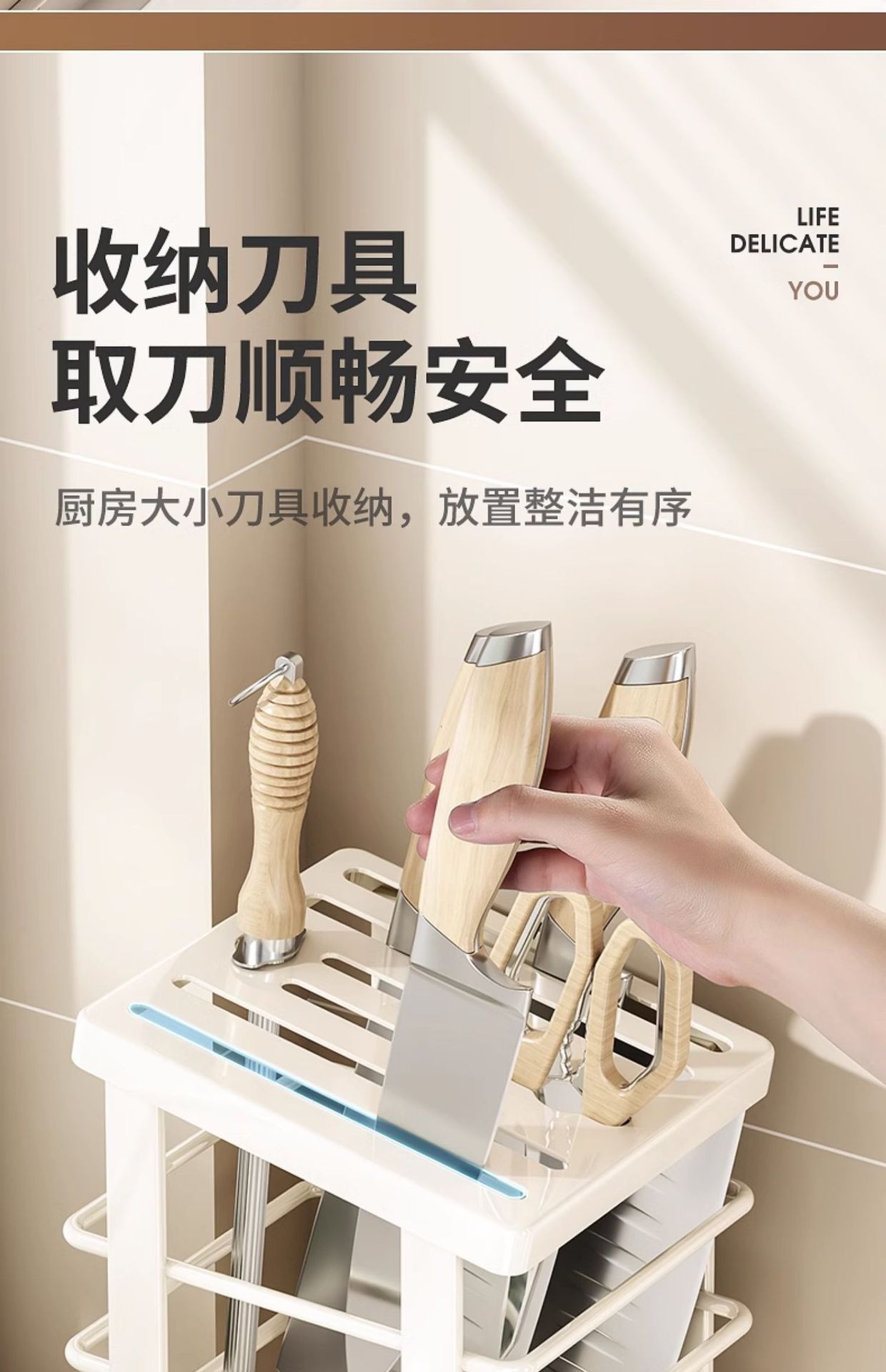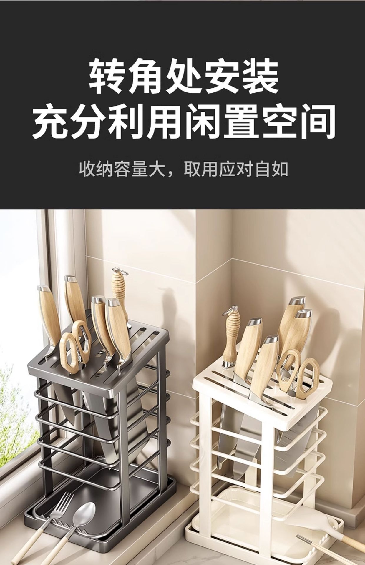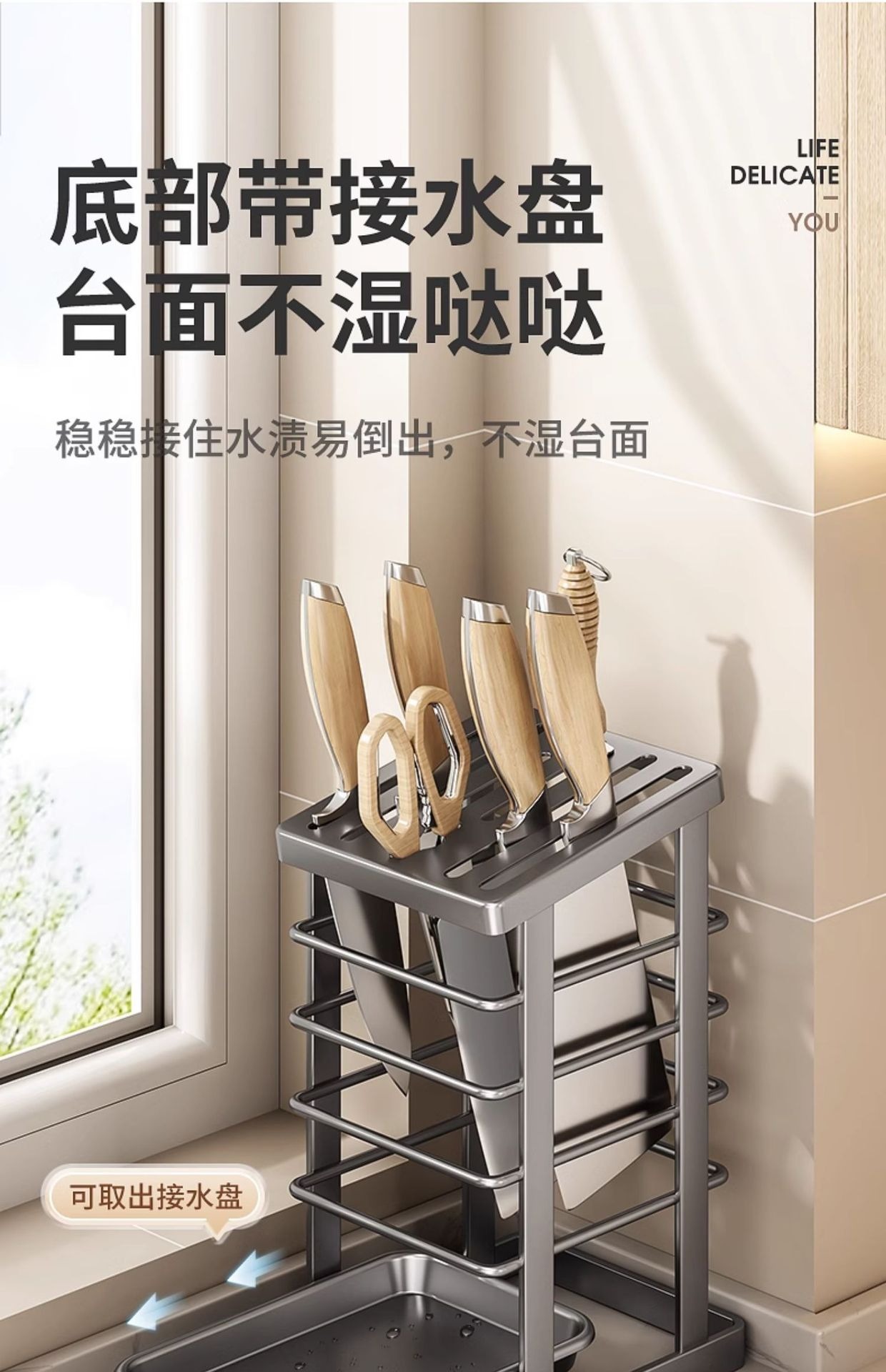 厨房刀架台面放菜刀刀具收纳置物架带沥水盘多功能刀座收纳架代发