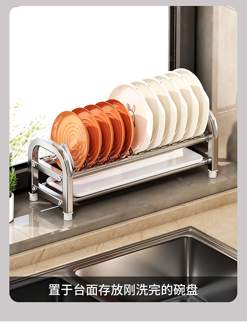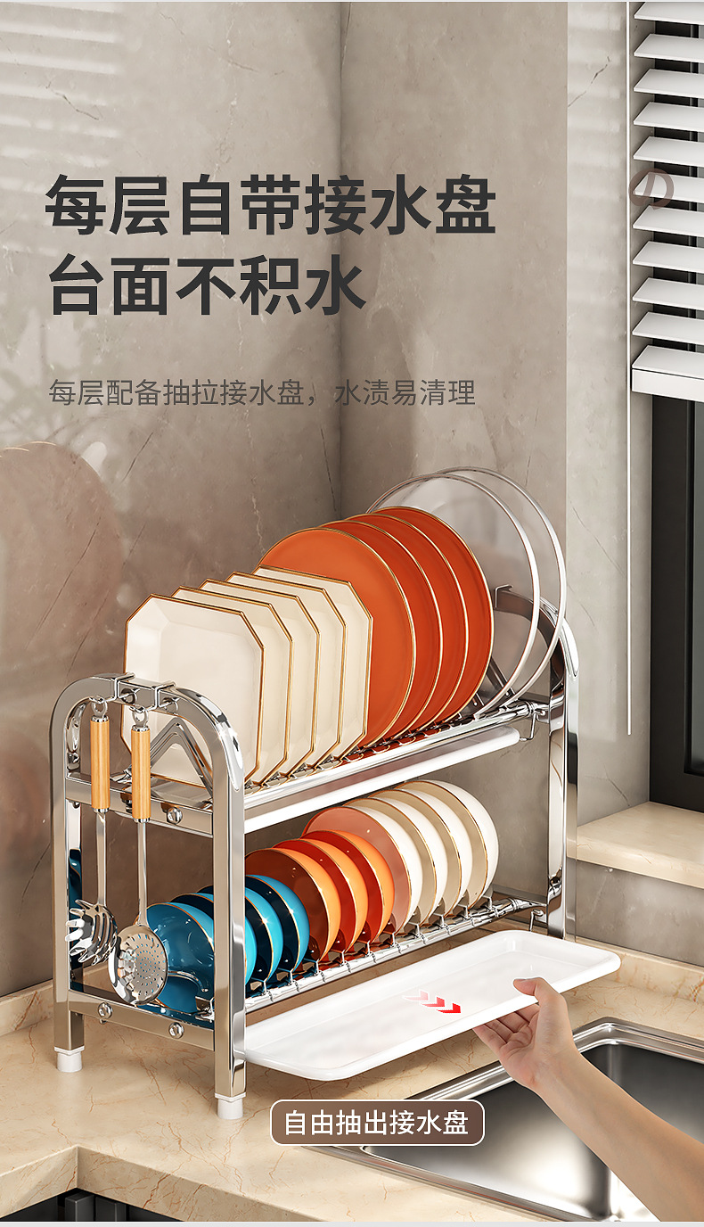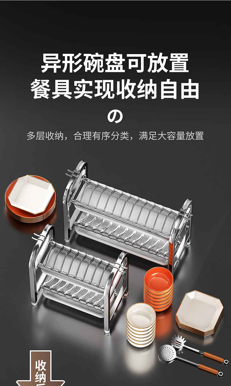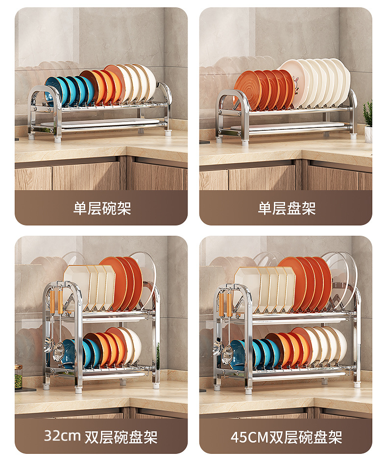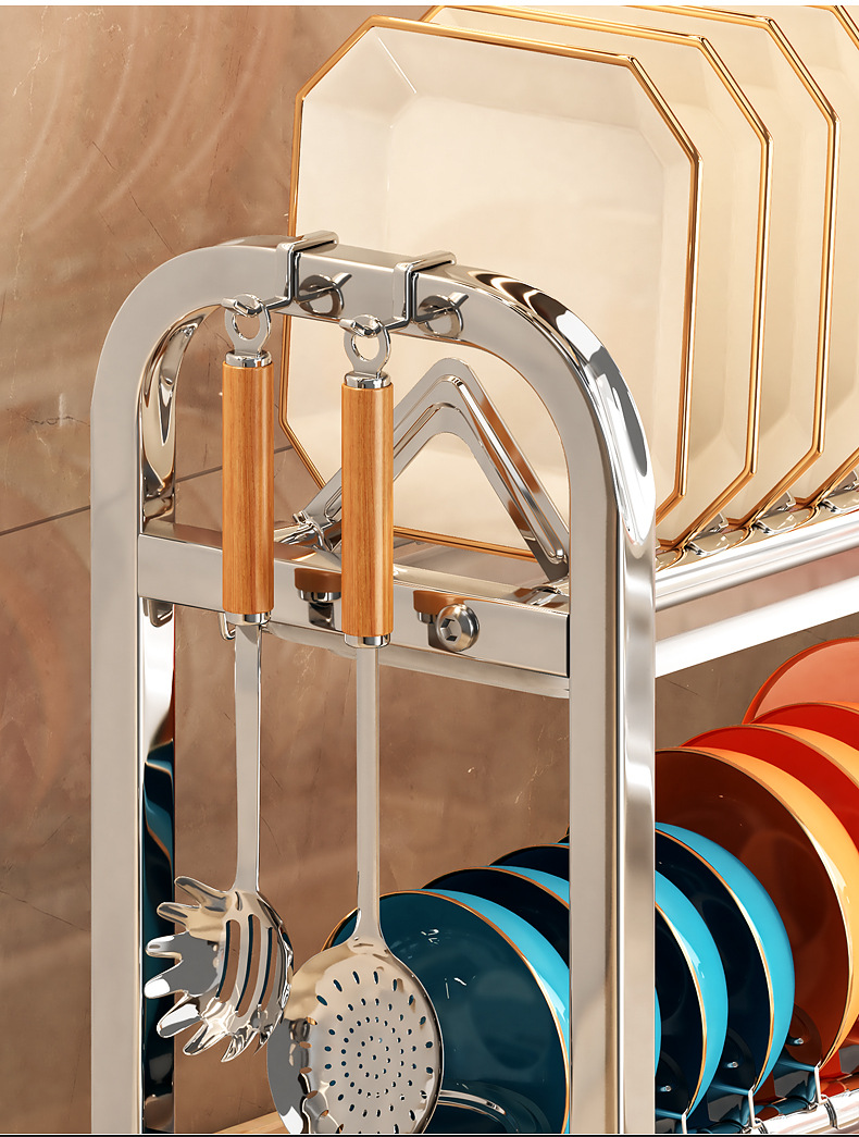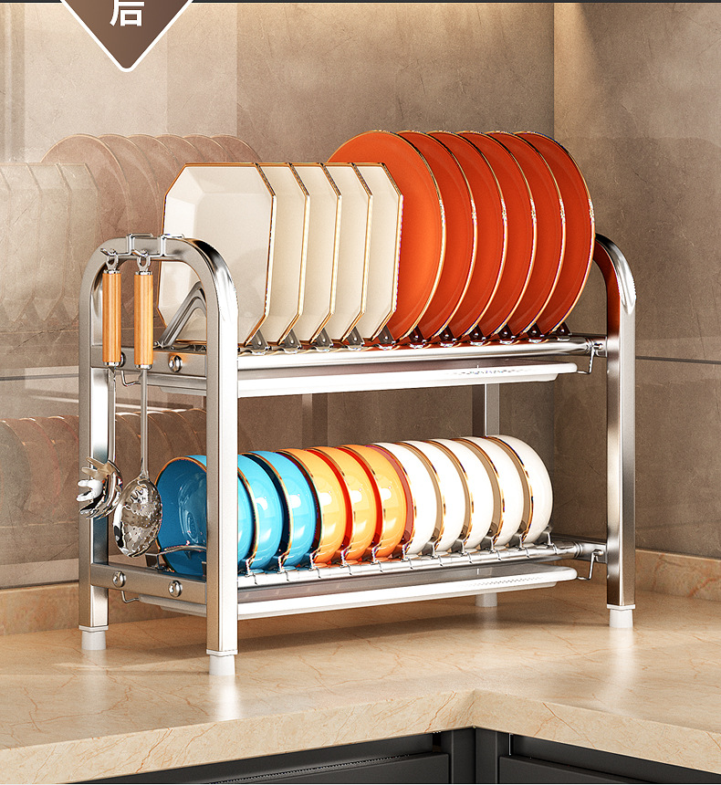 Rak penyimpanan piring dapur Stainless steel, rak penyimpanan peralatan makan, rak wastafel piring multifungsi, rak piring rumah tangga