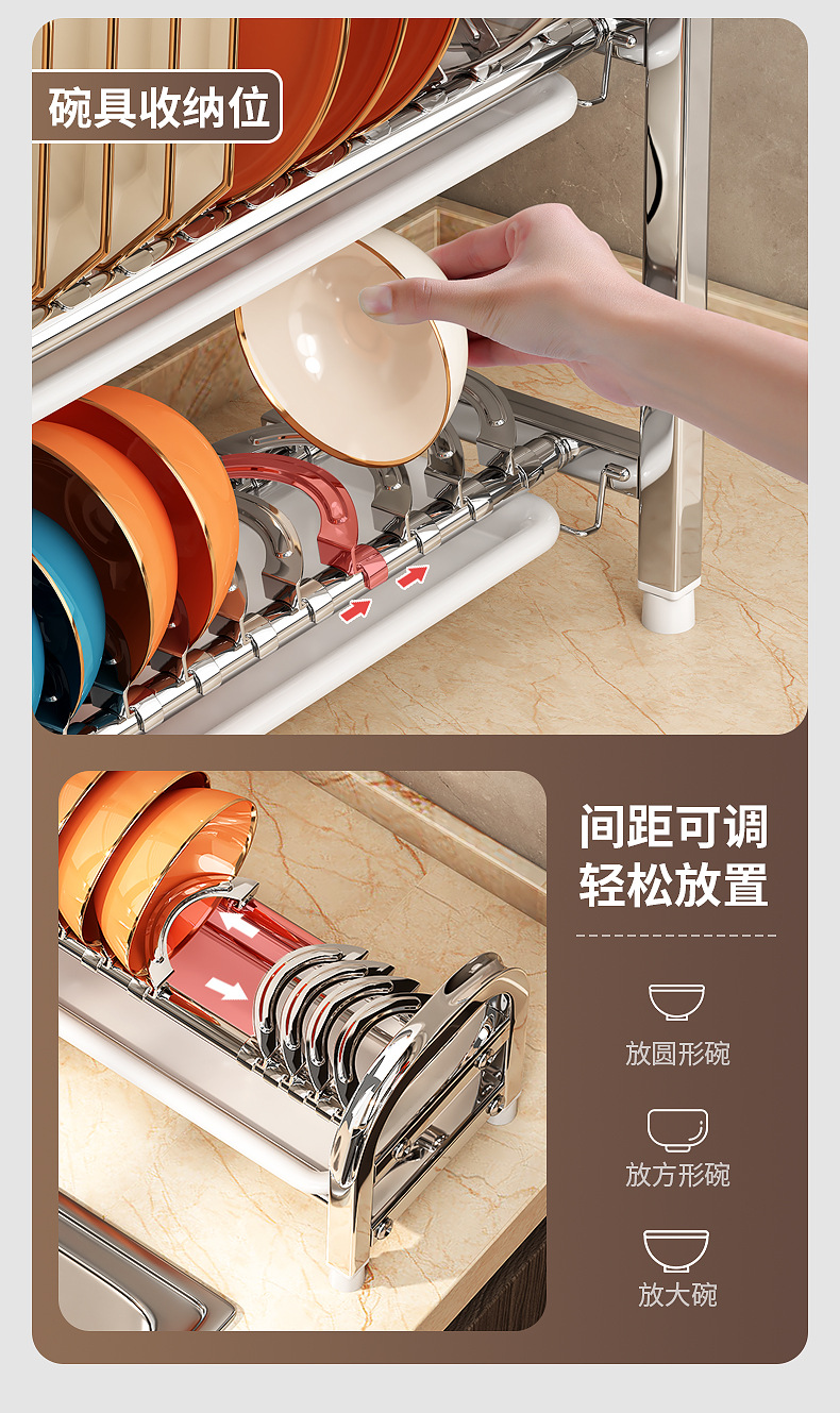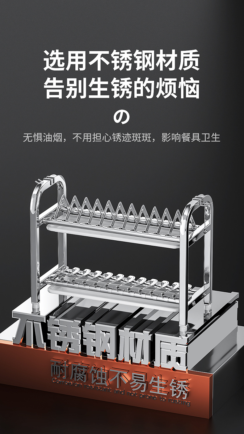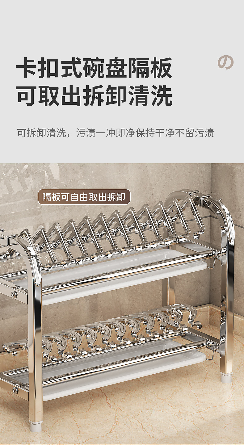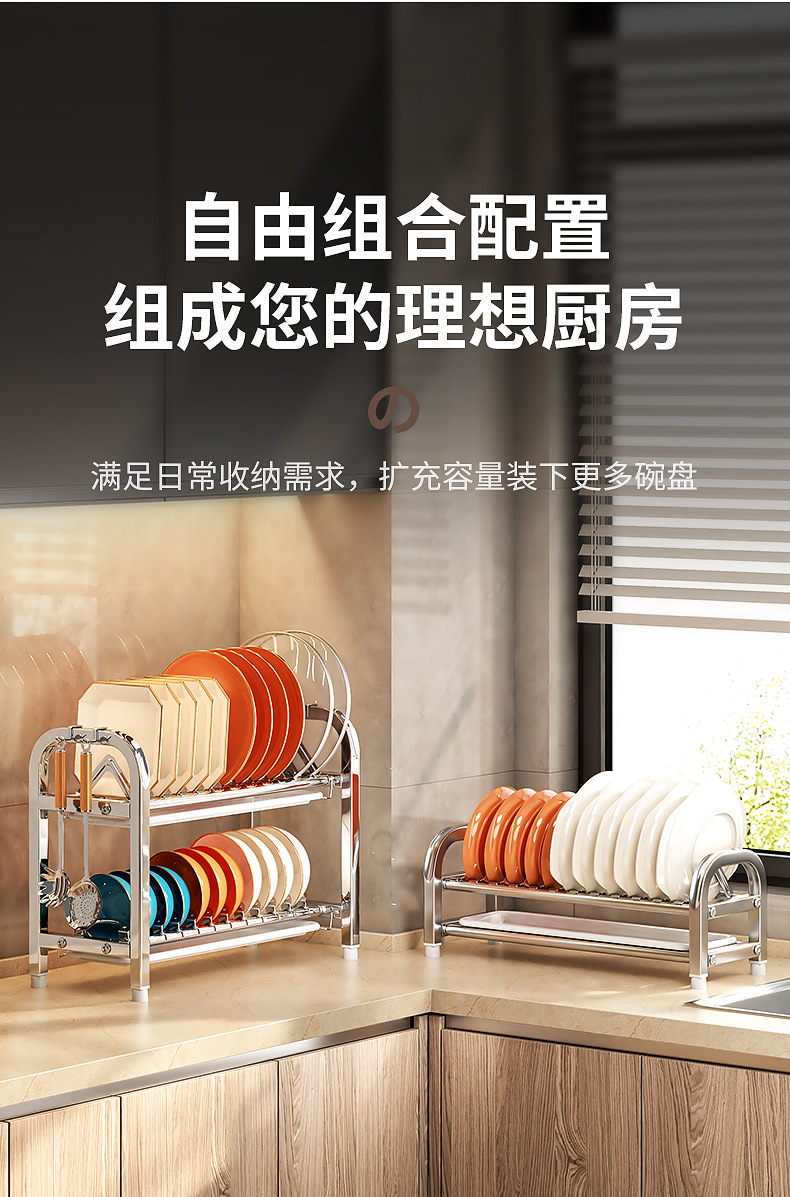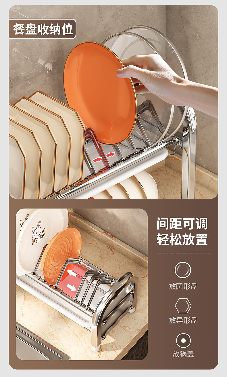 Rak penyimpanan piring dapur Stainless steel, rak penyimpanan peralatan makan, rak wastafel piring multifungsi, rak piring rumah tangga