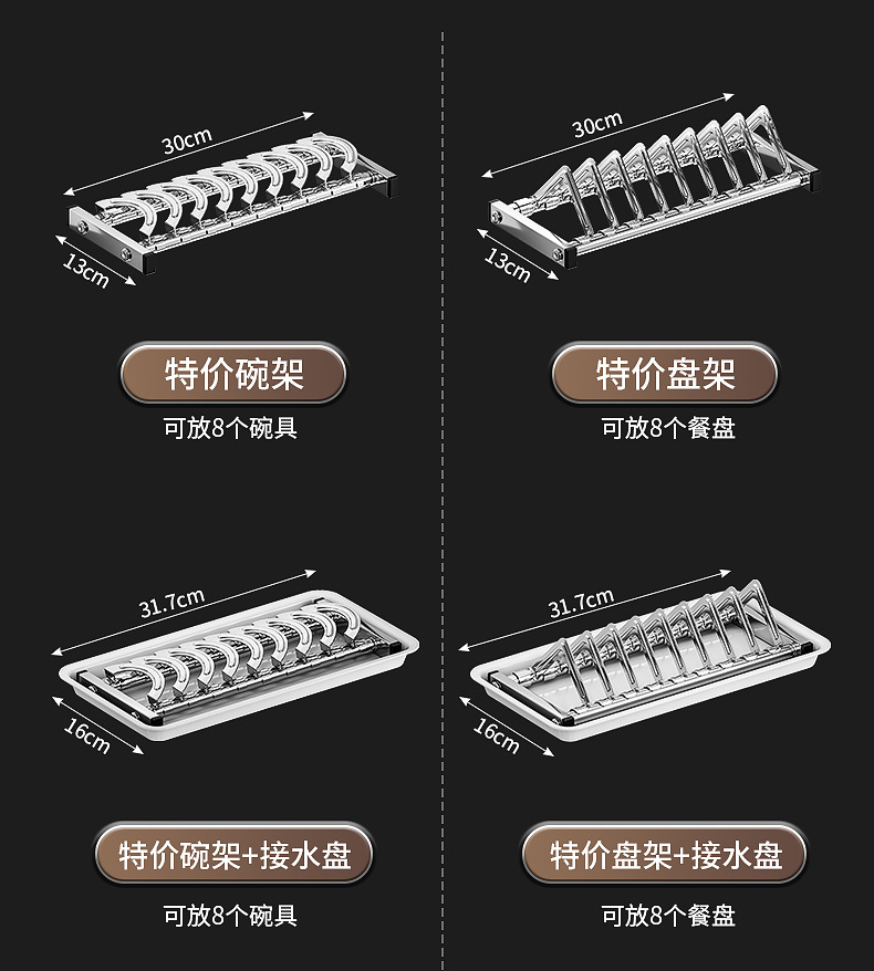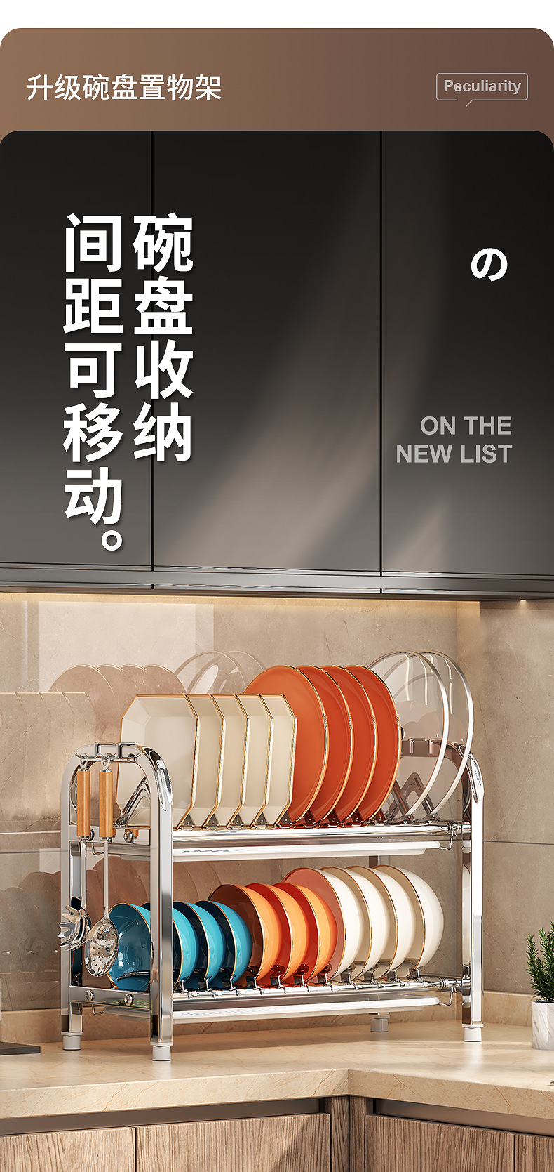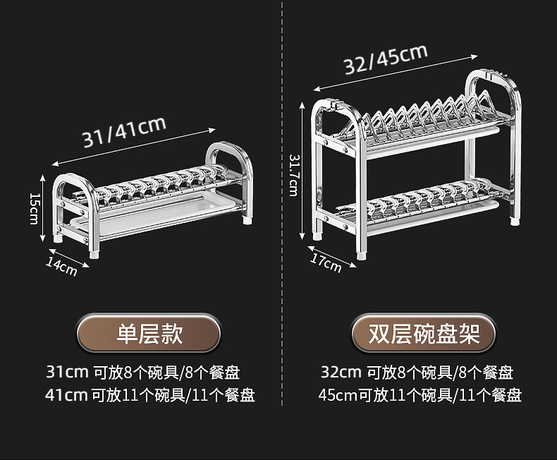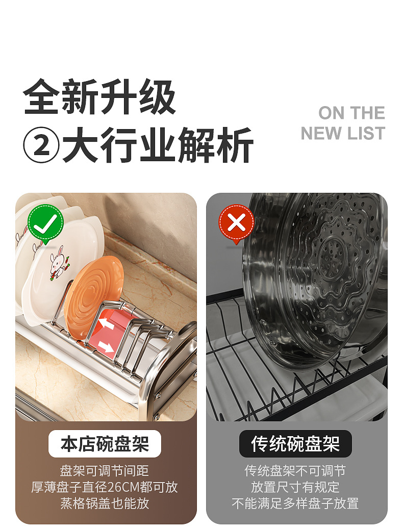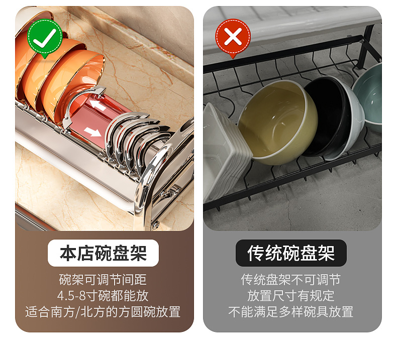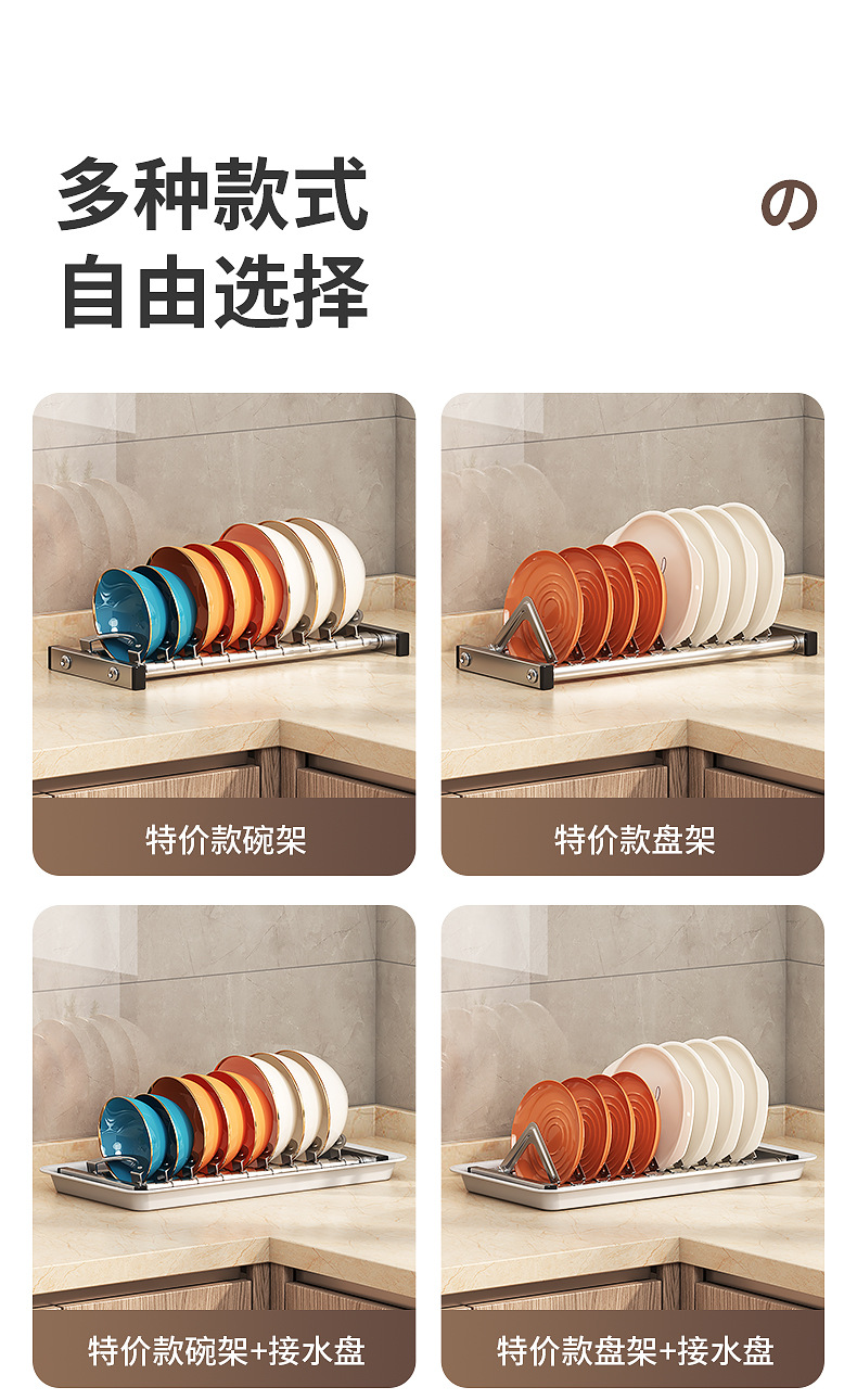 Rak penyimpanan piring dapur Stainless steel, rak penyimpanan peralatan makan, rak wastafel piring multifungsi, rak piring rumah tangga