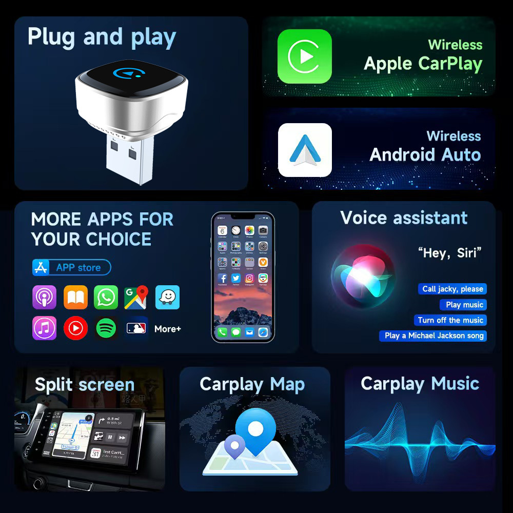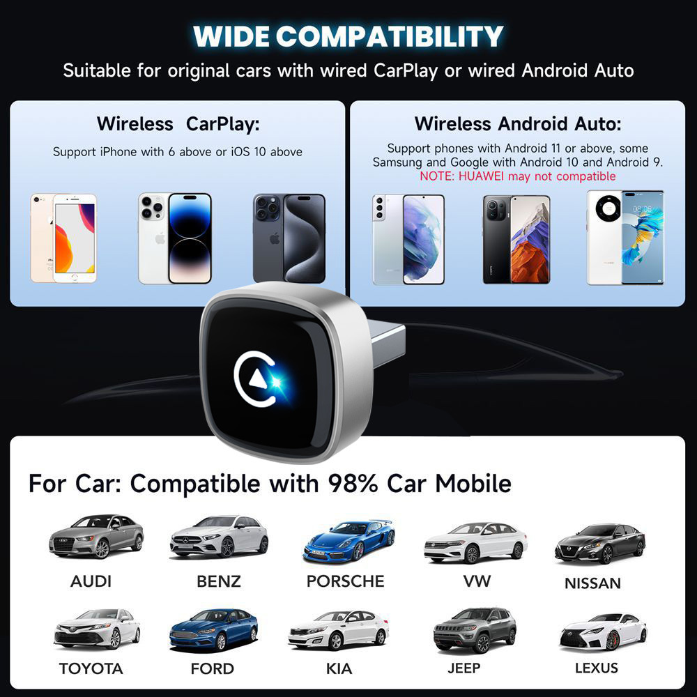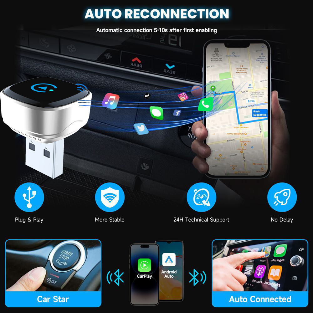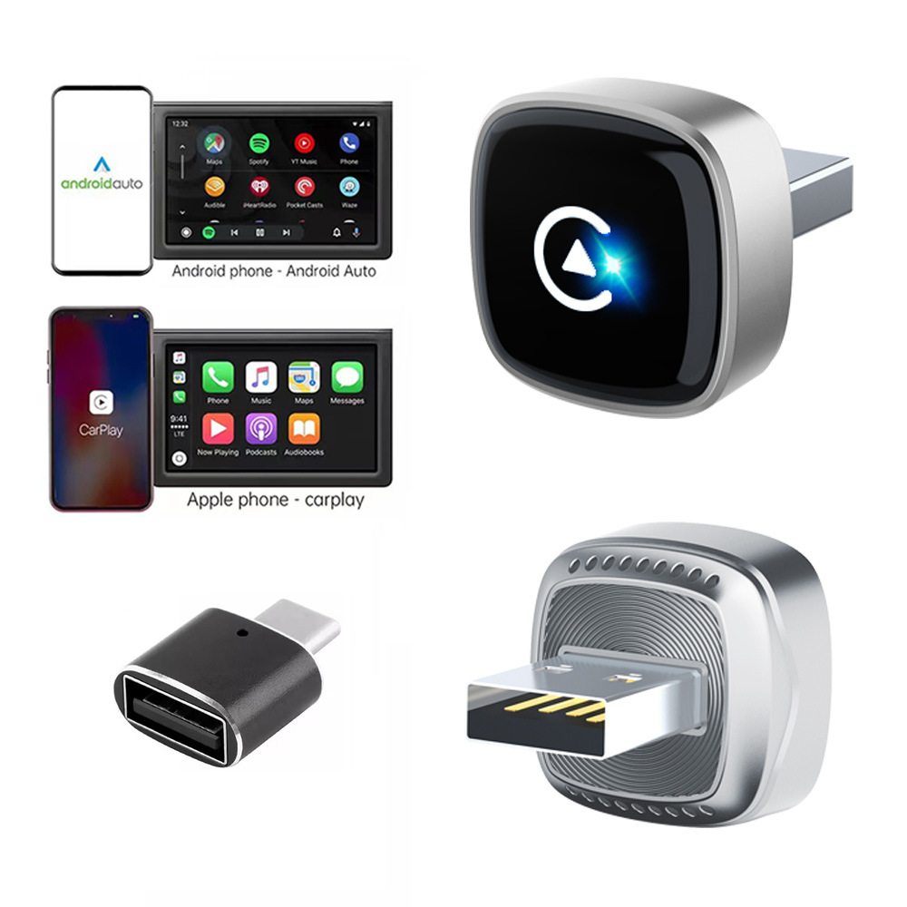 Kotak Carplay Nirkabel Berkabel Logam Baru 2025 Android Auto Adaptor Dua-dalam-Satu Interkoneksi Mobil