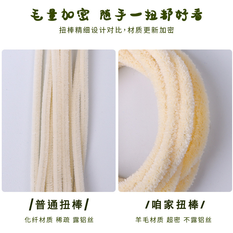 本公司主营各种规格扭扭棒系列产品,货真价实,品质有保障。内置铝丝默认耐扭加硬。手感很好,扭出来的小动物容易塑性,容易定形,不易变形,成品耐压。完成后的成品不论是摆摊还是邮寄,都不怕顾客(快递)稍微蹂虐变形。