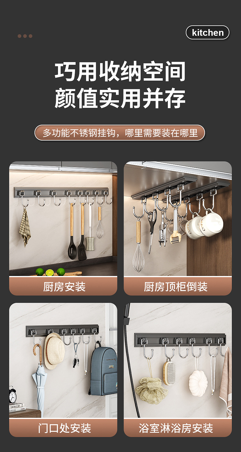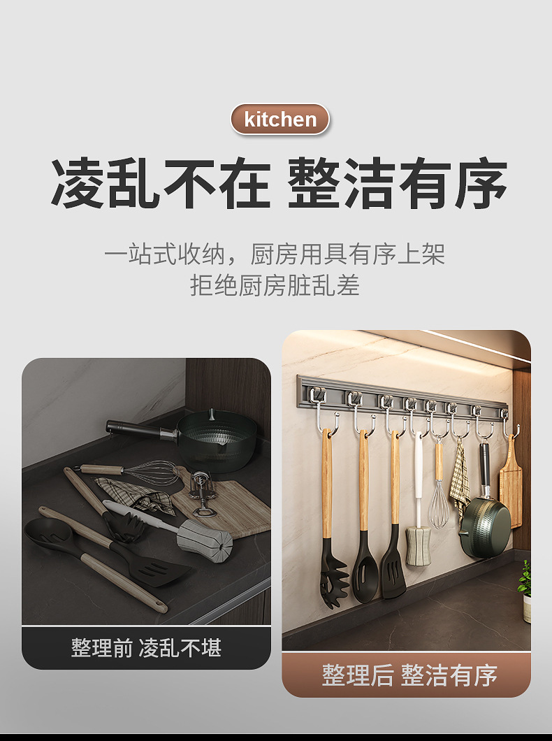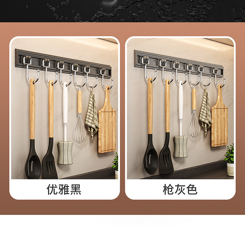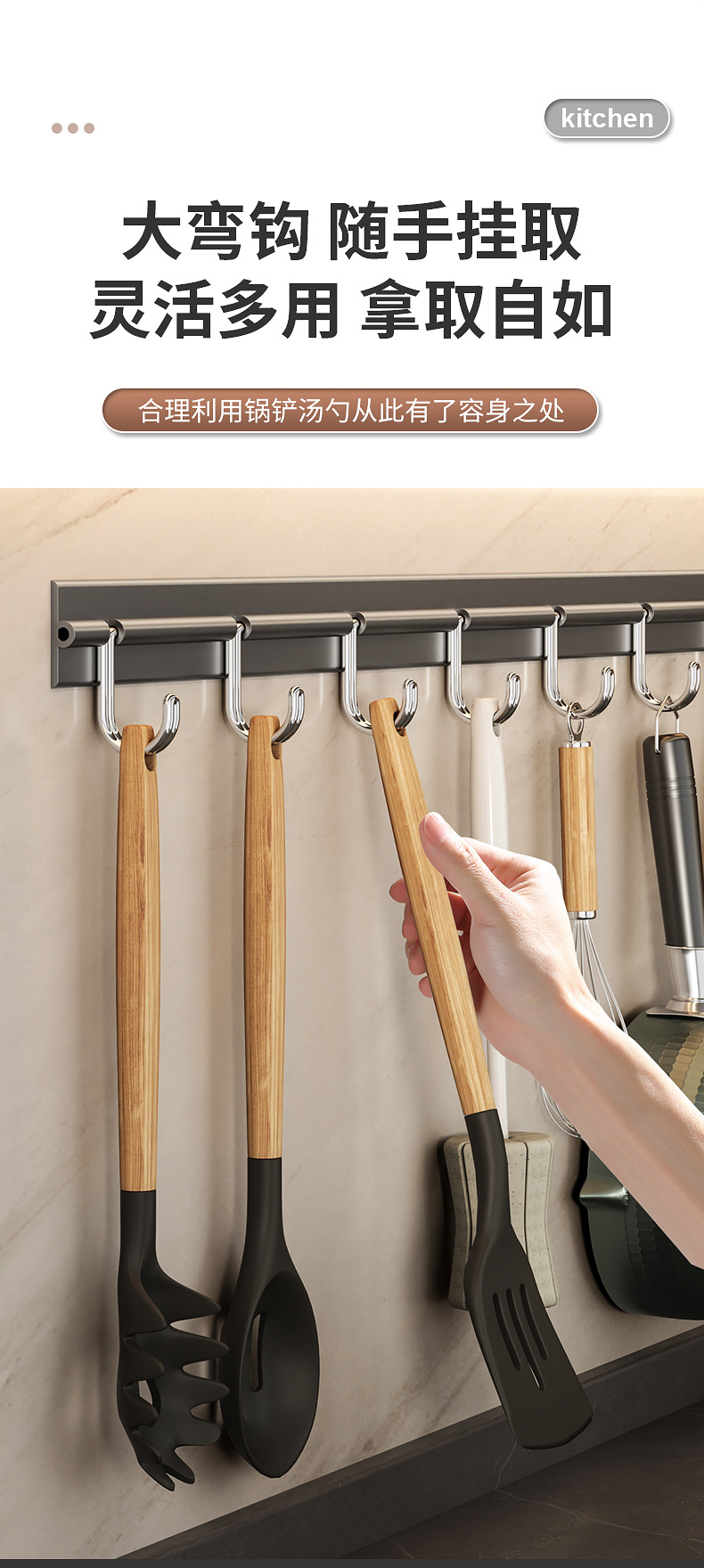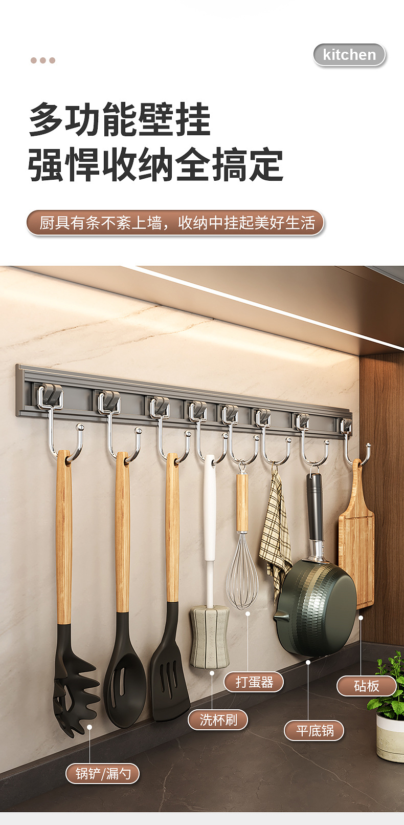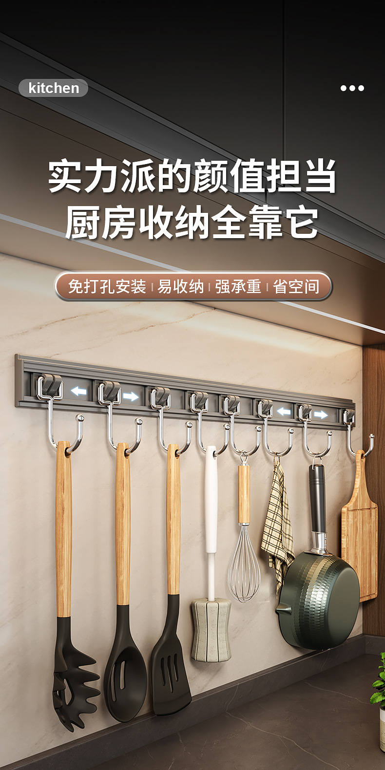 Ruang aluminium pukulan multifungsi kait dapur dinding rak penyimpanan terpasang di dinding dapur dan kamar mandi penyimpanan liontin baris kait Spatula rak