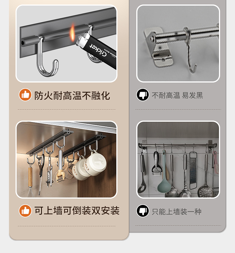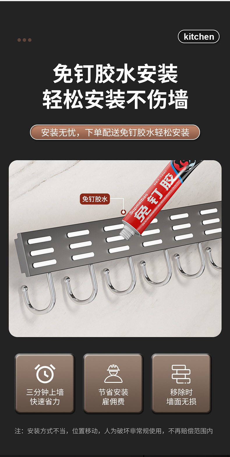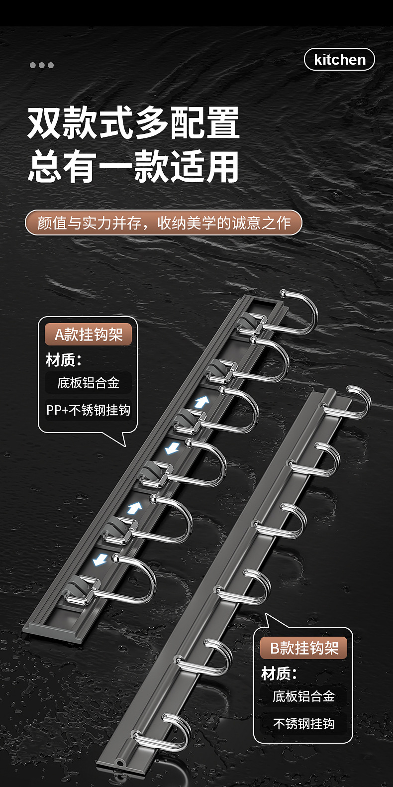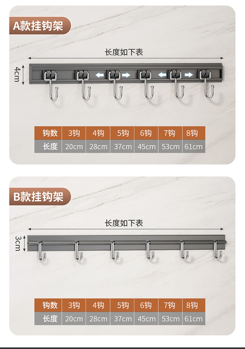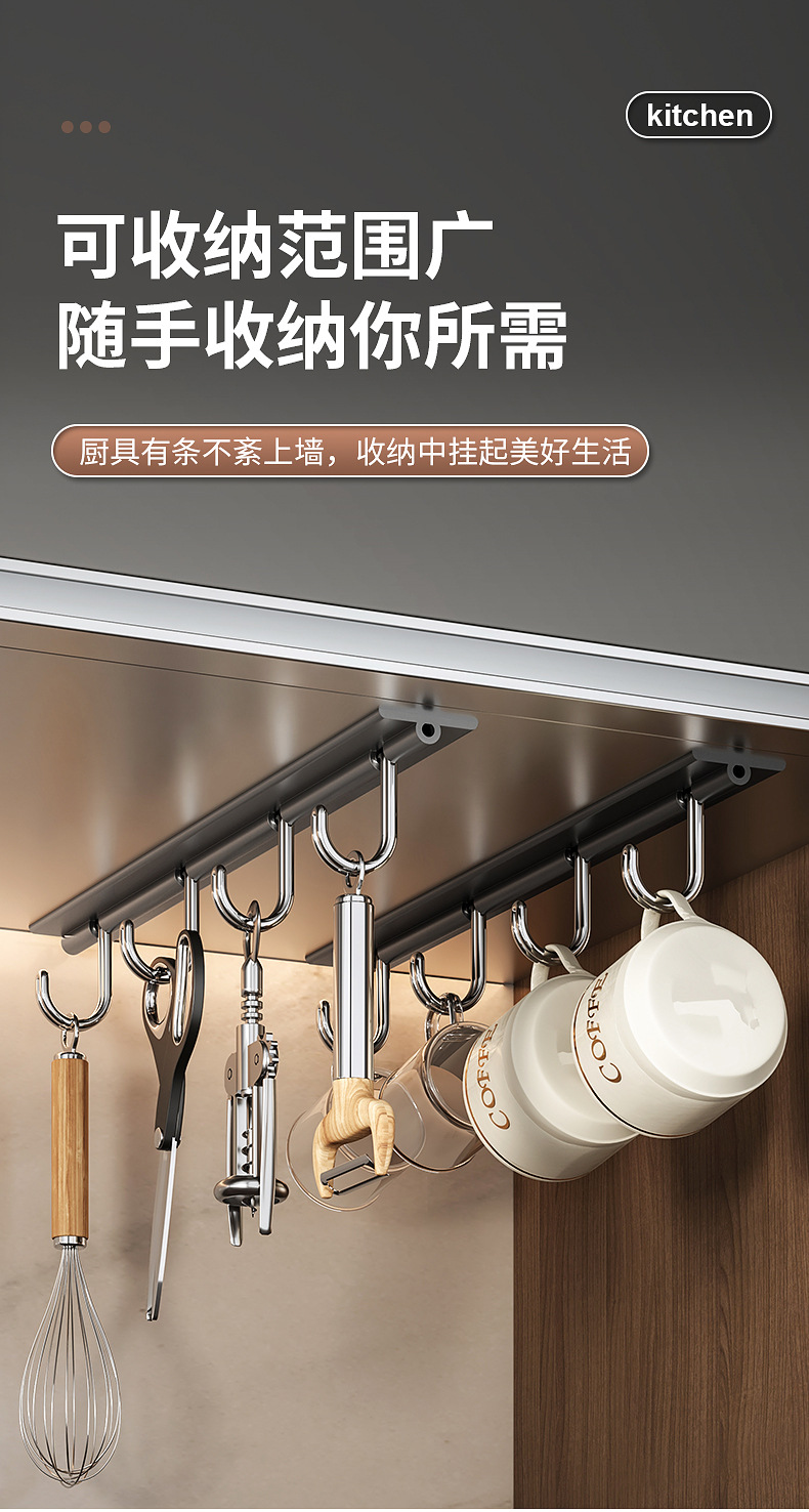 Ruang aluminium pukulan multifungsi kait dapur dinding rak penyimpanan terpasang di dinding dapur dan kamar mandi penyimpanan liontin baris kait Spatula rak