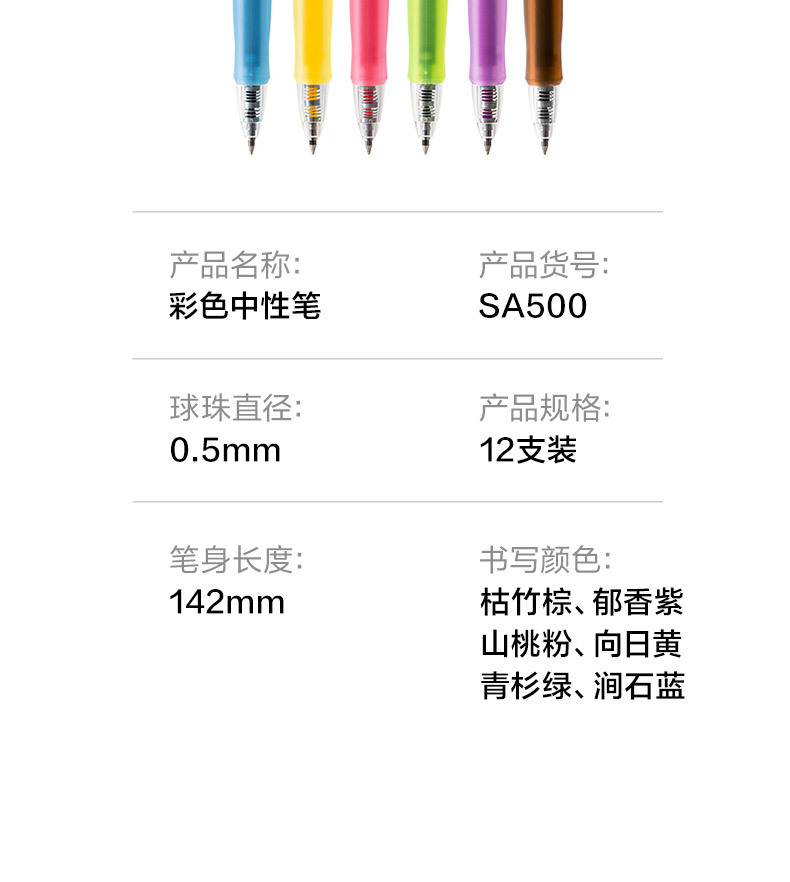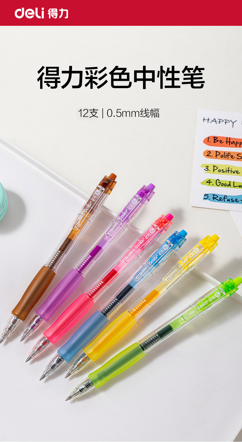 Deli SA500 Pena Sedang Berwarna Pena Tekan Siswa Pena Catatan Catatan Catatan Kunci Pena Warna Pena Air Grosir