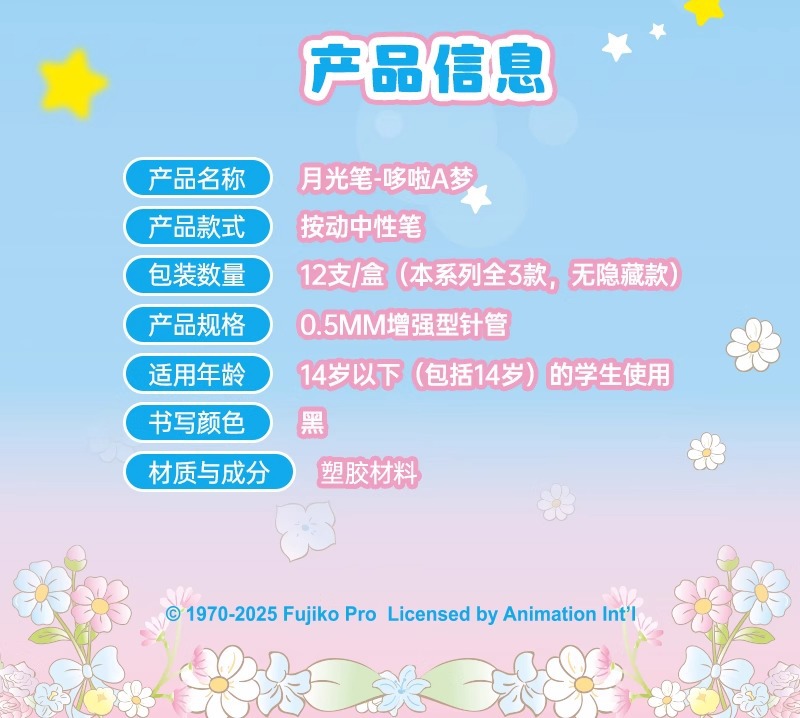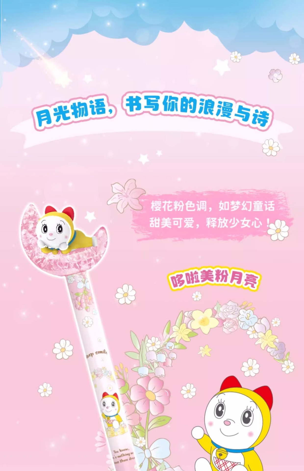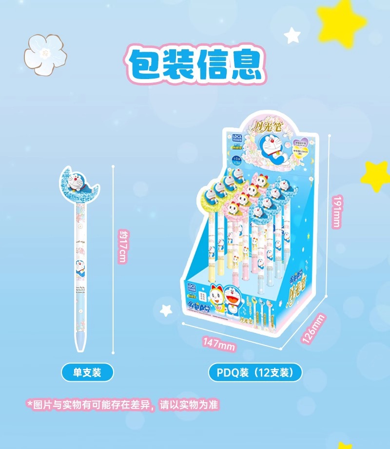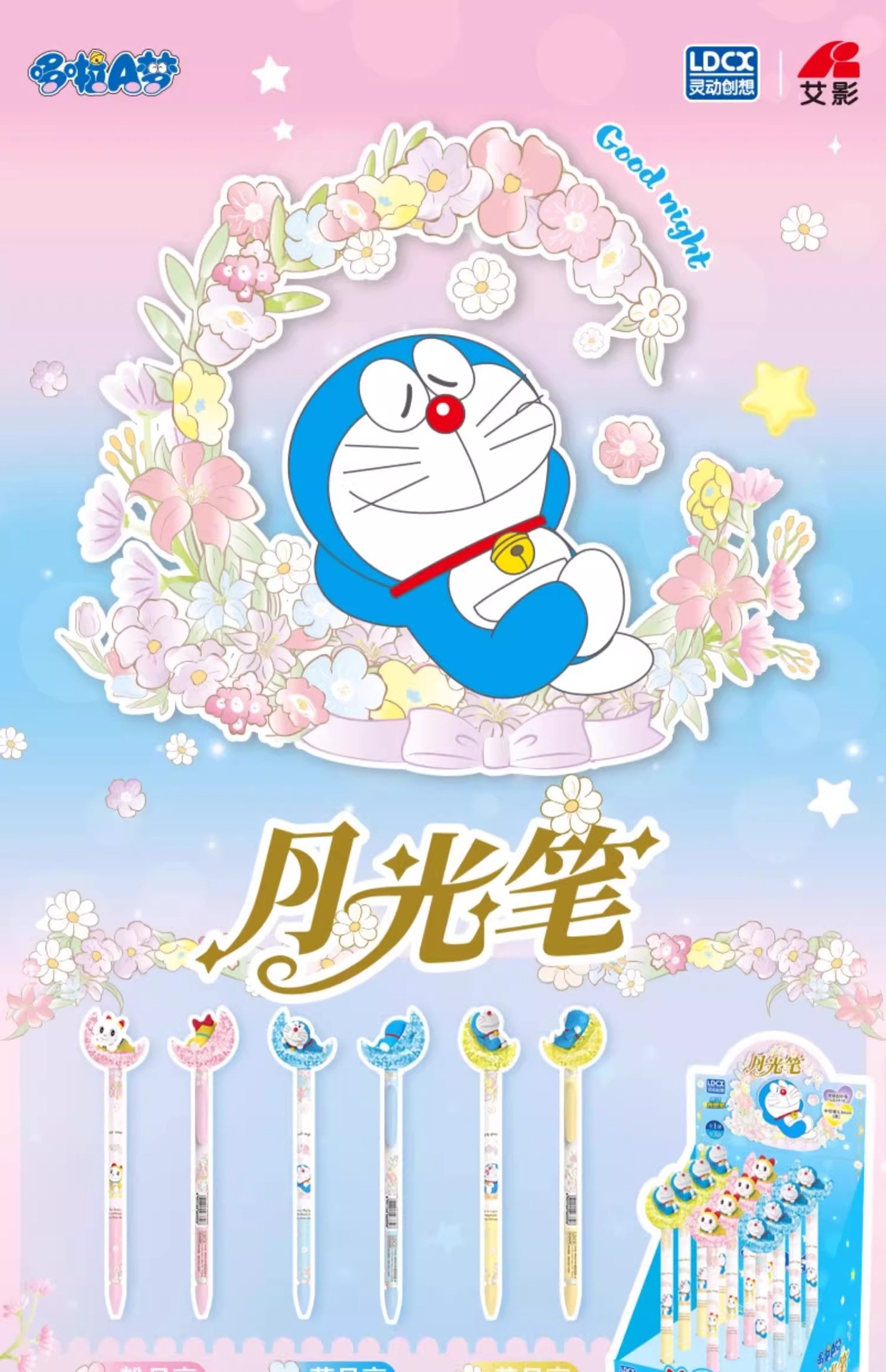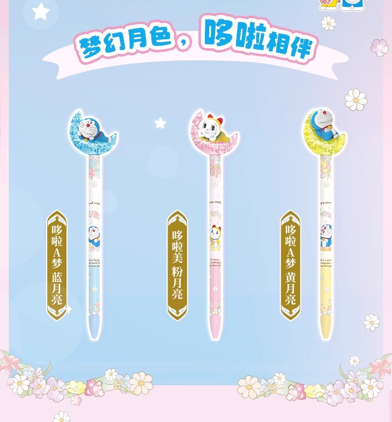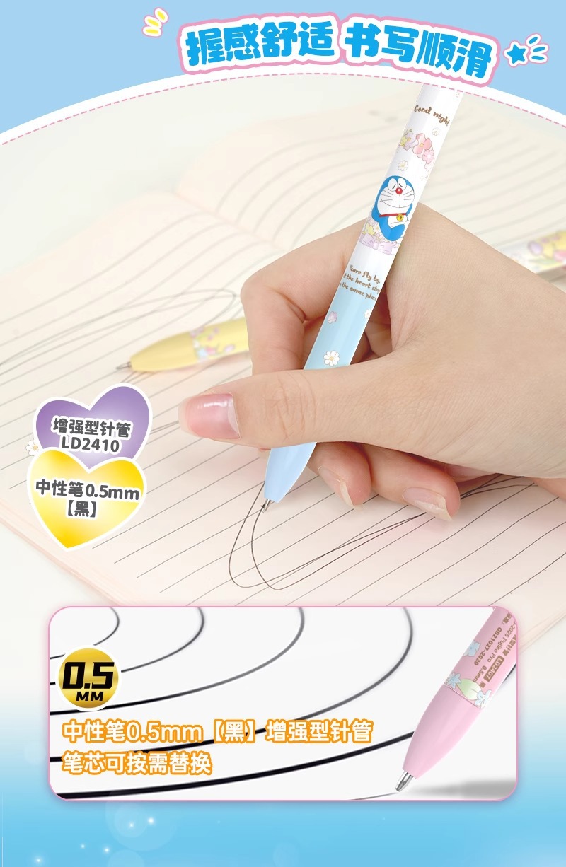 Doraemon Pena Moonlight Smart Creation Siswa Sekolah Dasar dan Menengah Tekan Pena Tanda Tangan Hitam 0.5mm Alat Tulis Pena Elegan