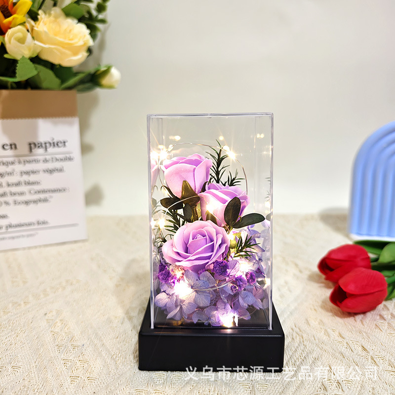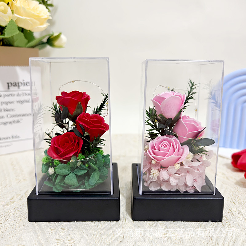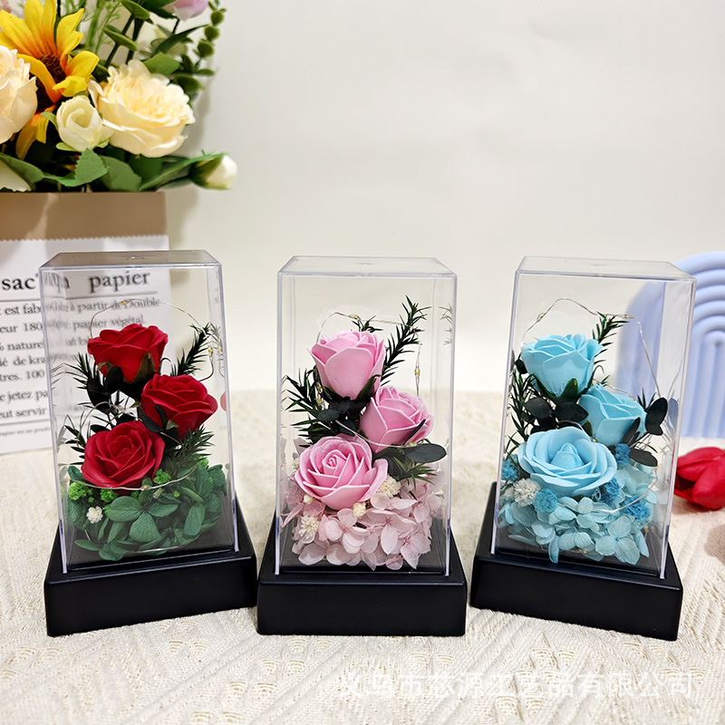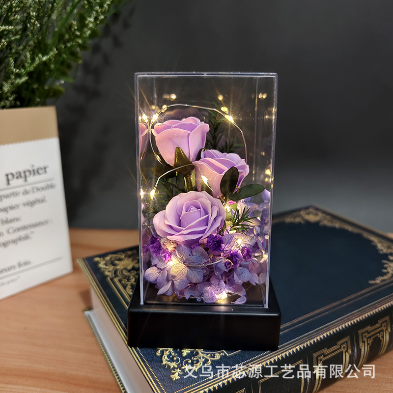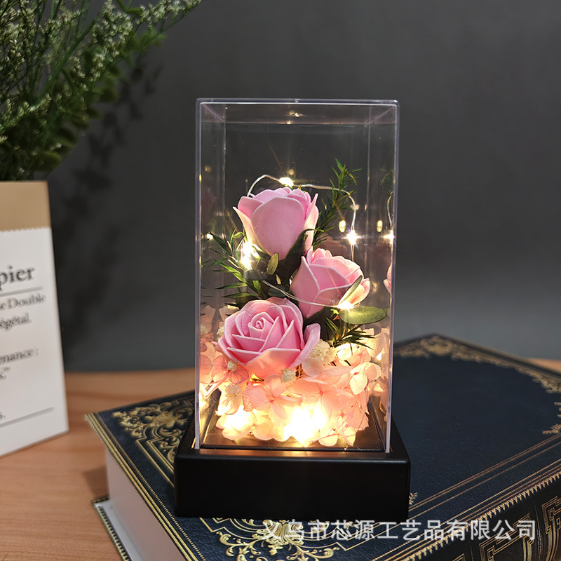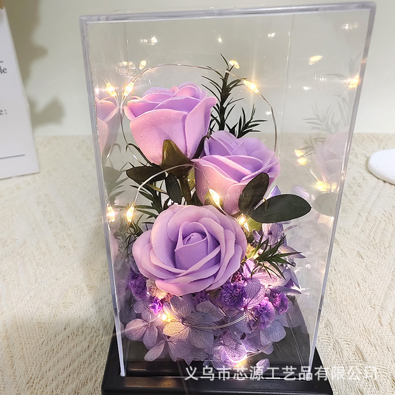 520 Bunga Abadi Sabun Bunga Kering Bunga Bunga Mawar Kap Lampu Akrilik Bunga Mawar Hadiah Hari Valentine Ibu Ornamen Jadi Ulang Tahun