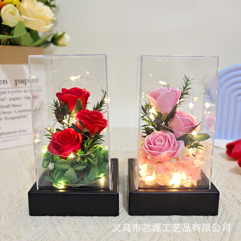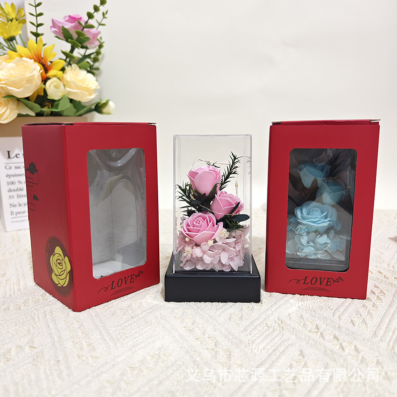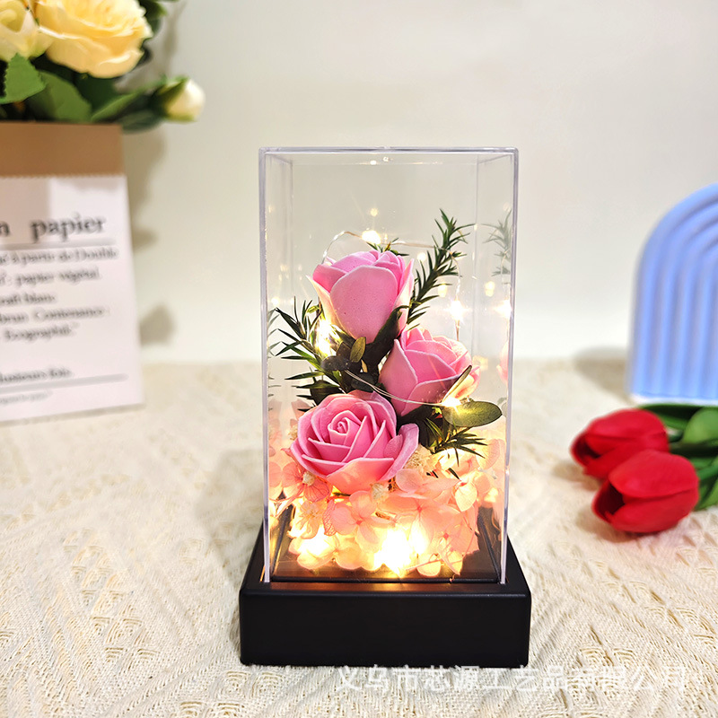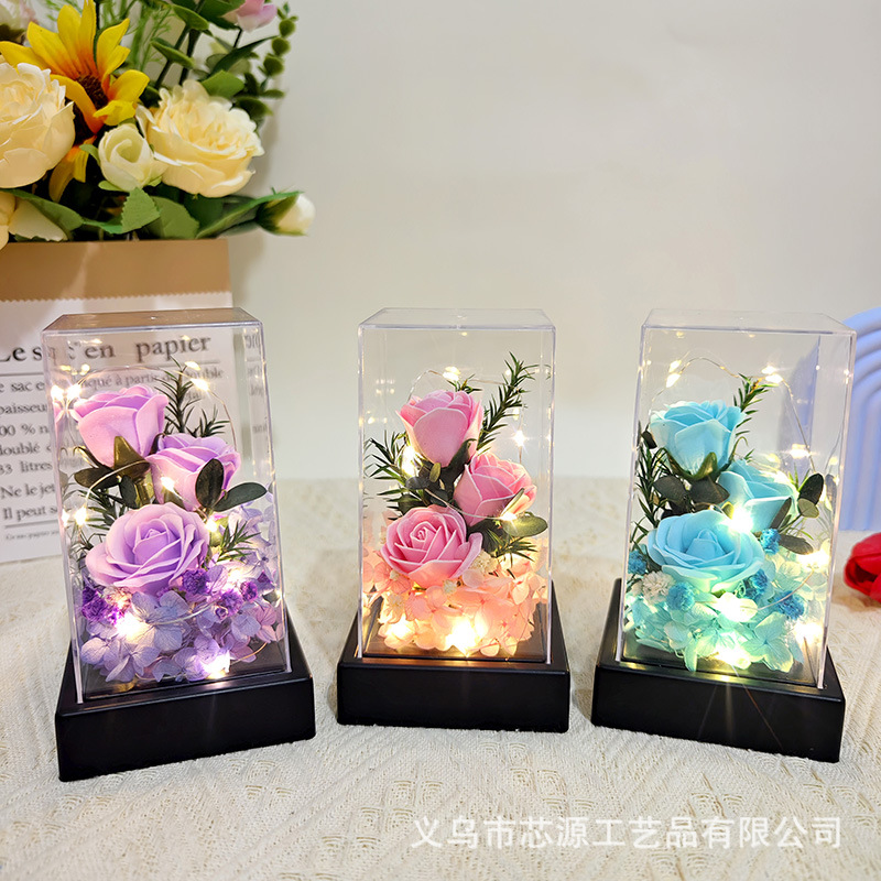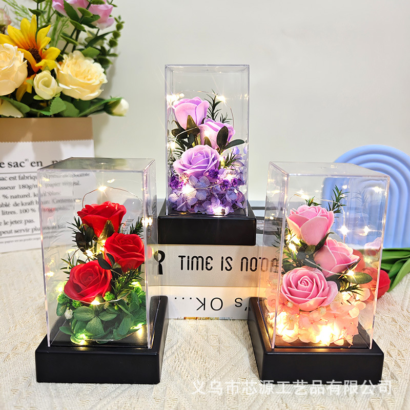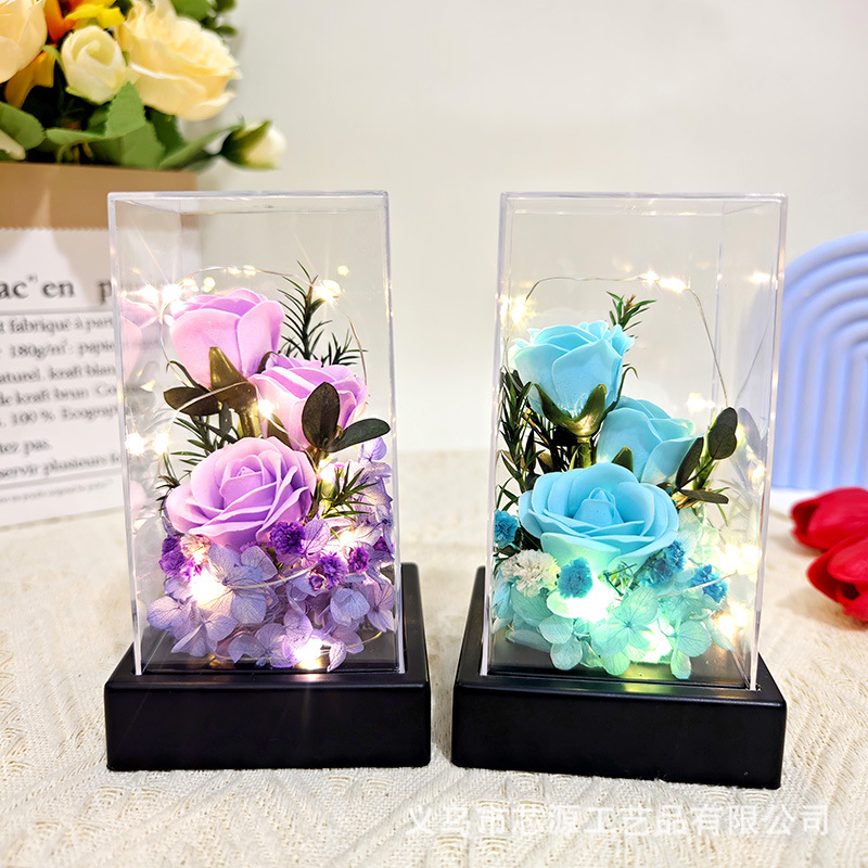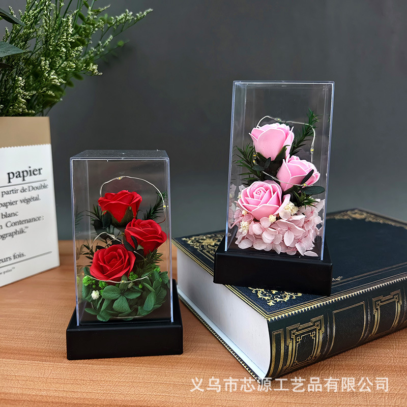 520 Bunga Abadi Sabun Bunga Kering Bunga Bunga Mawar Kap Lampu Akrilik Bunga Mawar Hadiah Hari Valentine Ibu Ornamen Jadi Ulang Tahun