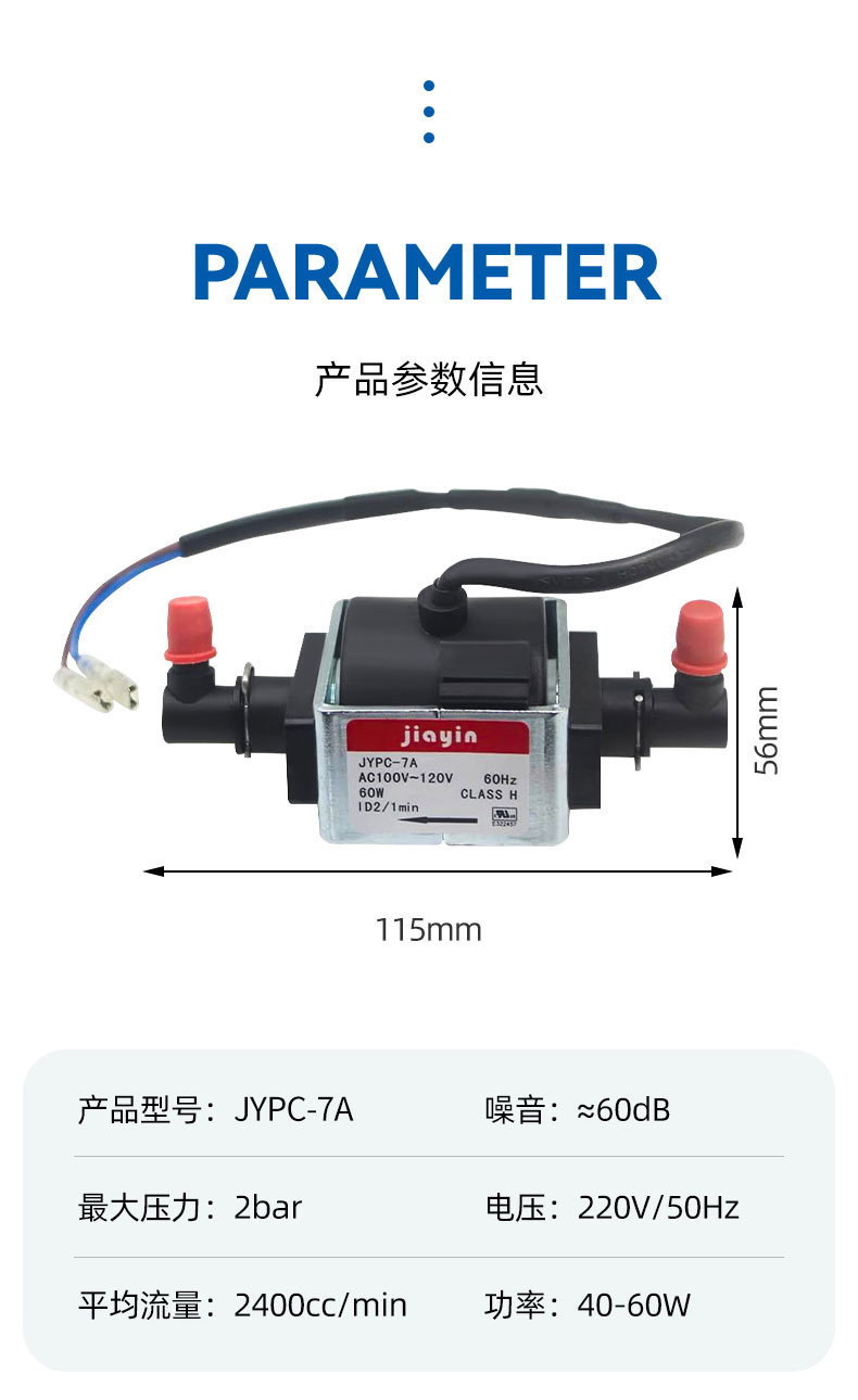 Pompa elektromagnetik Jiayin untuk membersihkan kopi, pompa air elektromagnetik cocok untuk alat pengukus pakaian suhu tinggi Midea, aksesori setrika listrik pompa elektromagnetik