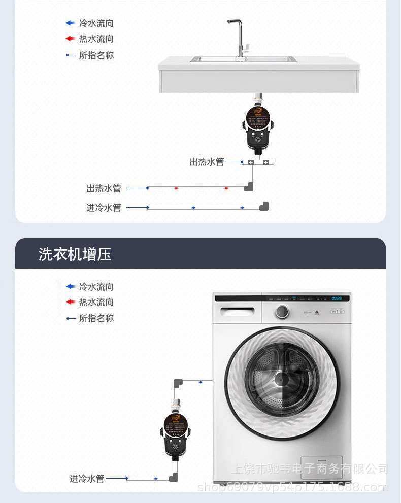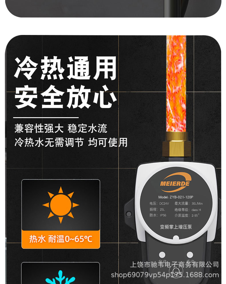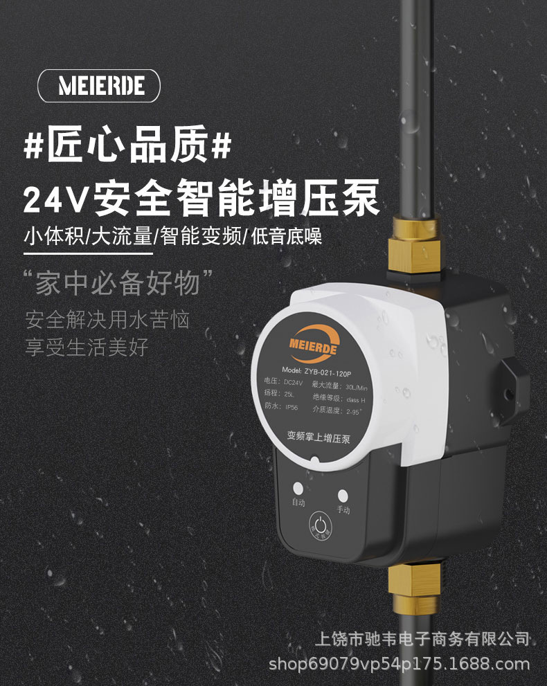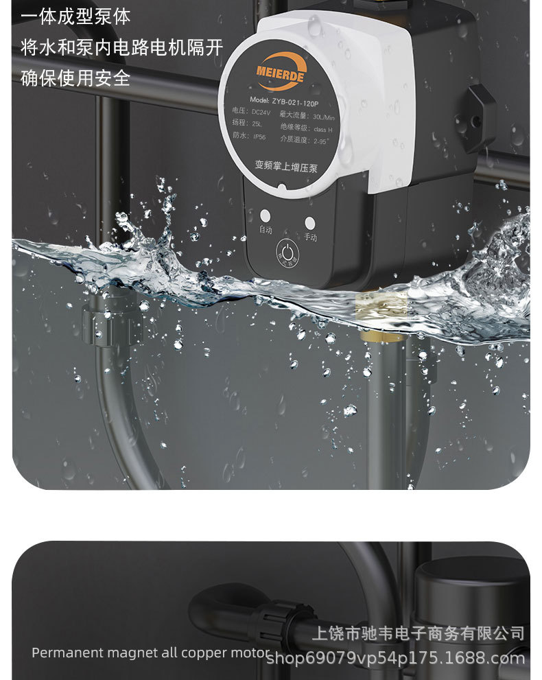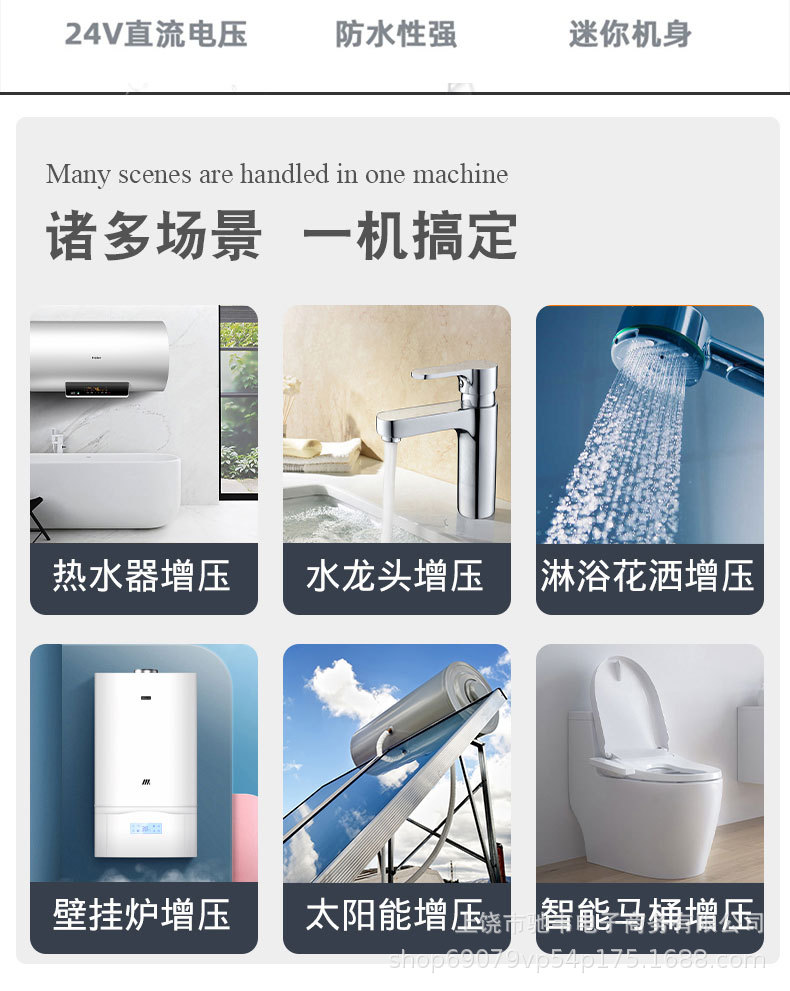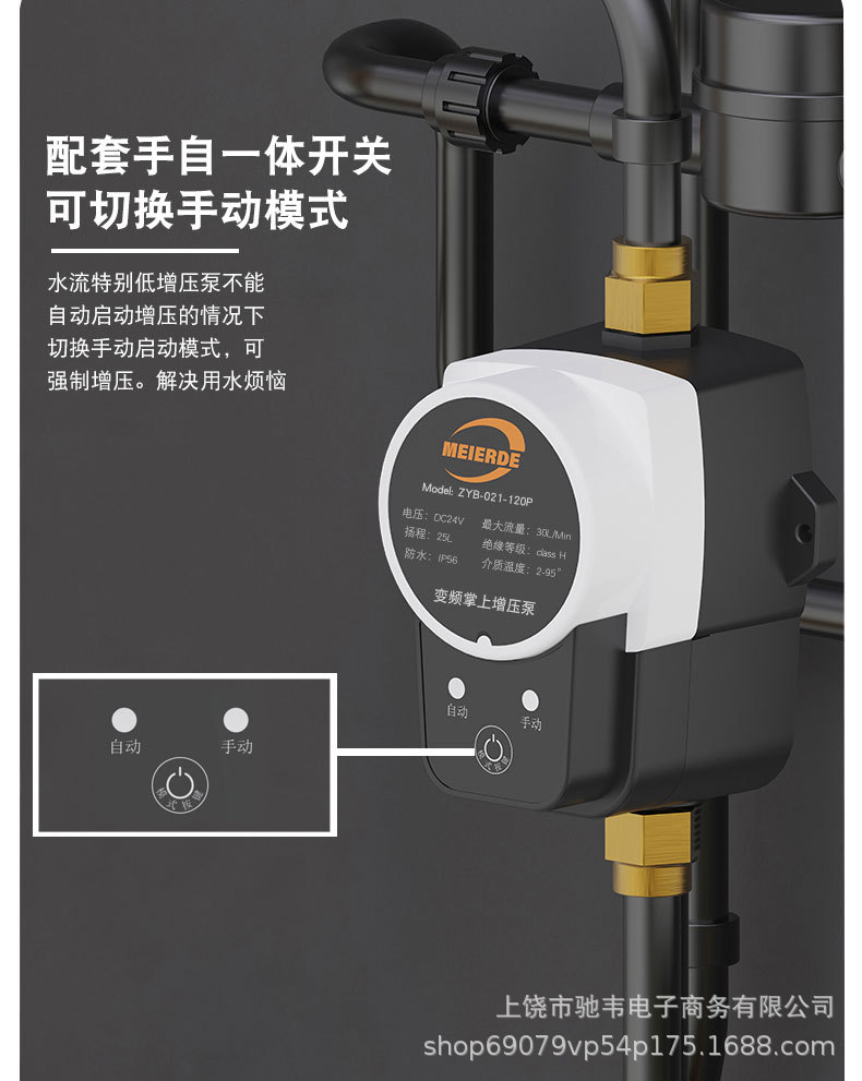 Pompa Booster Cerdas Otomatis Sepenuhnya 24V Pompa Air Kecil Rumah Tangga Pemanas Air Tenaga Surya Shower Booster Cross