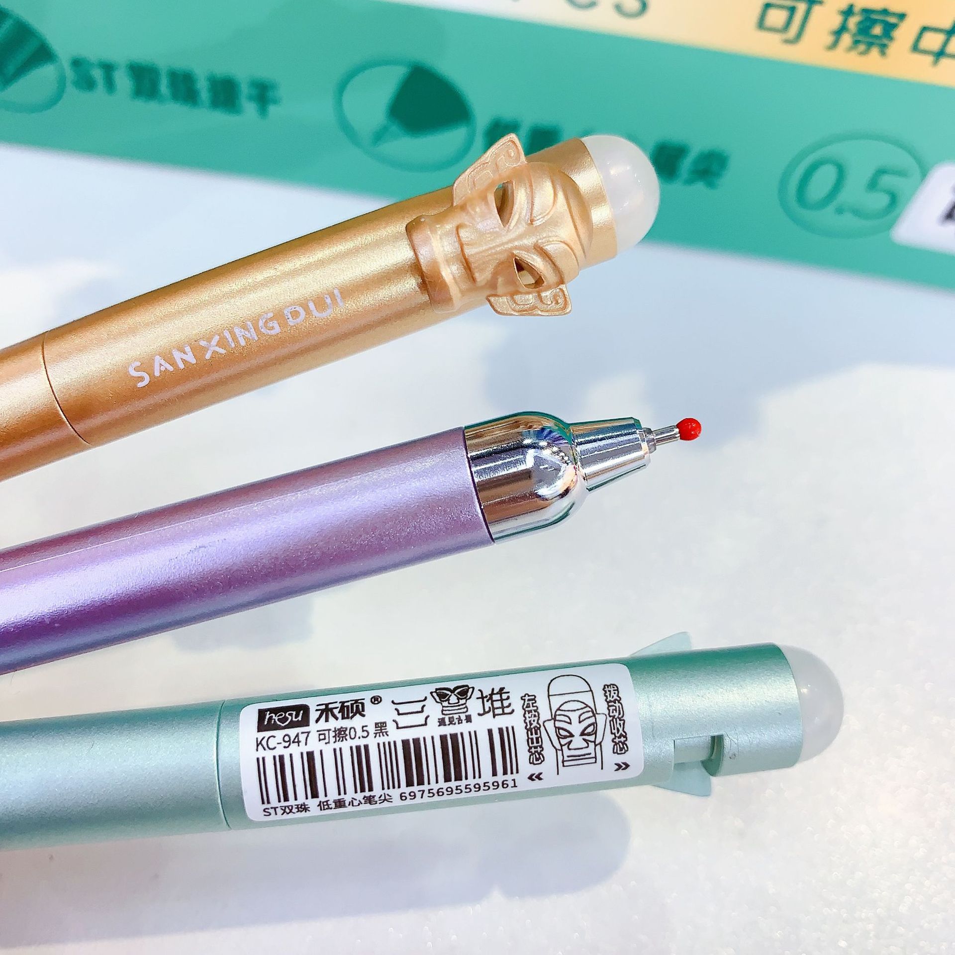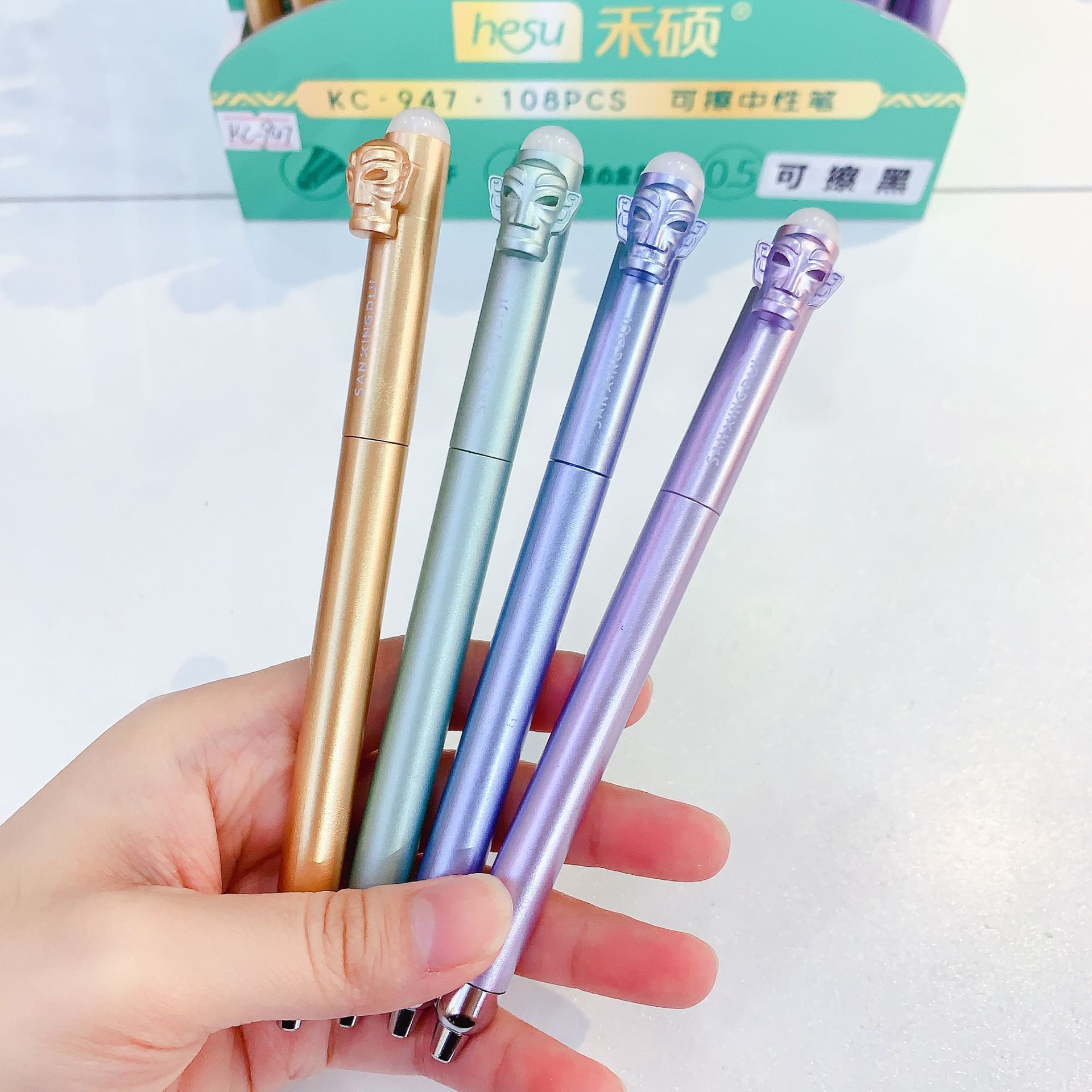 文创新款经典复古三星堆系列可擦笔黑色中性可擦笔书写流畅不卡墨