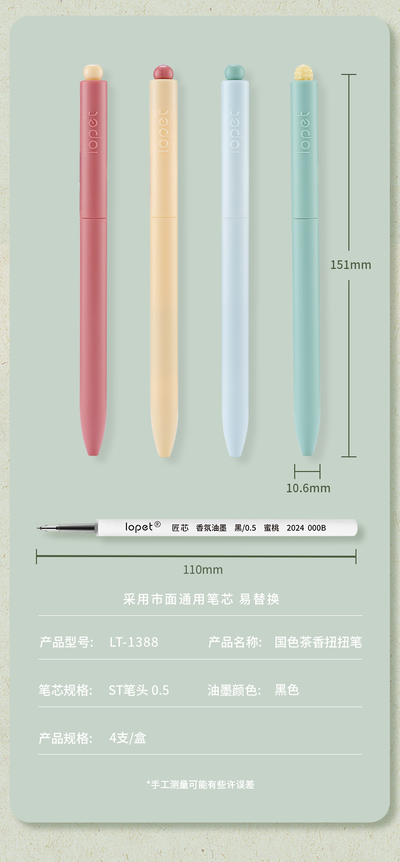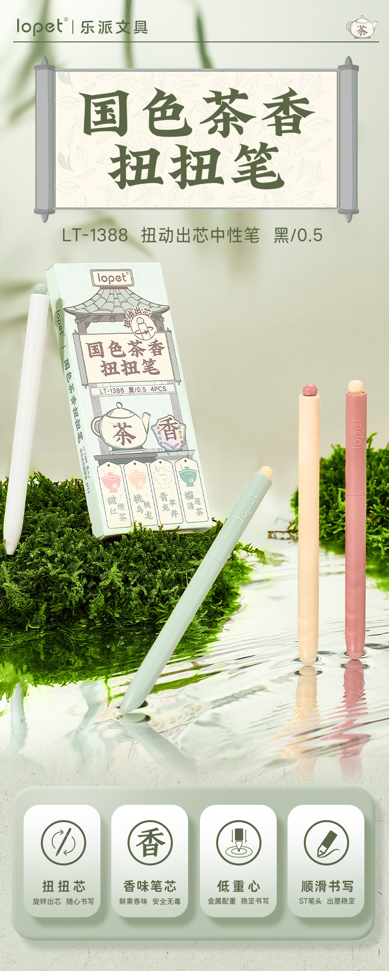 乐派国色茶香高颜值扭扭笔创意香薰中性笔低重心速干刷题签字笔黑
