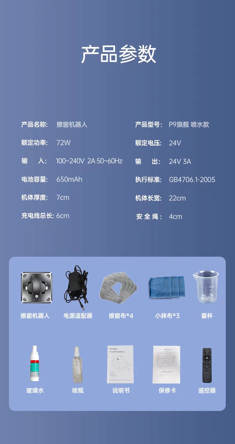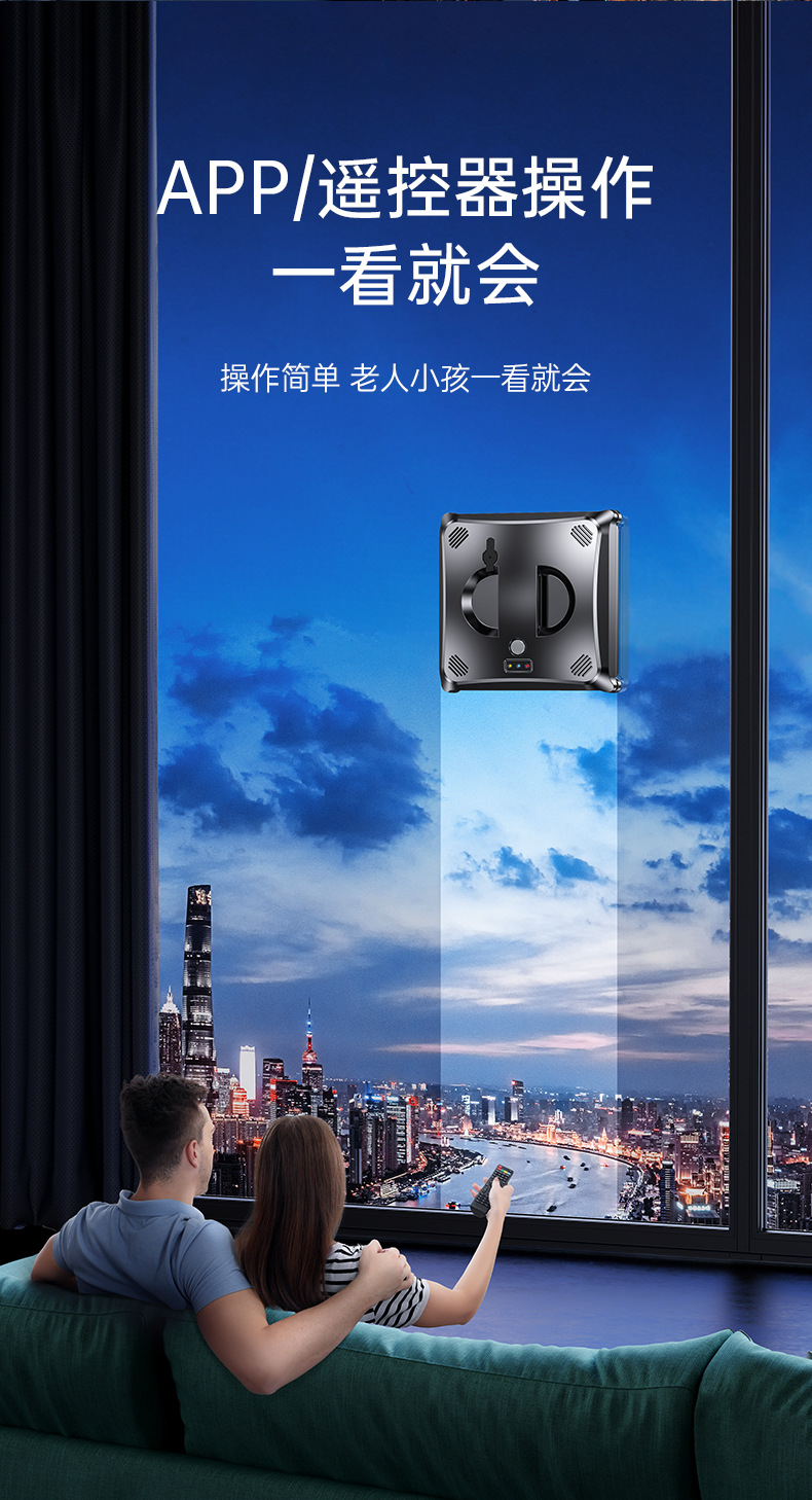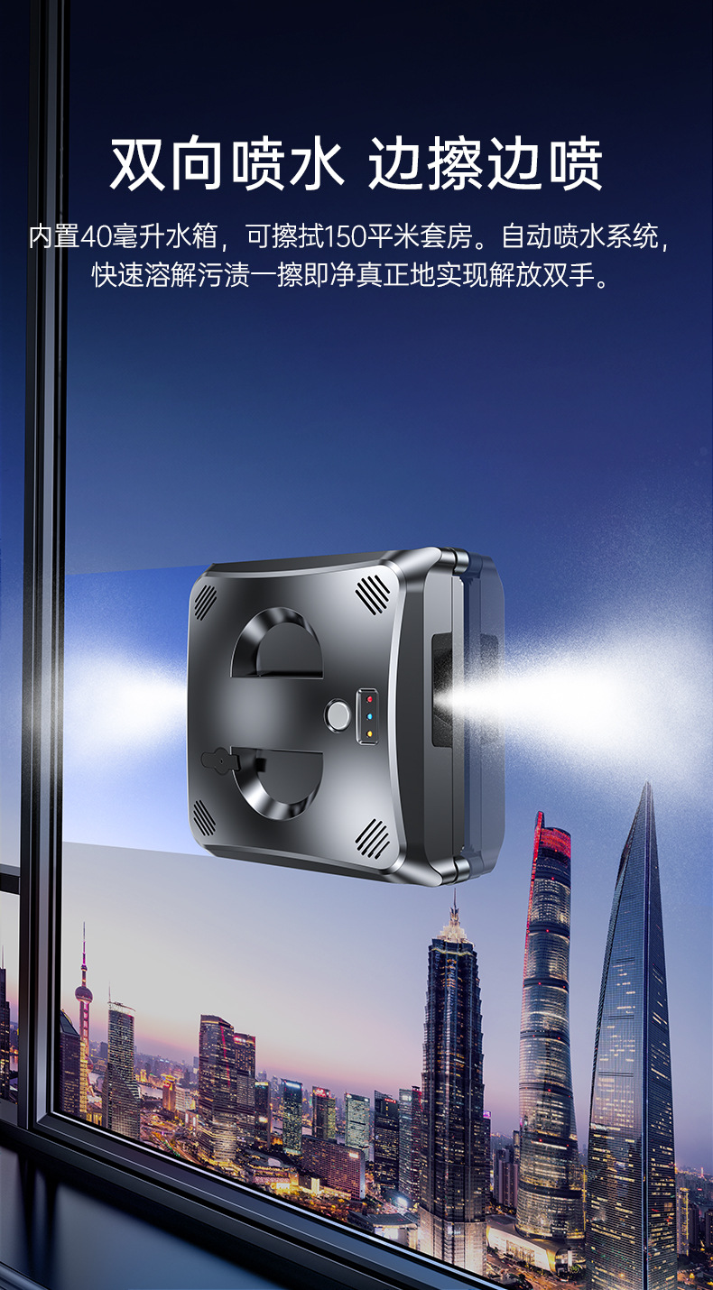 Pabrik sumber robot pembersih jendela semprotan air ganda otomatis ultra-tipis yang cerdas remote control siaran suara aplikasi ponsel