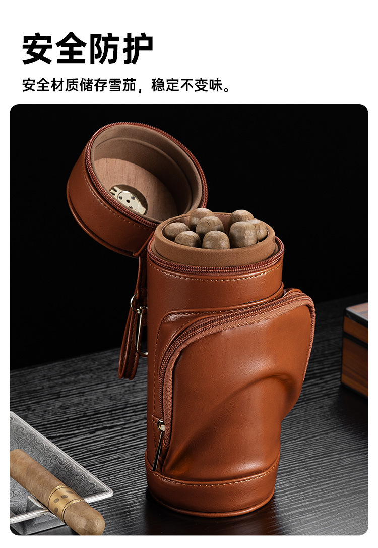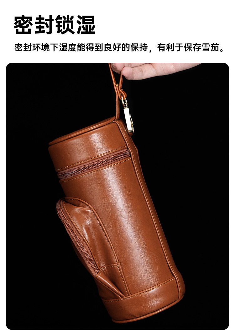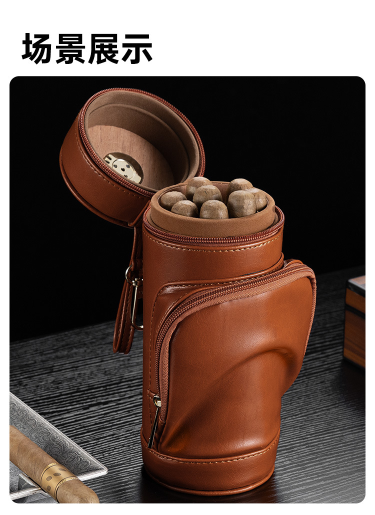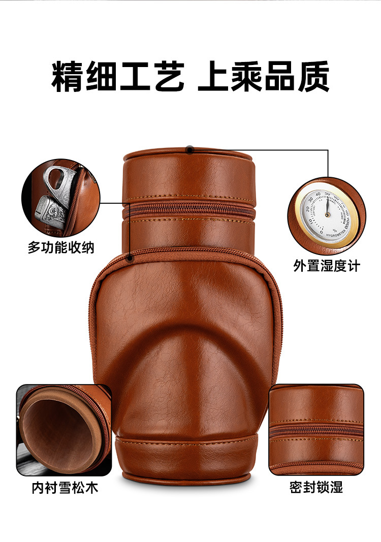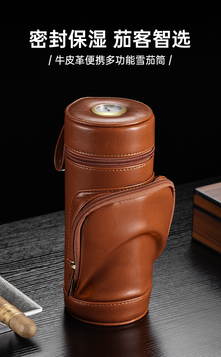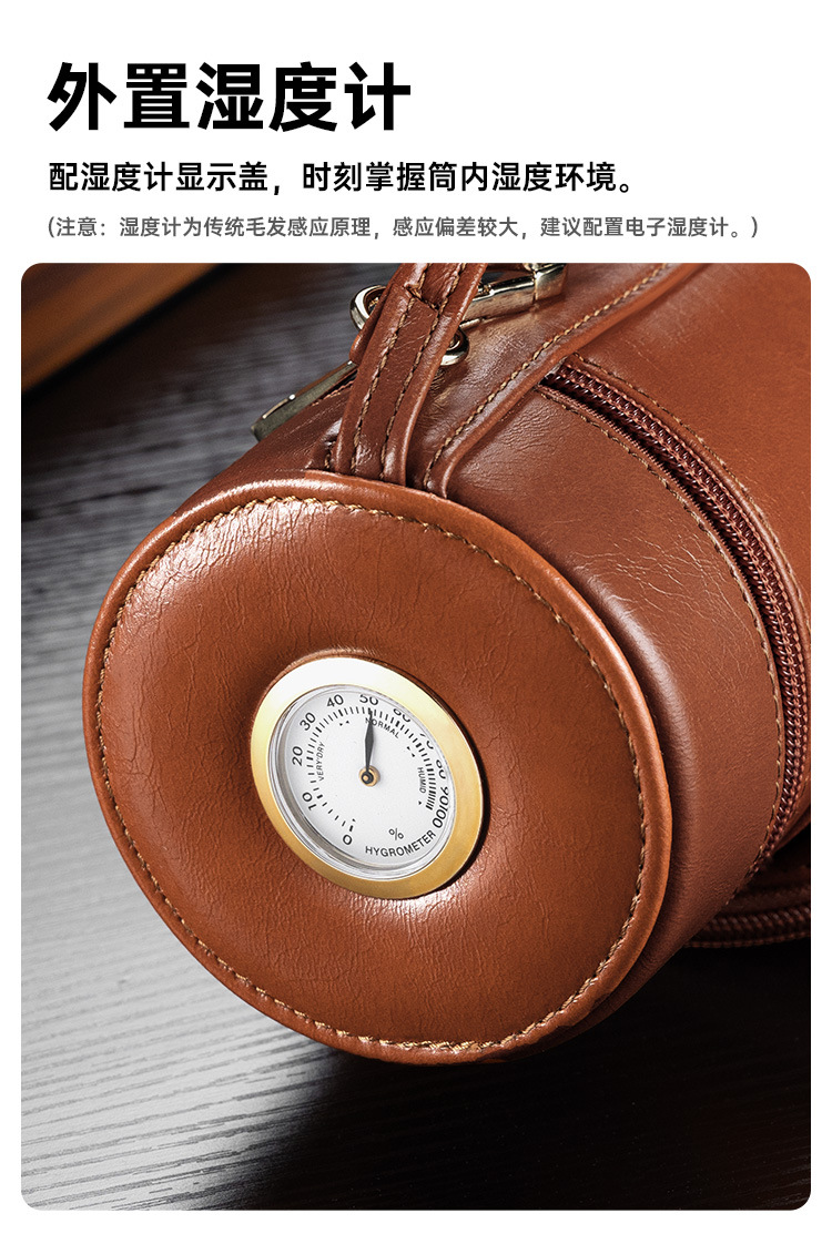 Solanon Tabung Cerutu Portabel Multifungsi Penyimpanan Kulit Kayu Cedar Kunci Segel Basah Pengukur Kelembaban Presisi Luar