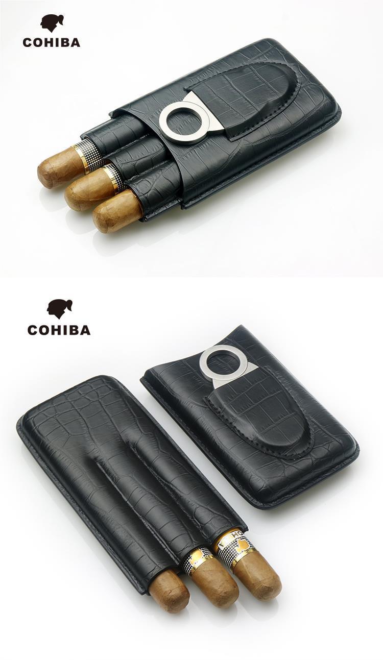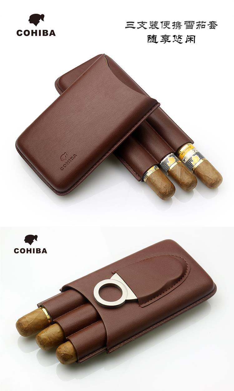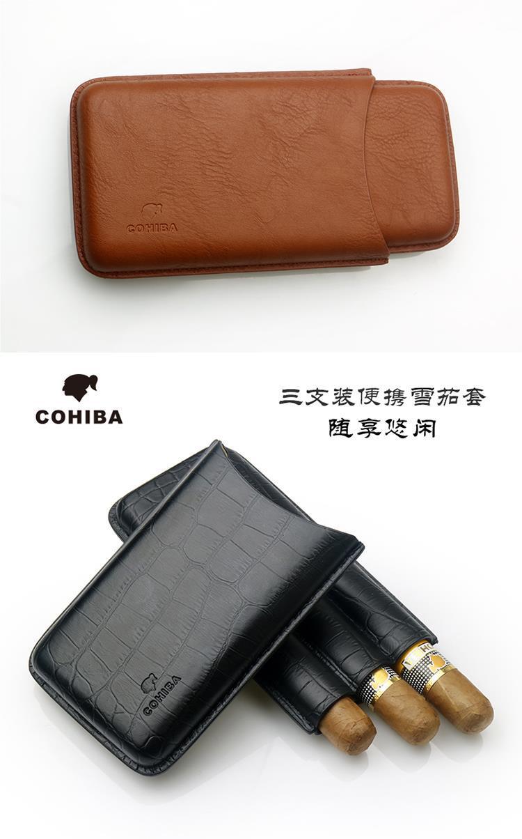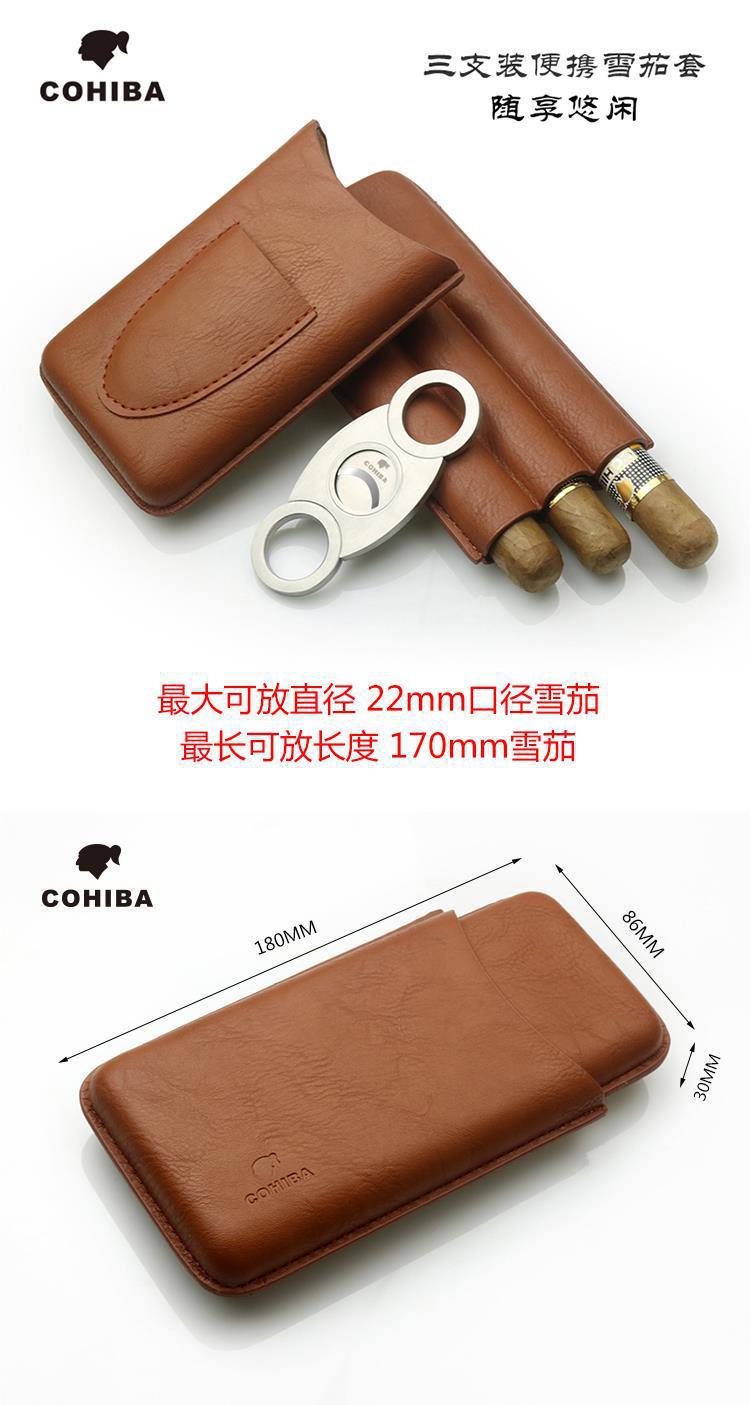古巴雪茄皮套雪茄盒雪茄保湿盒3支装雪茄套便携式旅行雪茄盒绢花
