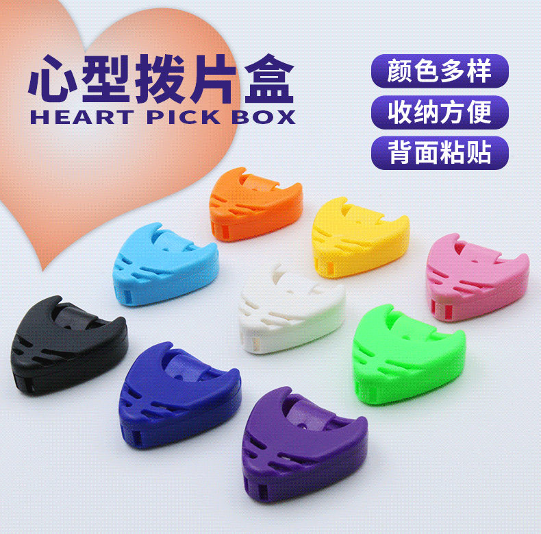 吉他乐器拔片盒吉他彩色拨片夹爱心型拔片夹可粘贴拔片夹拔片盒子
