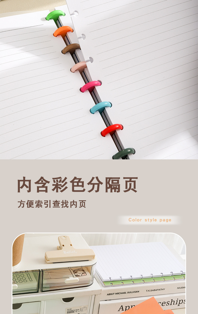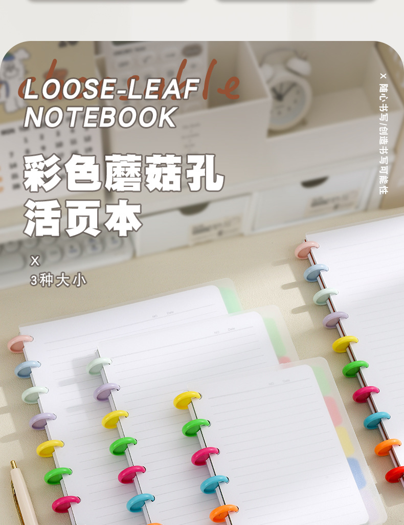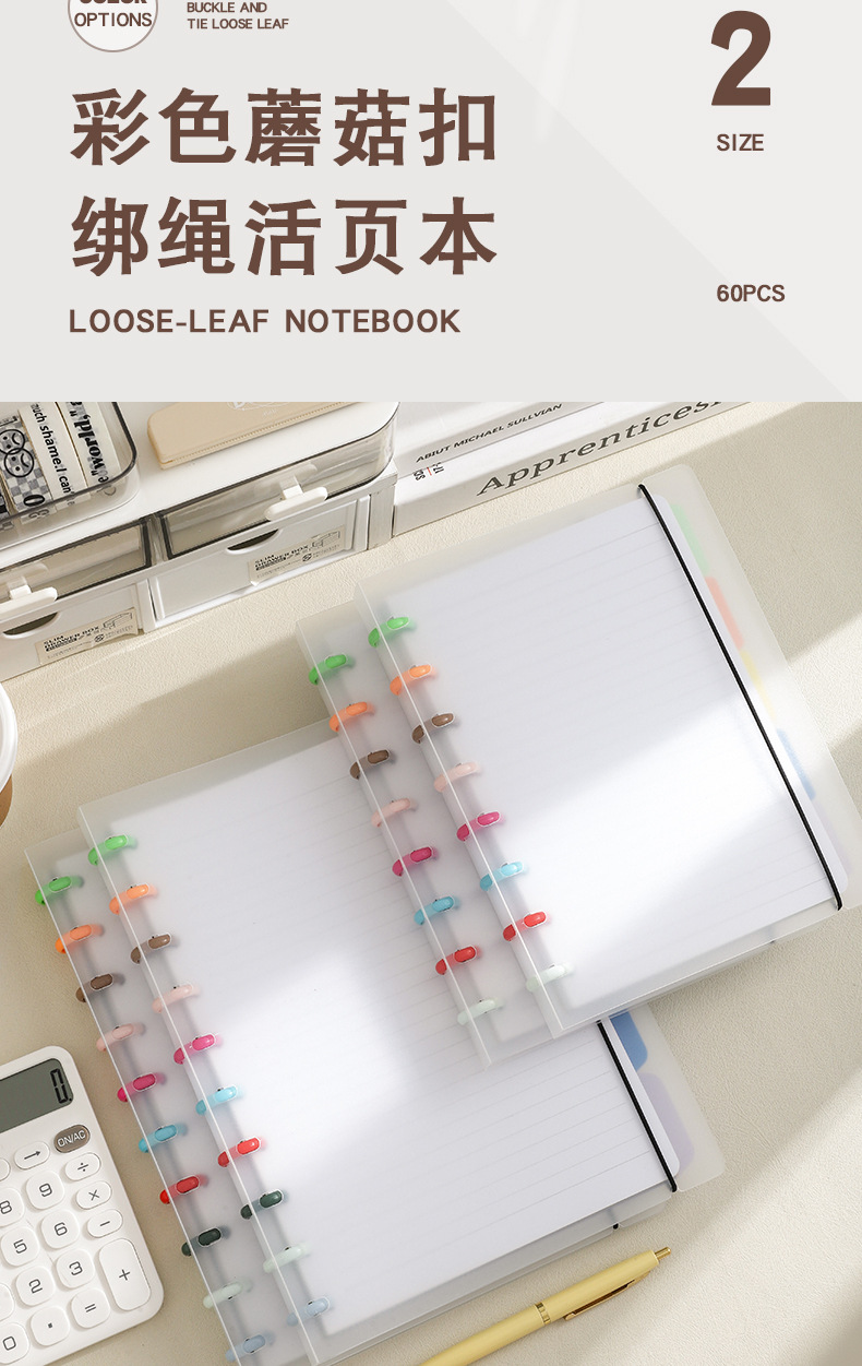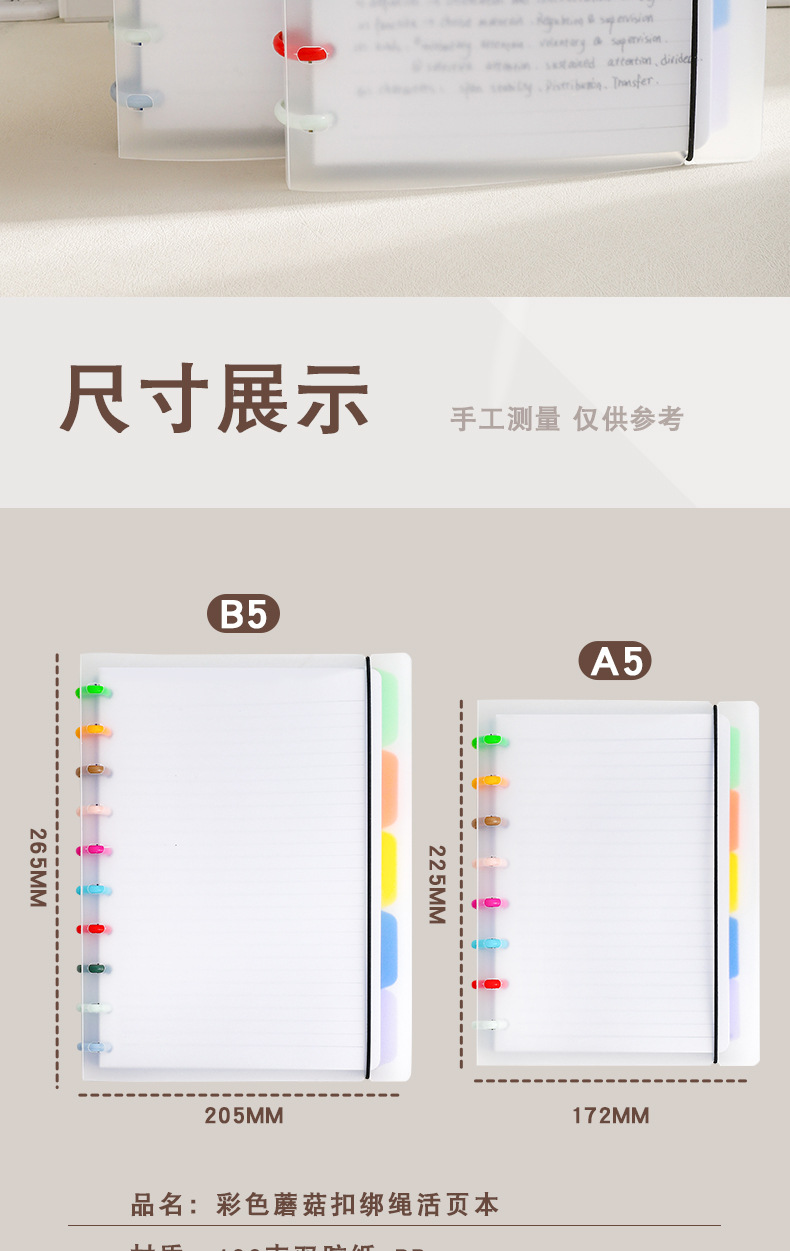 彩色蘑菇扣A5活页本简约笔记本可拆卸创意绑绳记事本分隔页B5替芯