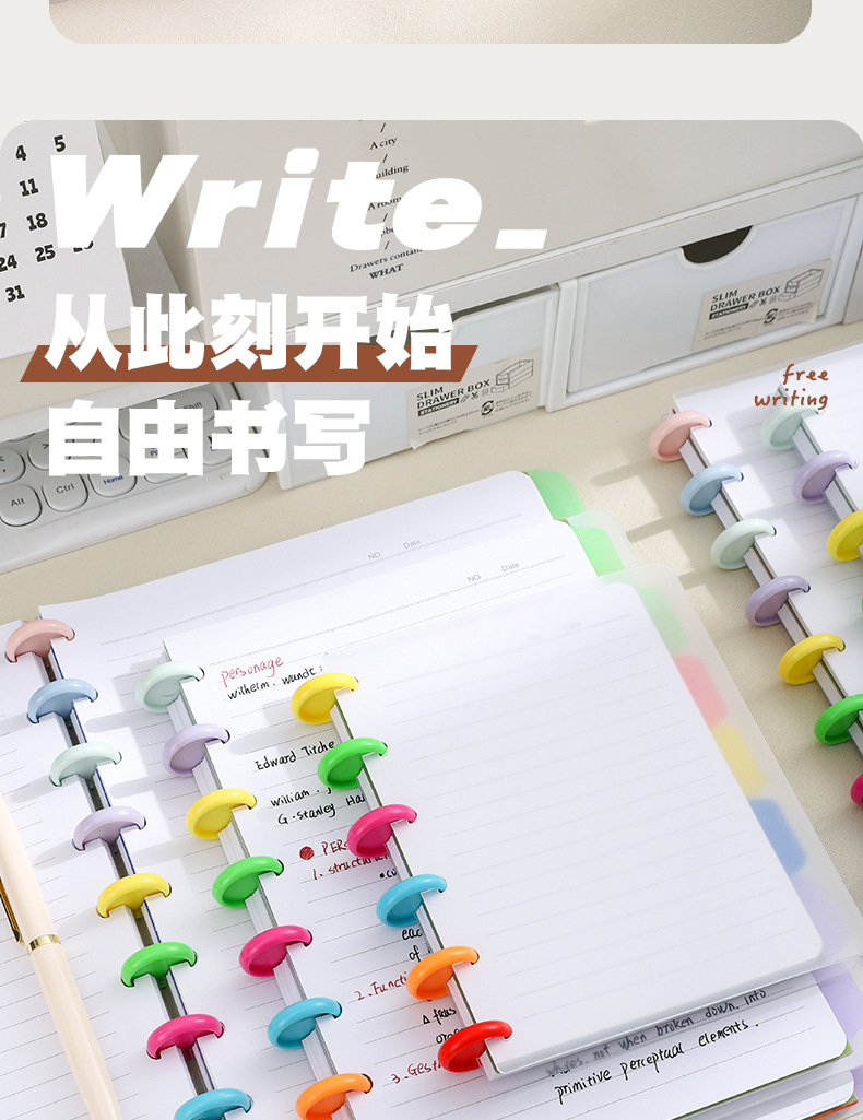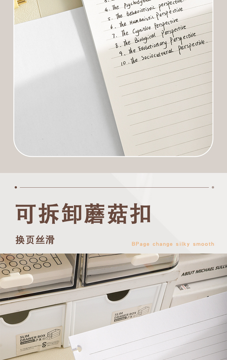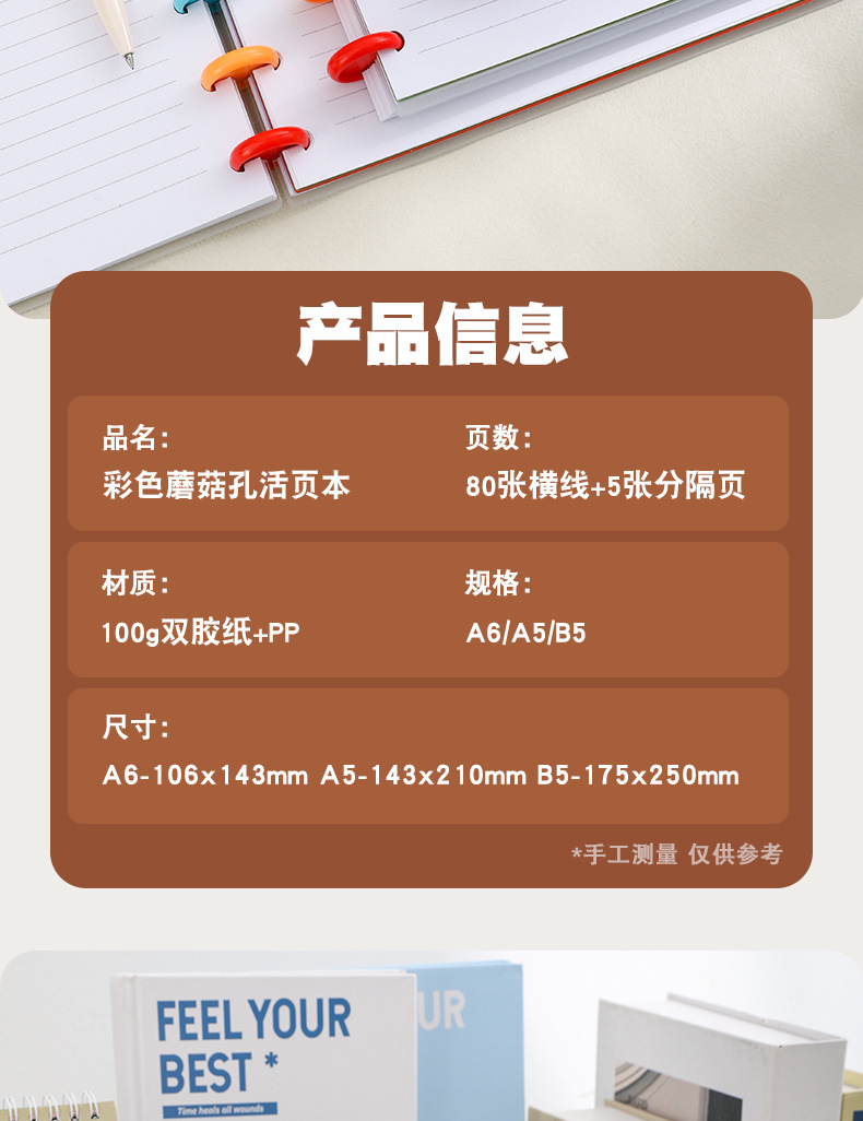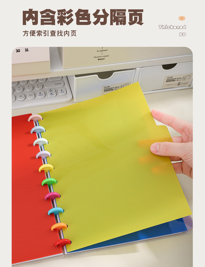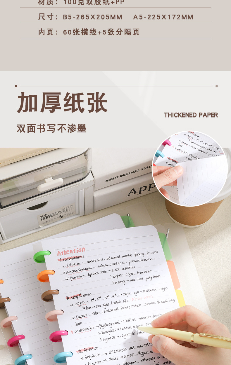 彩色蘑菇扣A5活页本简约笔记本可拆卸创意绑绳记事本分隔页B5替芯