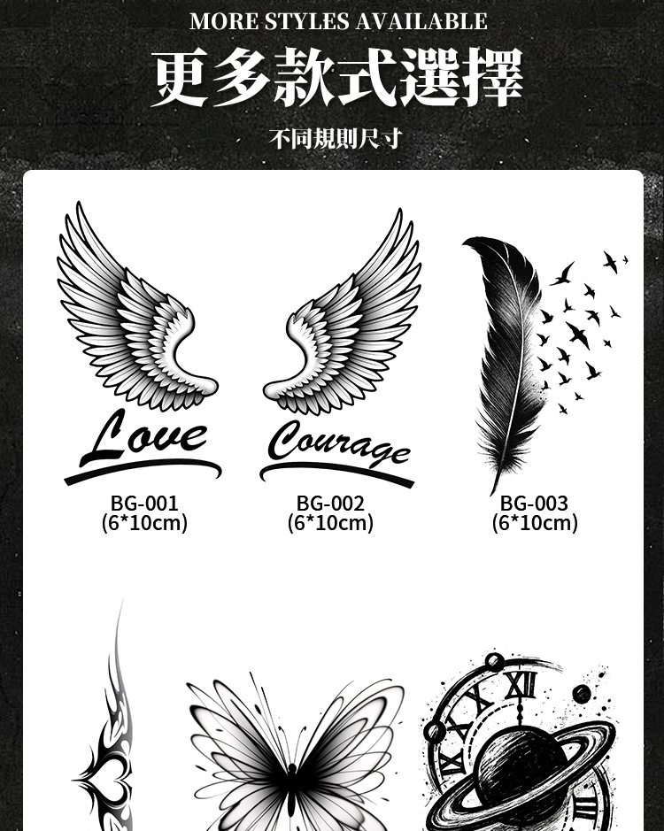 跨境草本纹身贴翅膀蝴蝶设计手臂手腕个性潮流贴纸源头批发自然显