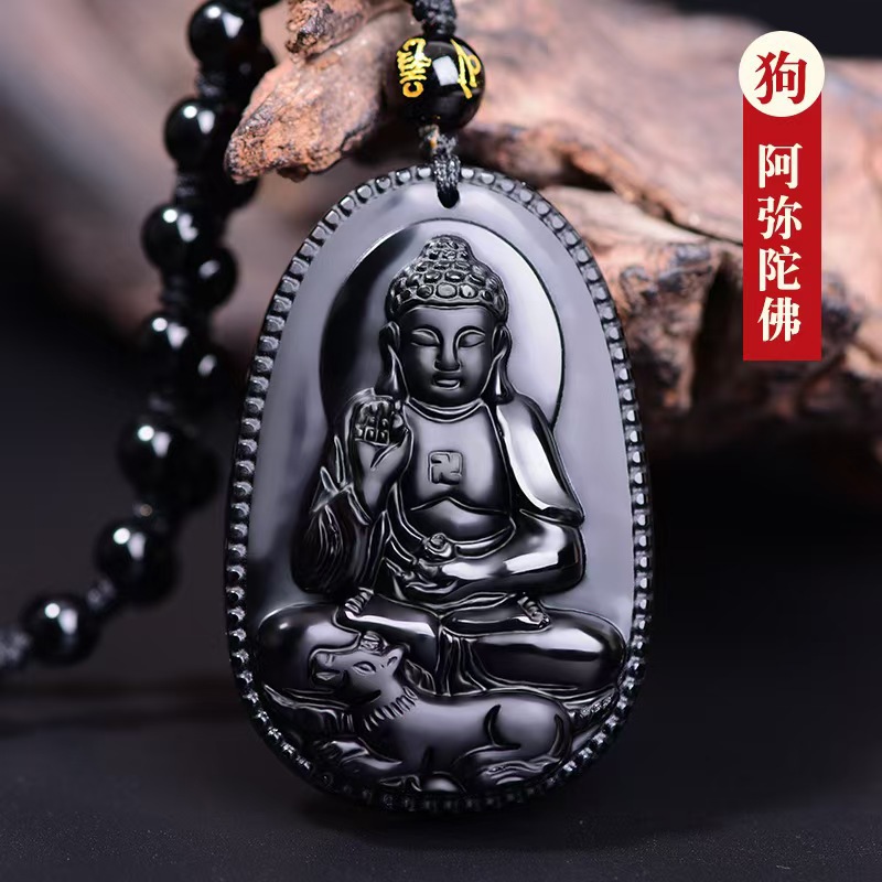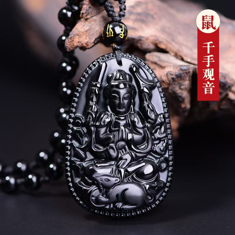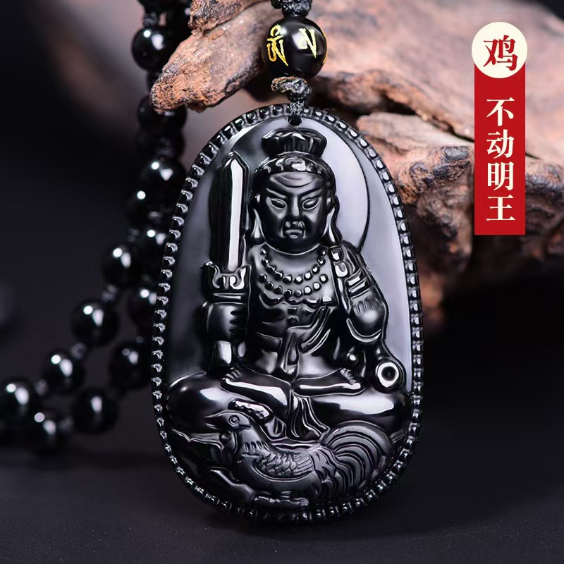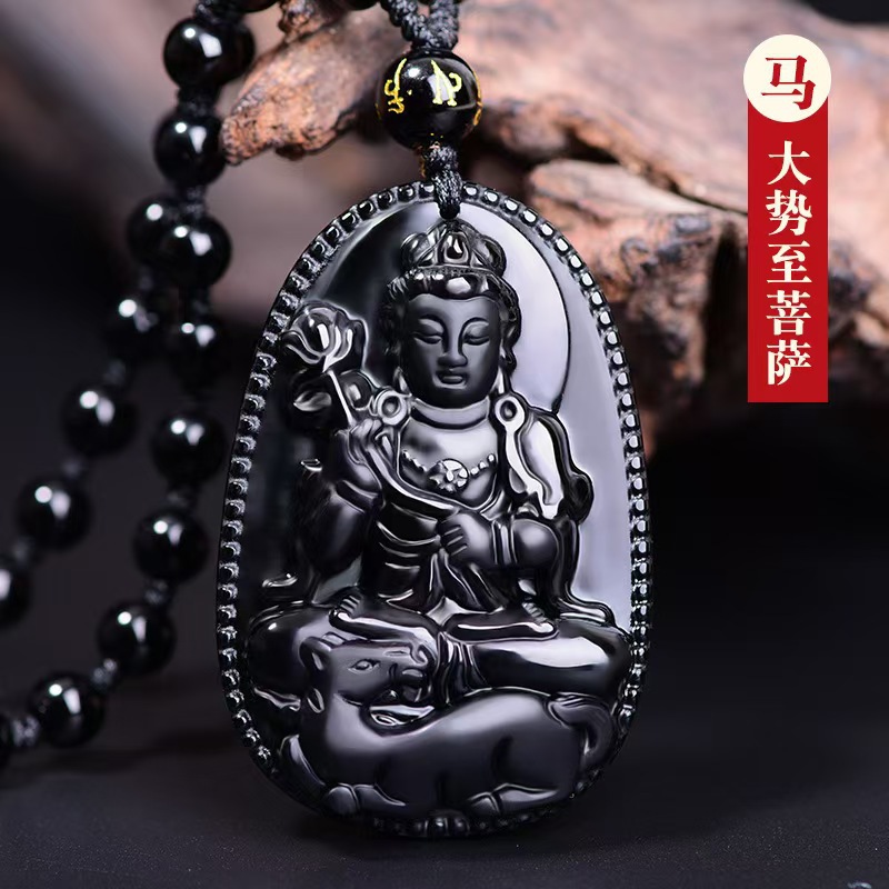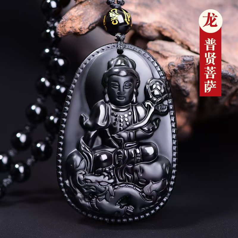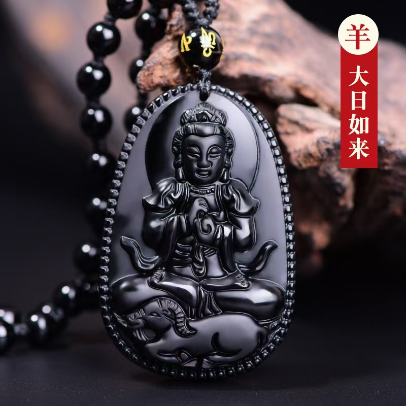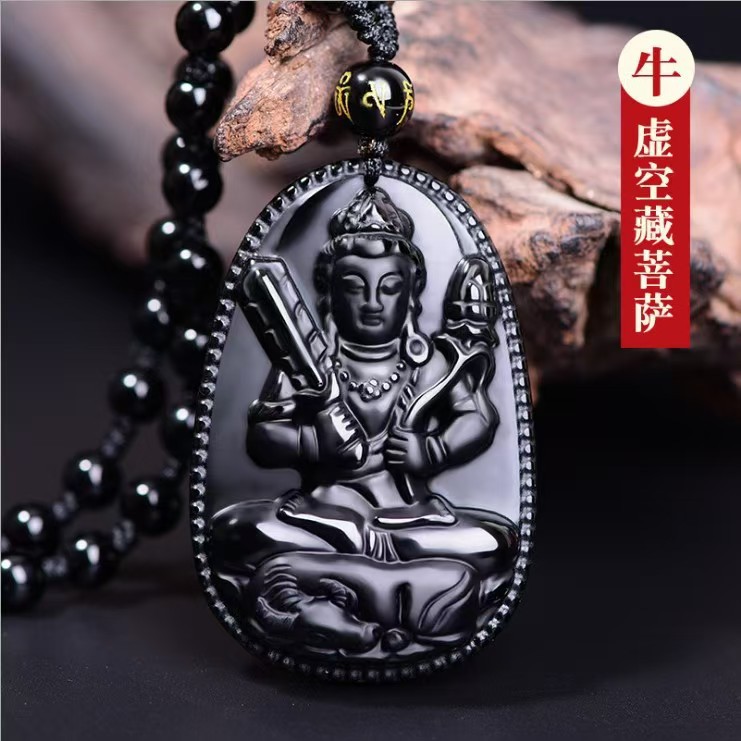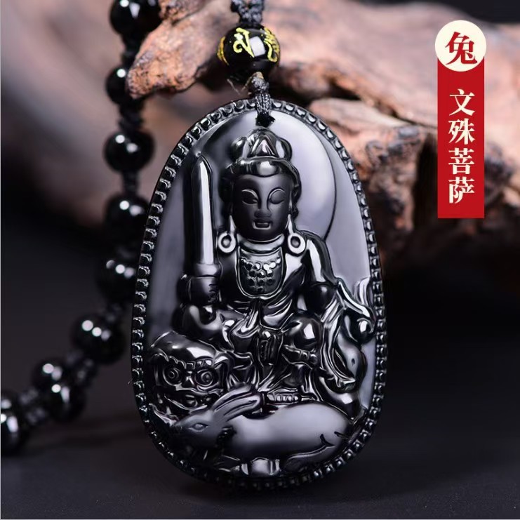 黑曜石本命佛吊坠十二生肖虚空藏普贤文殊菩萨本命年观音项链男女