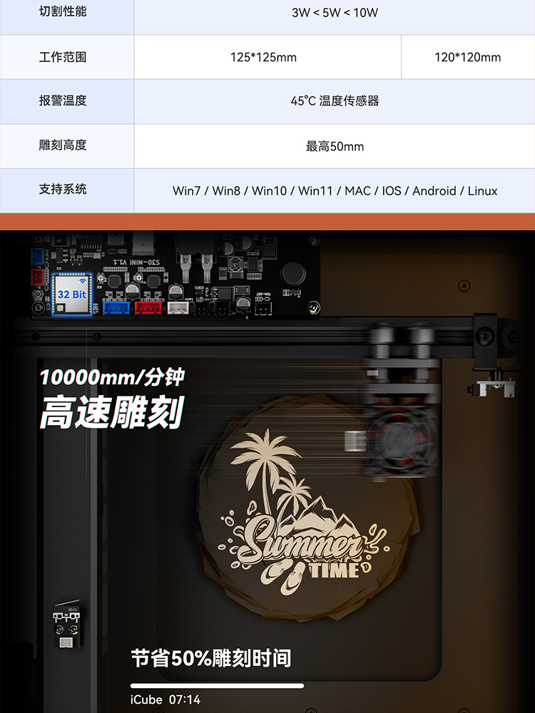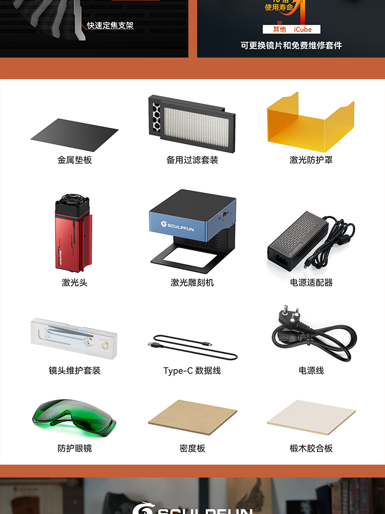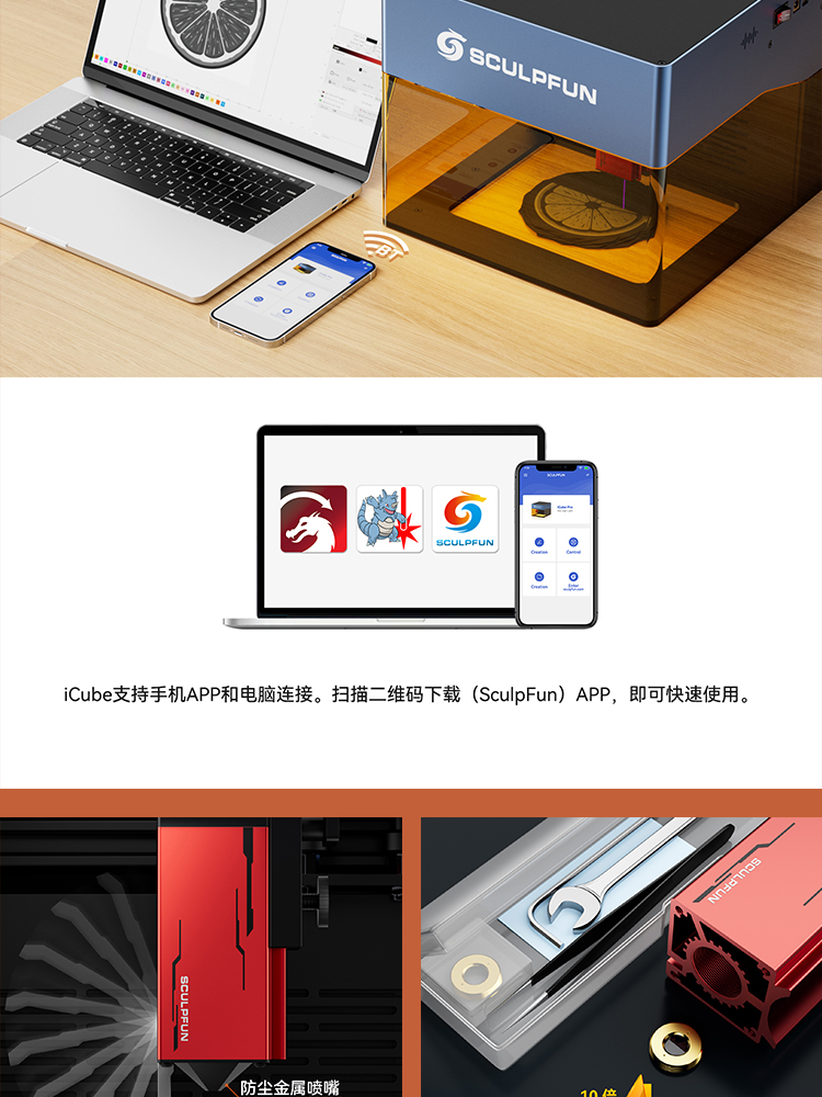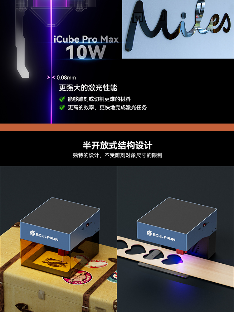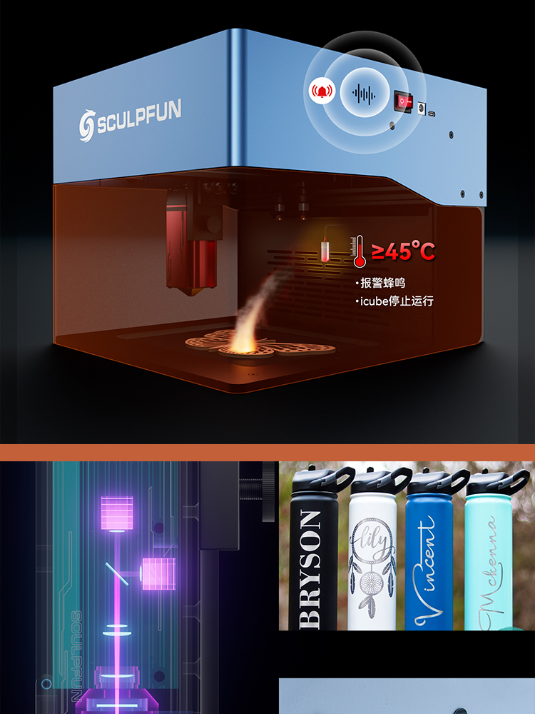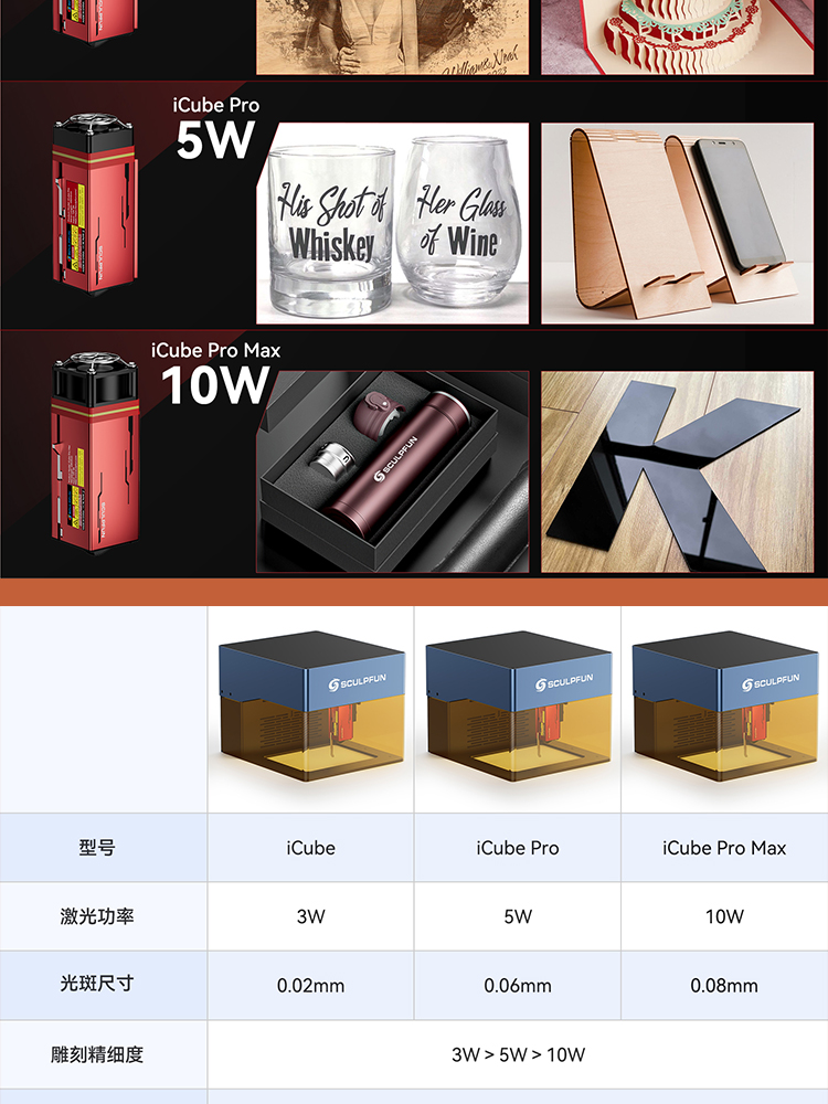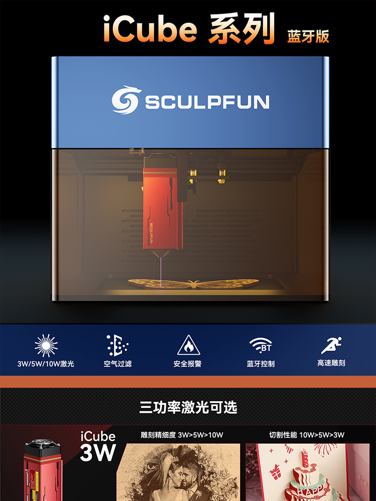 XDSCULPFUN iCube Laser Mengukir Mesin Desktop Portabel Kayu Blok Kulit Karton Logo Kayu Potong