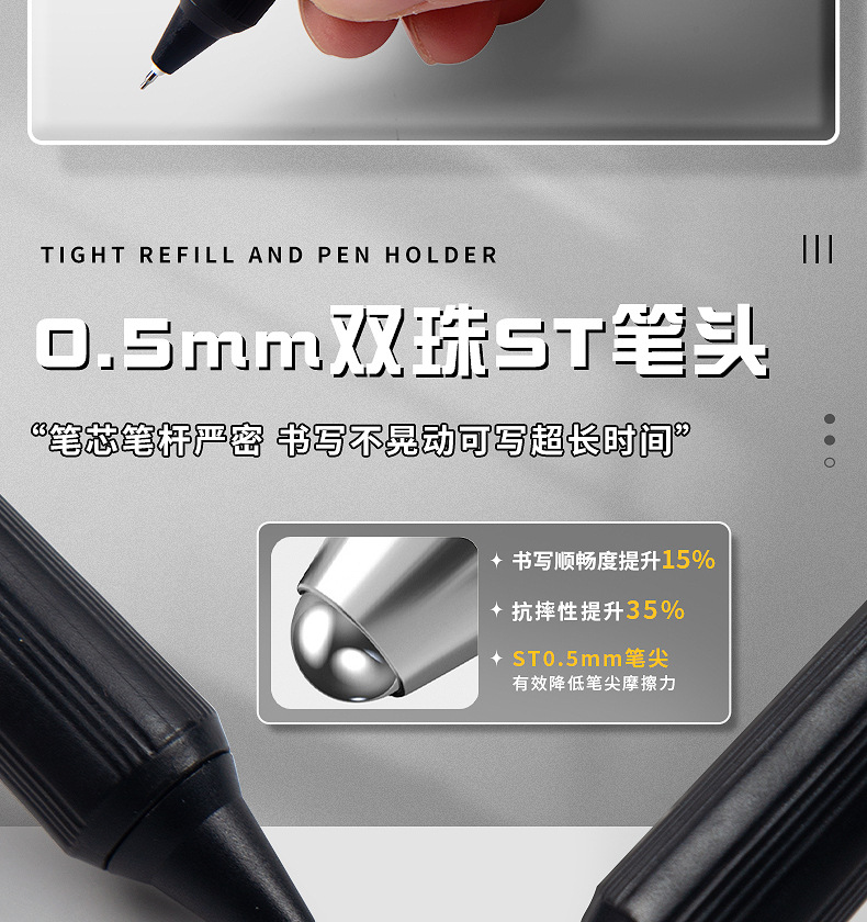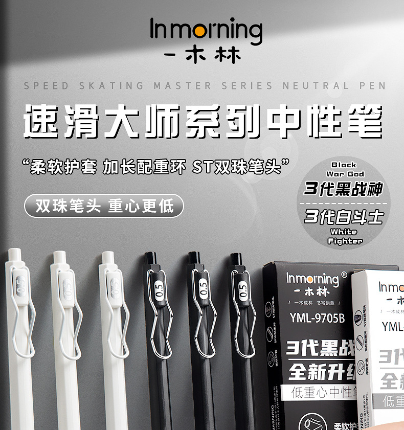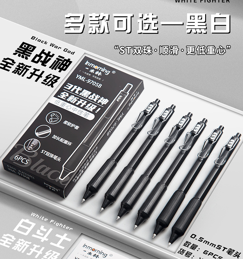 一木林黑战神低重心速干st笔头按动中性笔高颜值学生考试用刷题笔