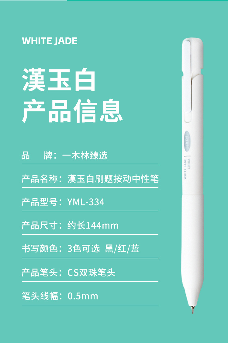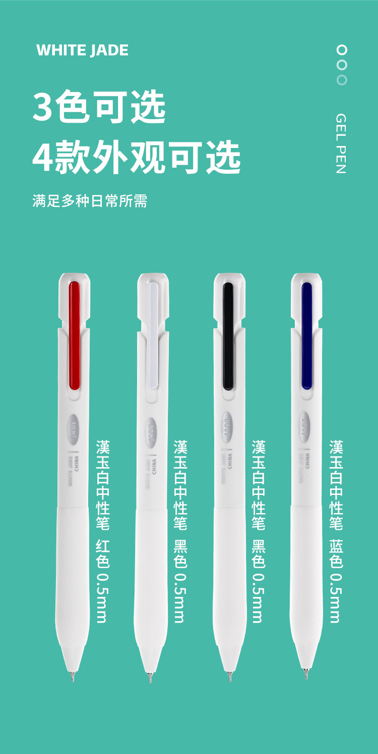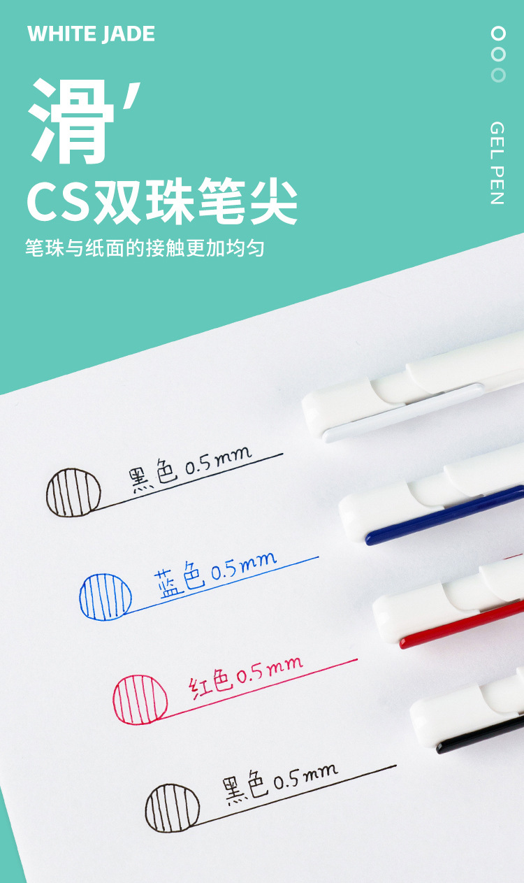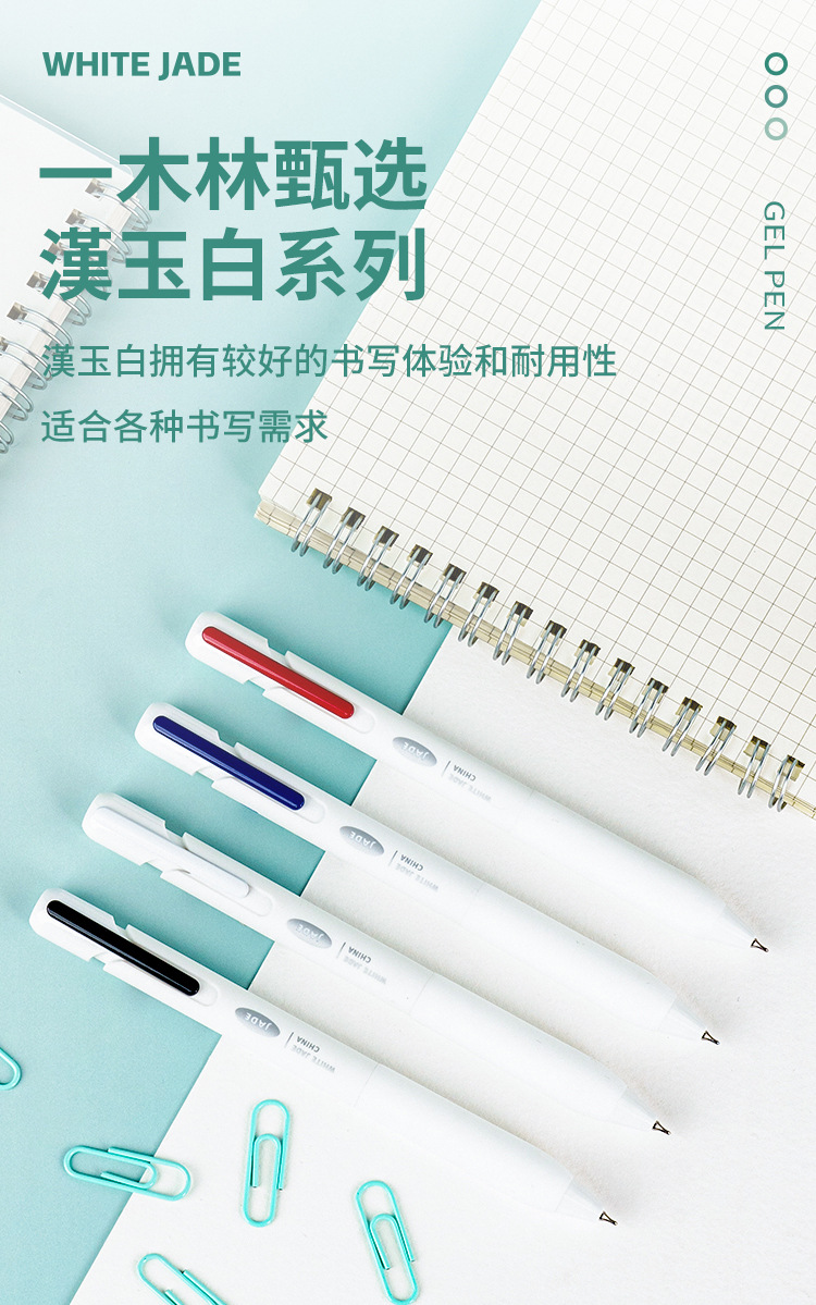 一木林汉玉白按动中性笔高颜值刷题笔速干CS笔头学生黑色水笔