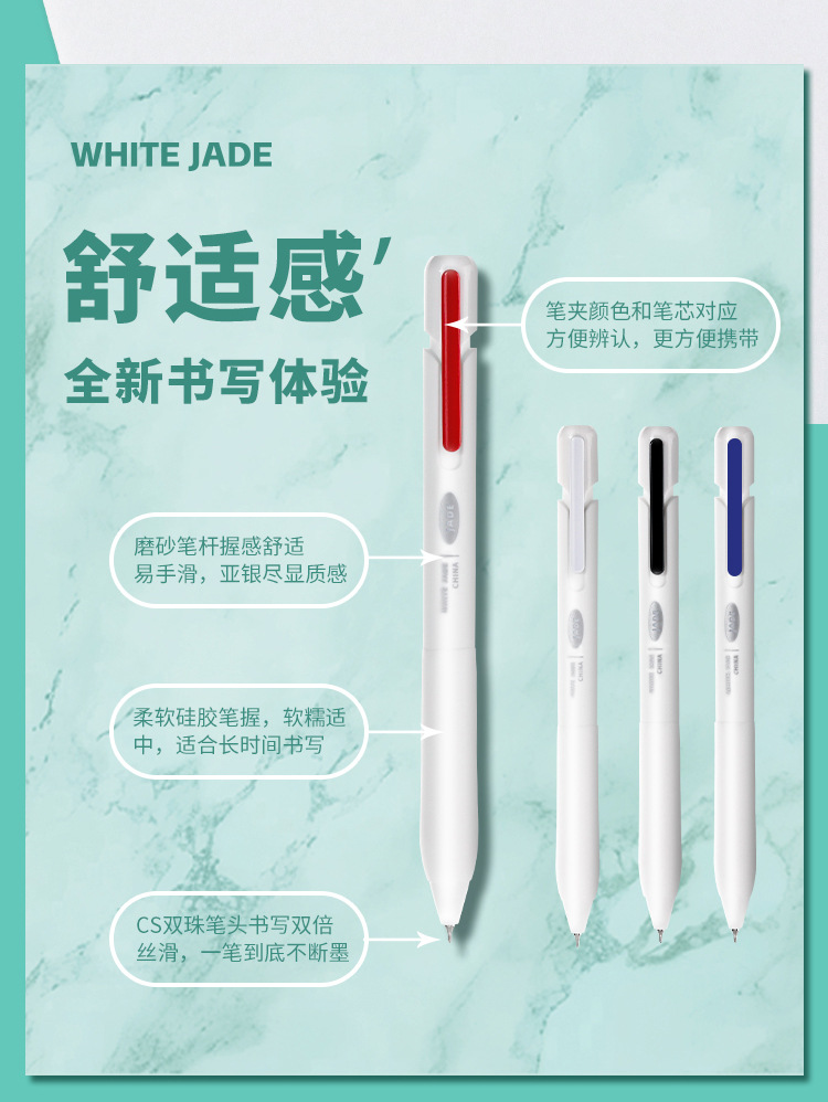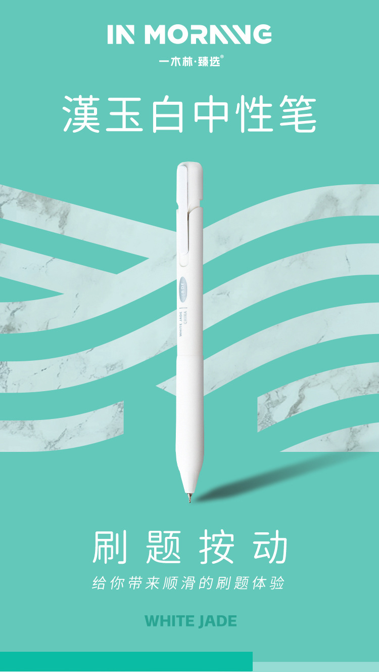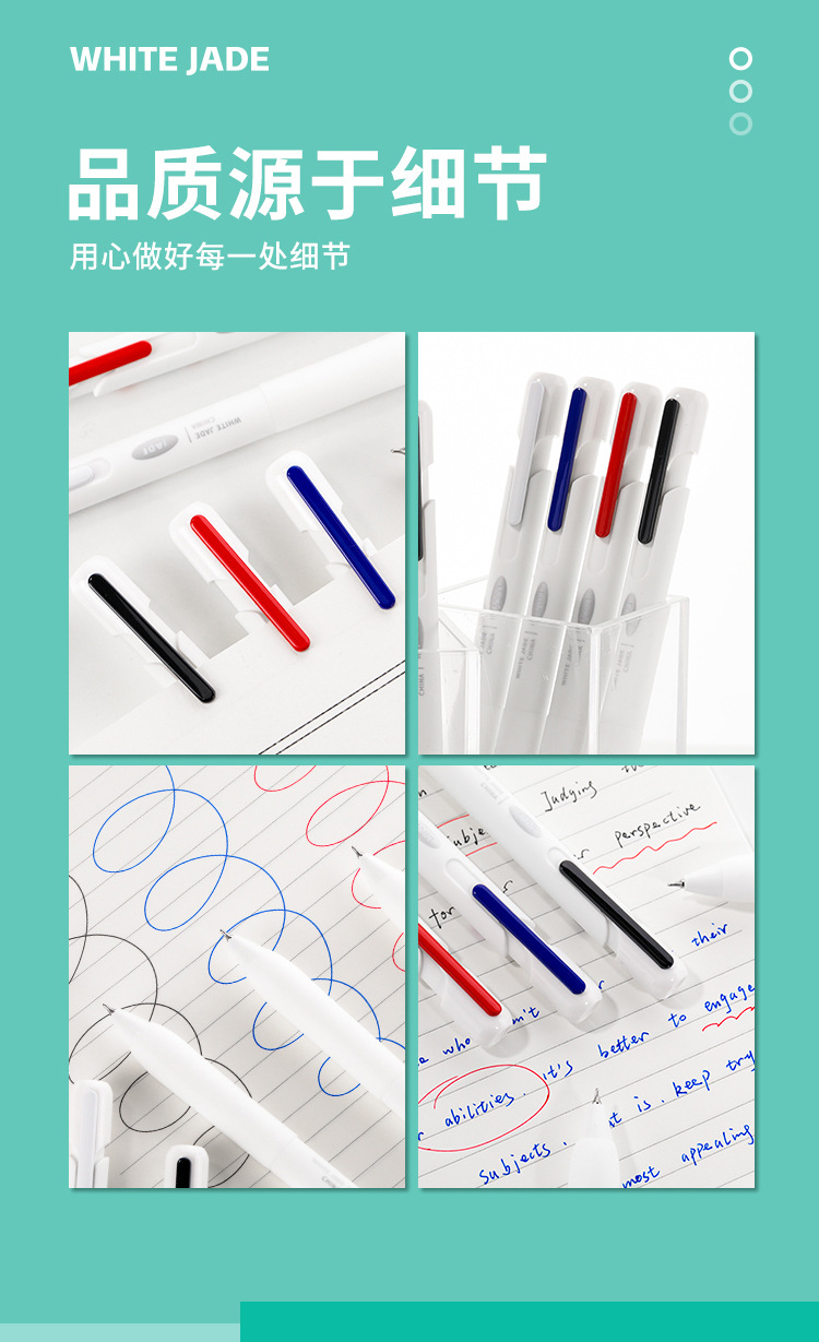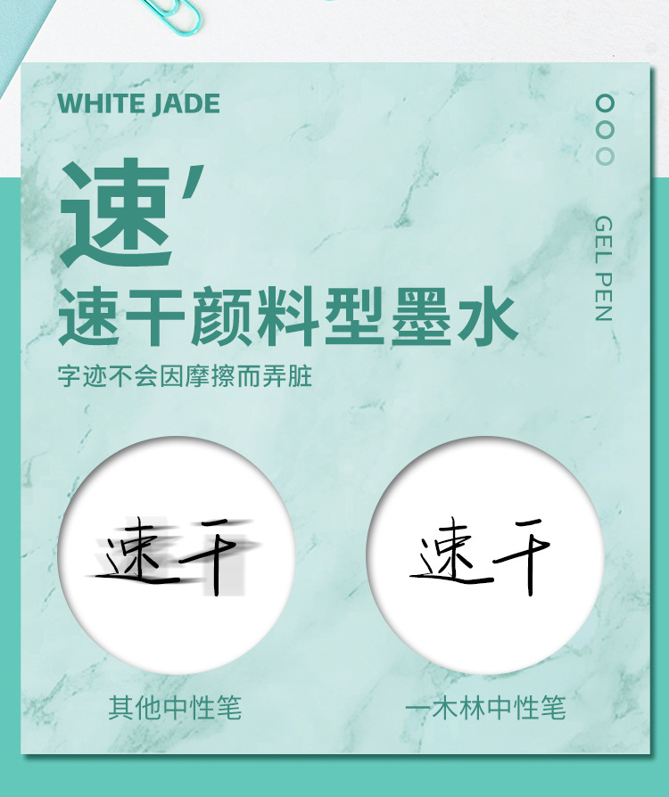 一木林汉玉白按动中性笔高颜值刷题笔速干CS笔头学生黑色水笔