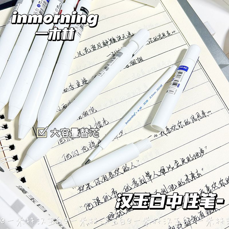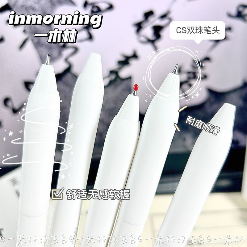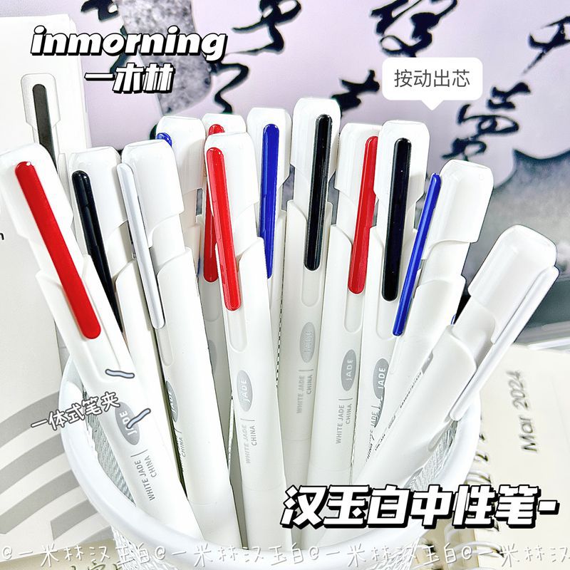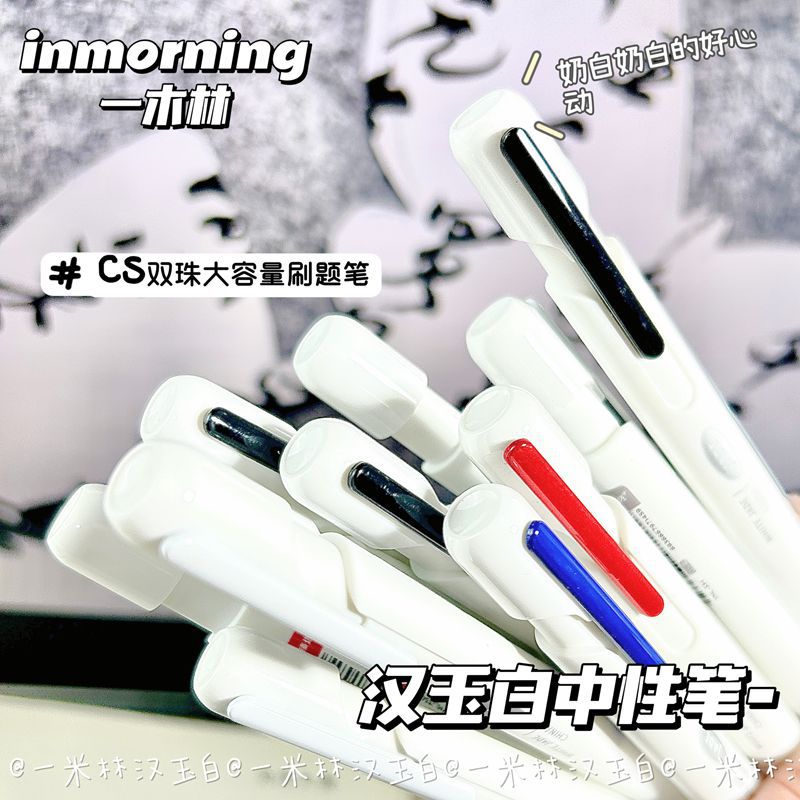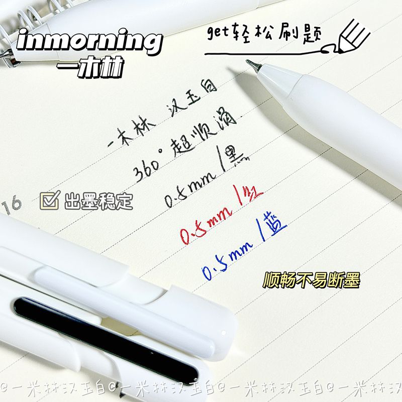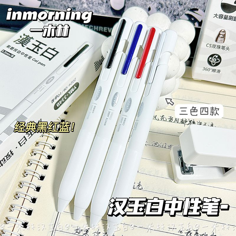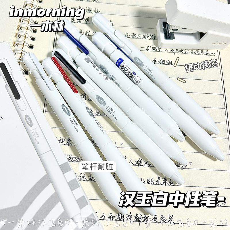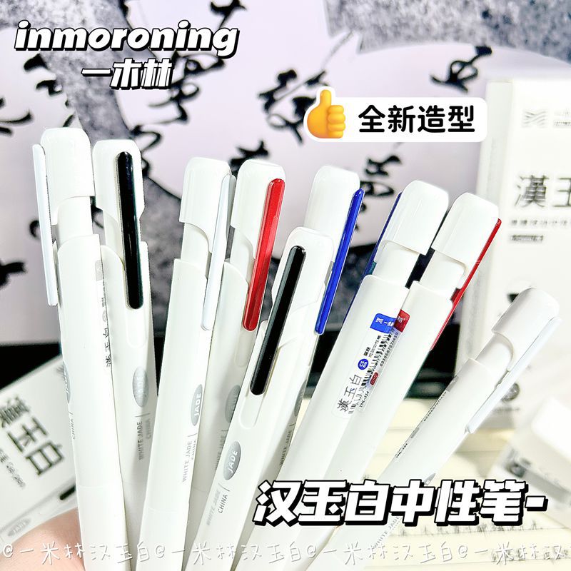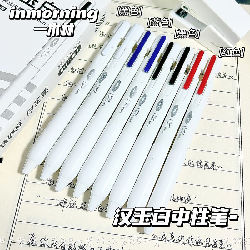 一木林汉玉白按动中性笔红笔高颜值速干0.5m学生简约考试CS黑色笔